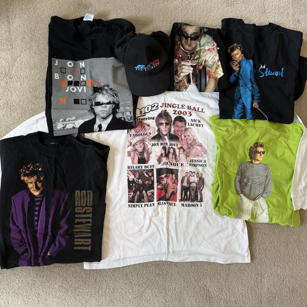 LOT 175A: 2000s Concert / Tour Shirts w/ Hat: Rod Stewart & Bon Jovi