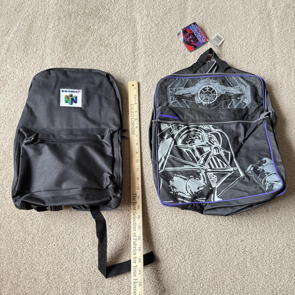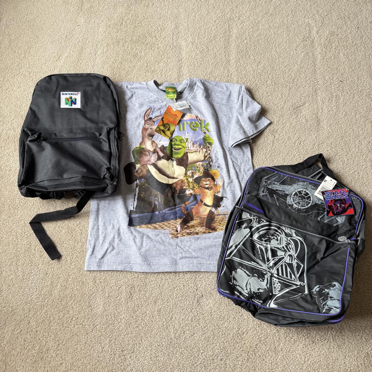 LOT 190B: New Nintendo 64 Backpack, NWT Star Wars Darth Vader Backpack & NWT Shrek 2 T-Shirt (Youth Large)