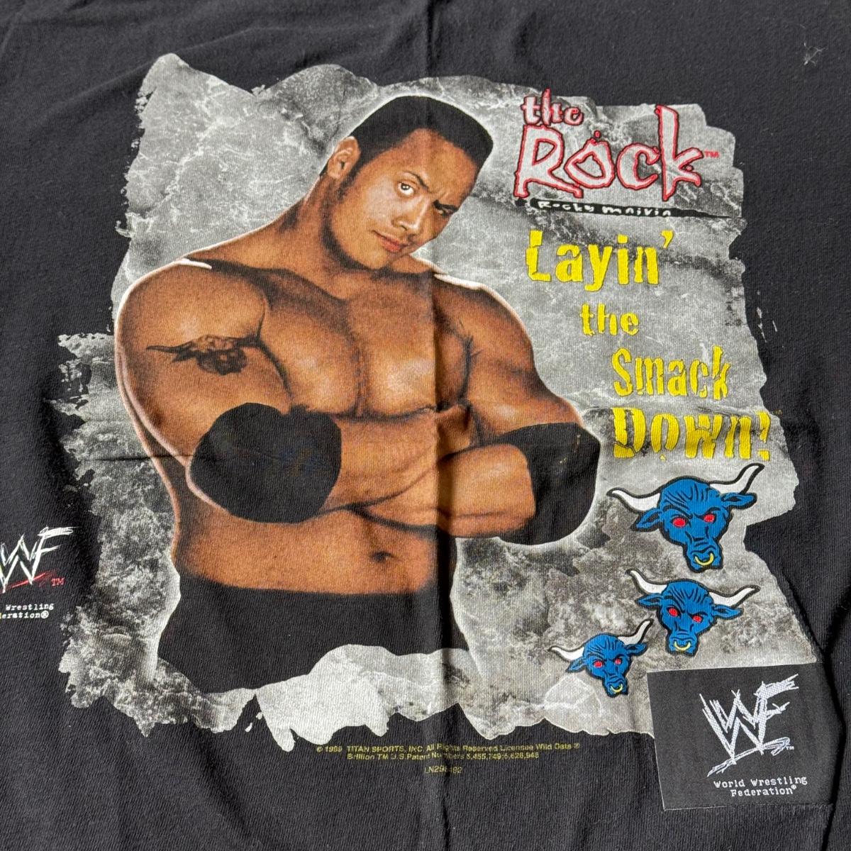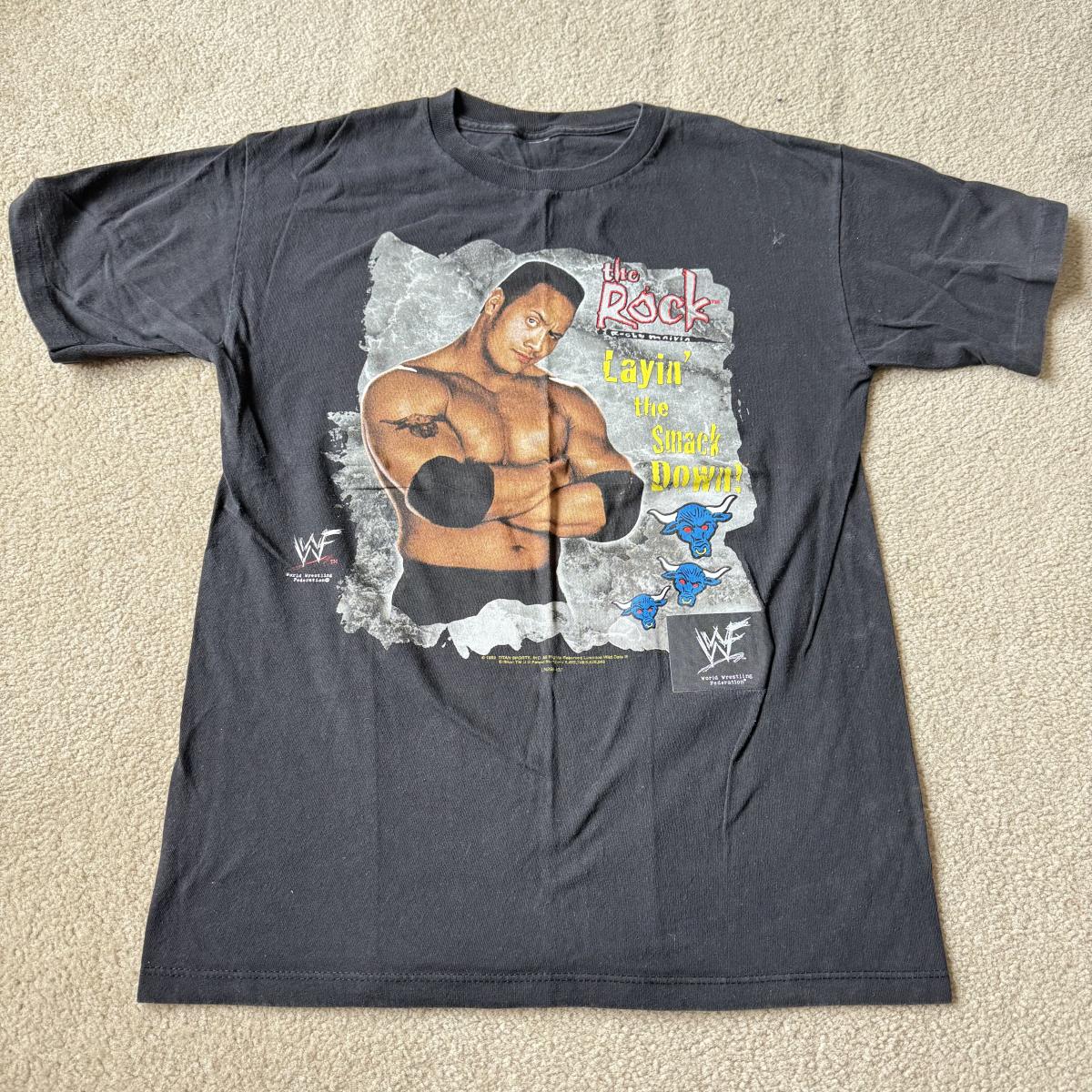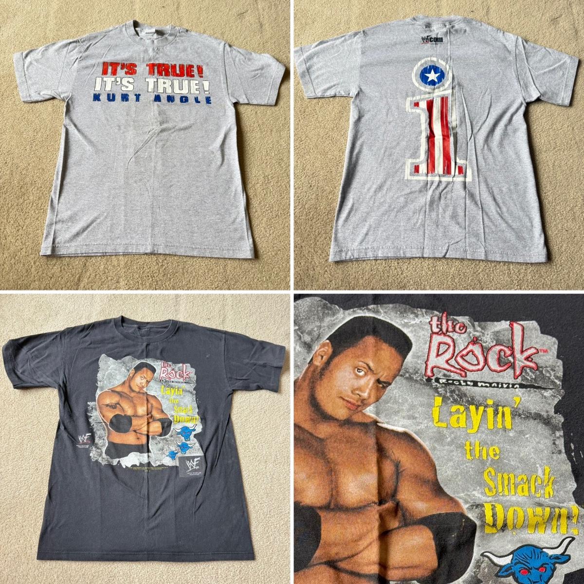 LOT 193B: 1999 WWF The Rock T-Shirt & 2000 WWF Kurt Angle T-Shirt (Medium)