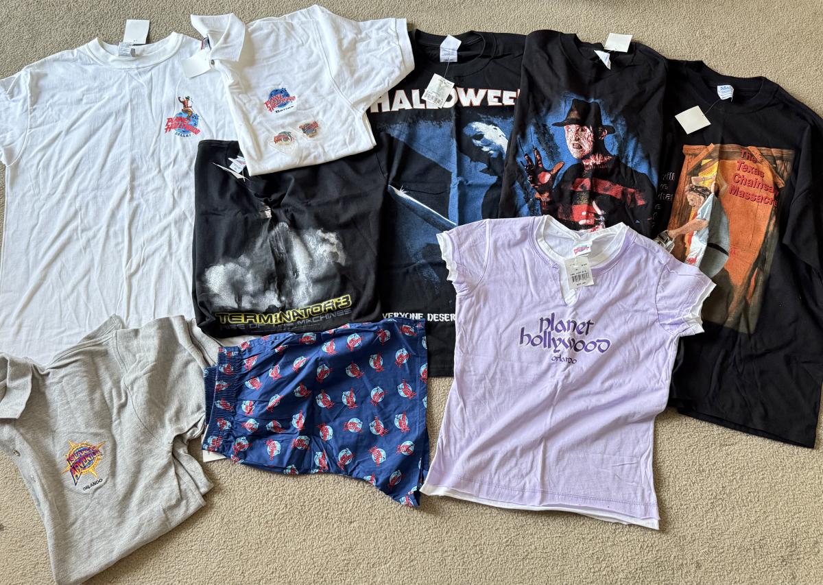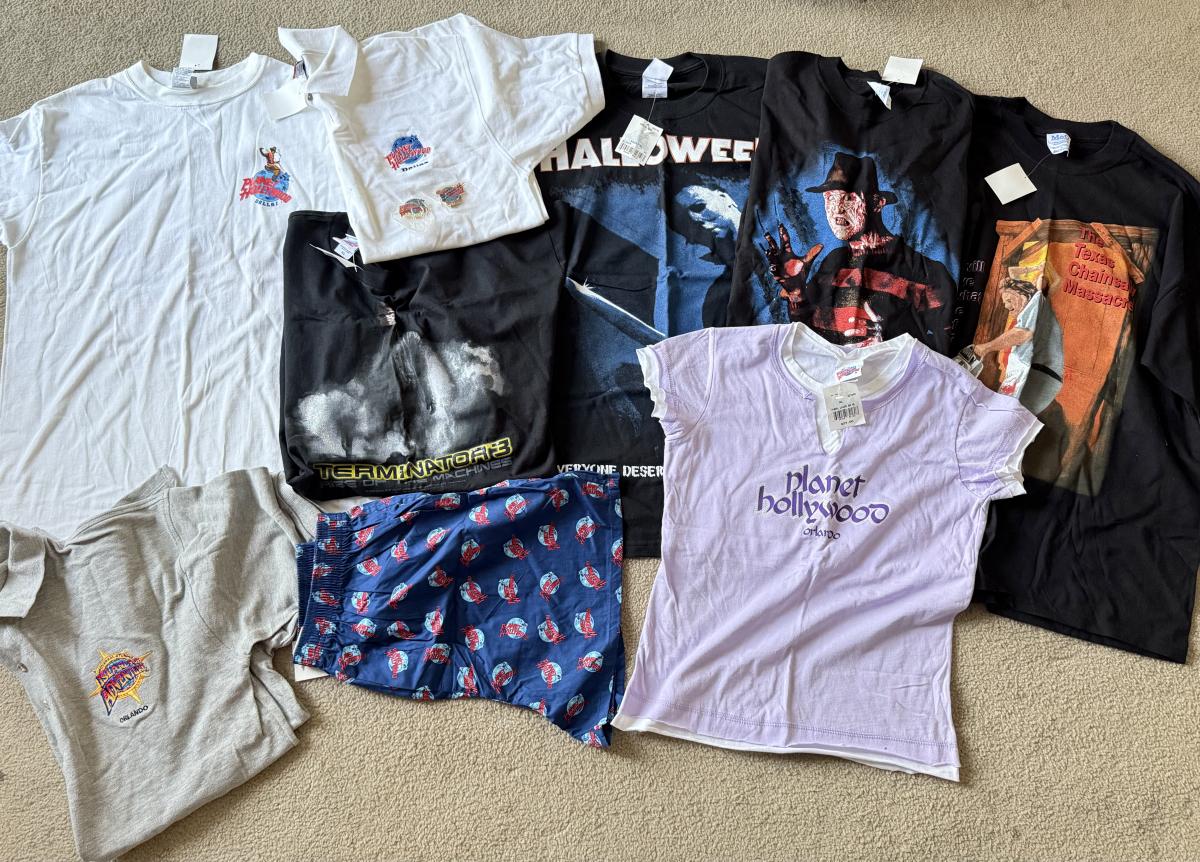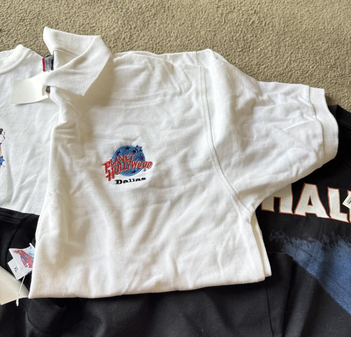 LOT 210A: 2000s Planet Hollywood Horror Series NWT T-Shirts (XL), Embroidered Universal Studios Islands of Adventure Orlando Polo NWT (L) & Planet Hollywood Merchandise