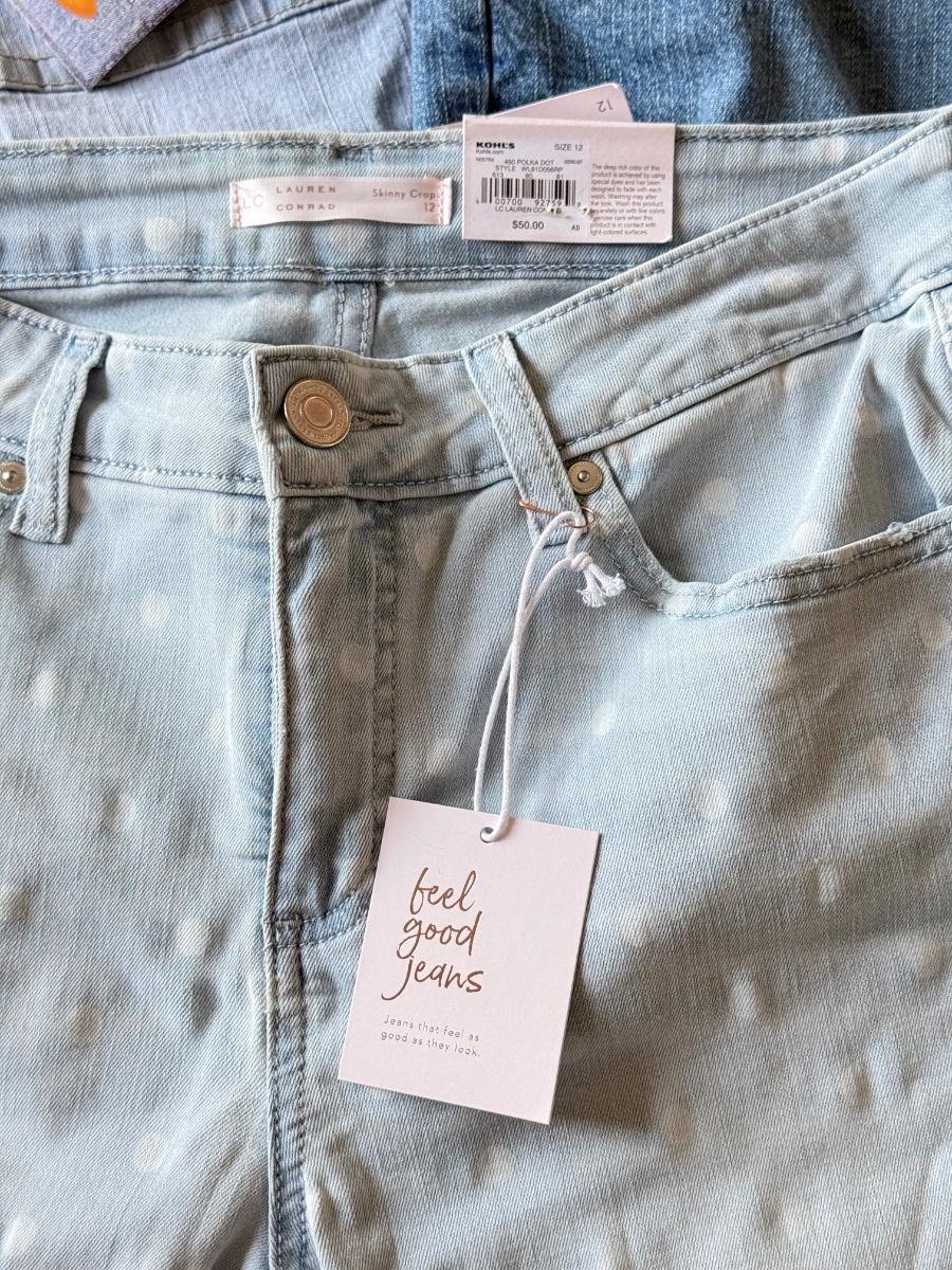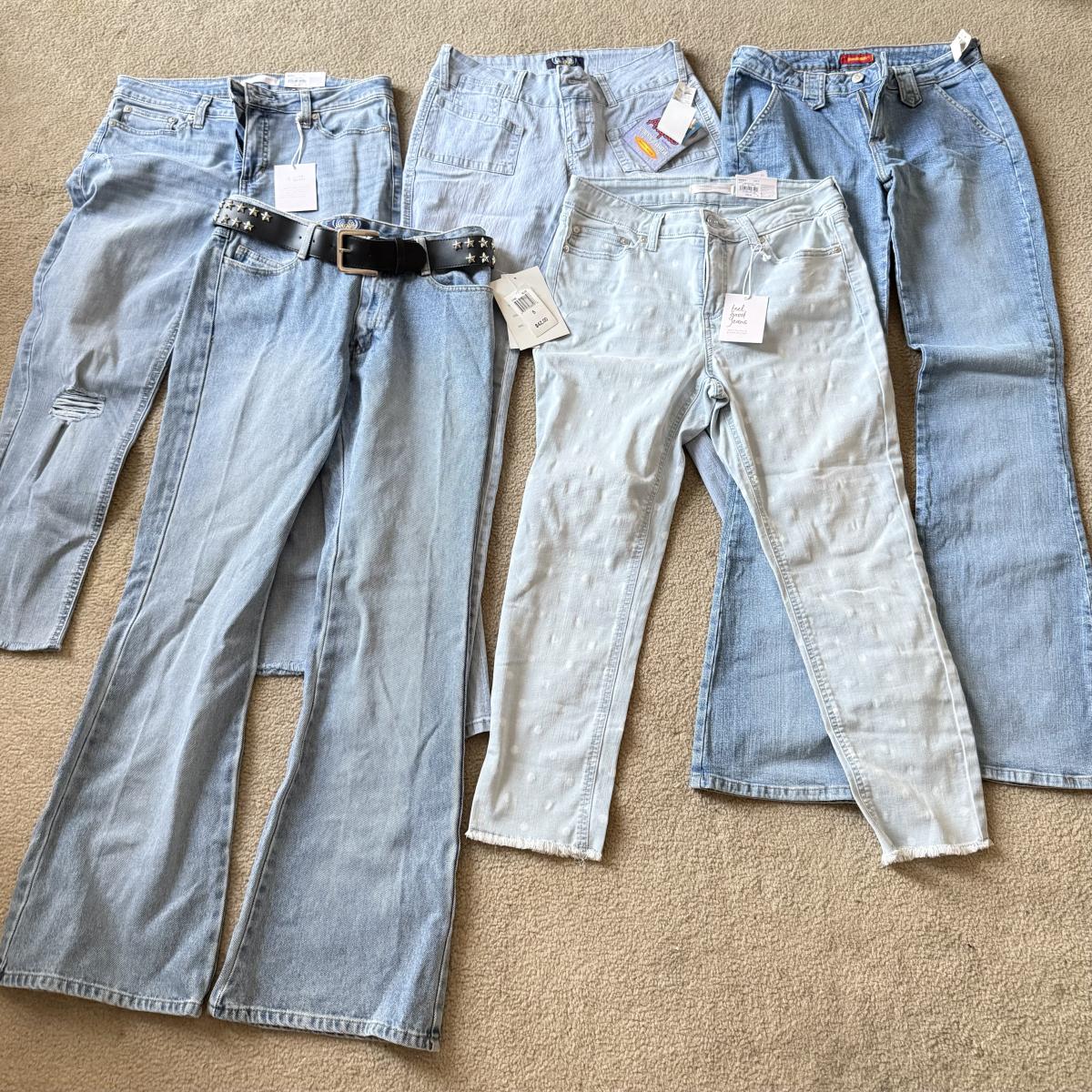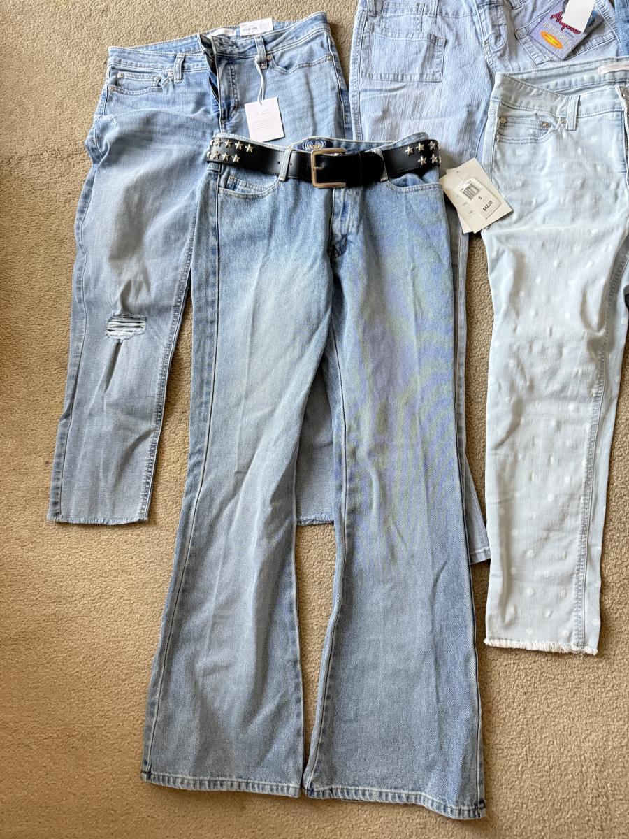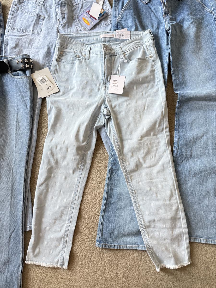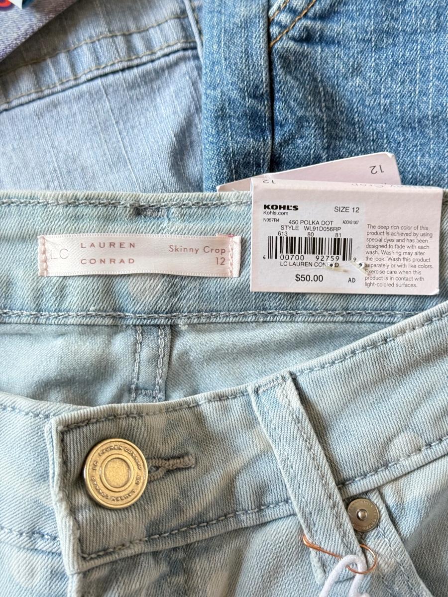 LOT 212A: NWT Light Wash Jeans: Lauren Conrad Skinny Crop (12), Angels Skinny Hipsters w/ Star Stud Belt (5), Blue Asphalt Flare (7) & More