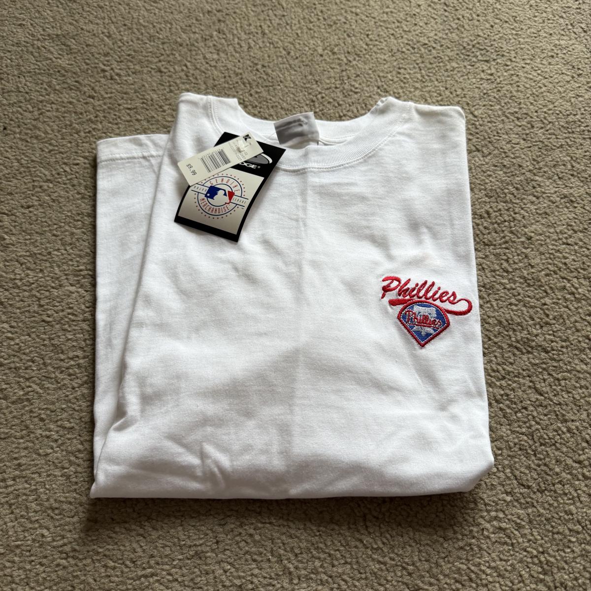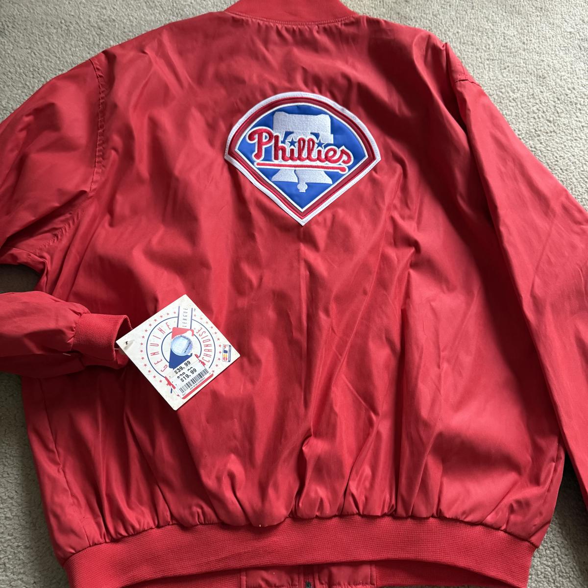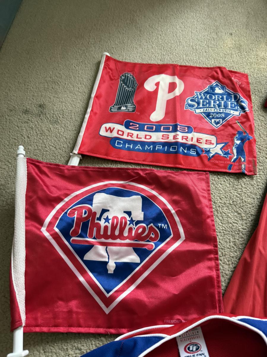 LOT 224L: MLB Philadelphia Phillies Fandom Collection: NWT Windbreaker (XL), #25 Jim Thome True Fan Jersey (L), T-Shirts, Hat & Car Flags