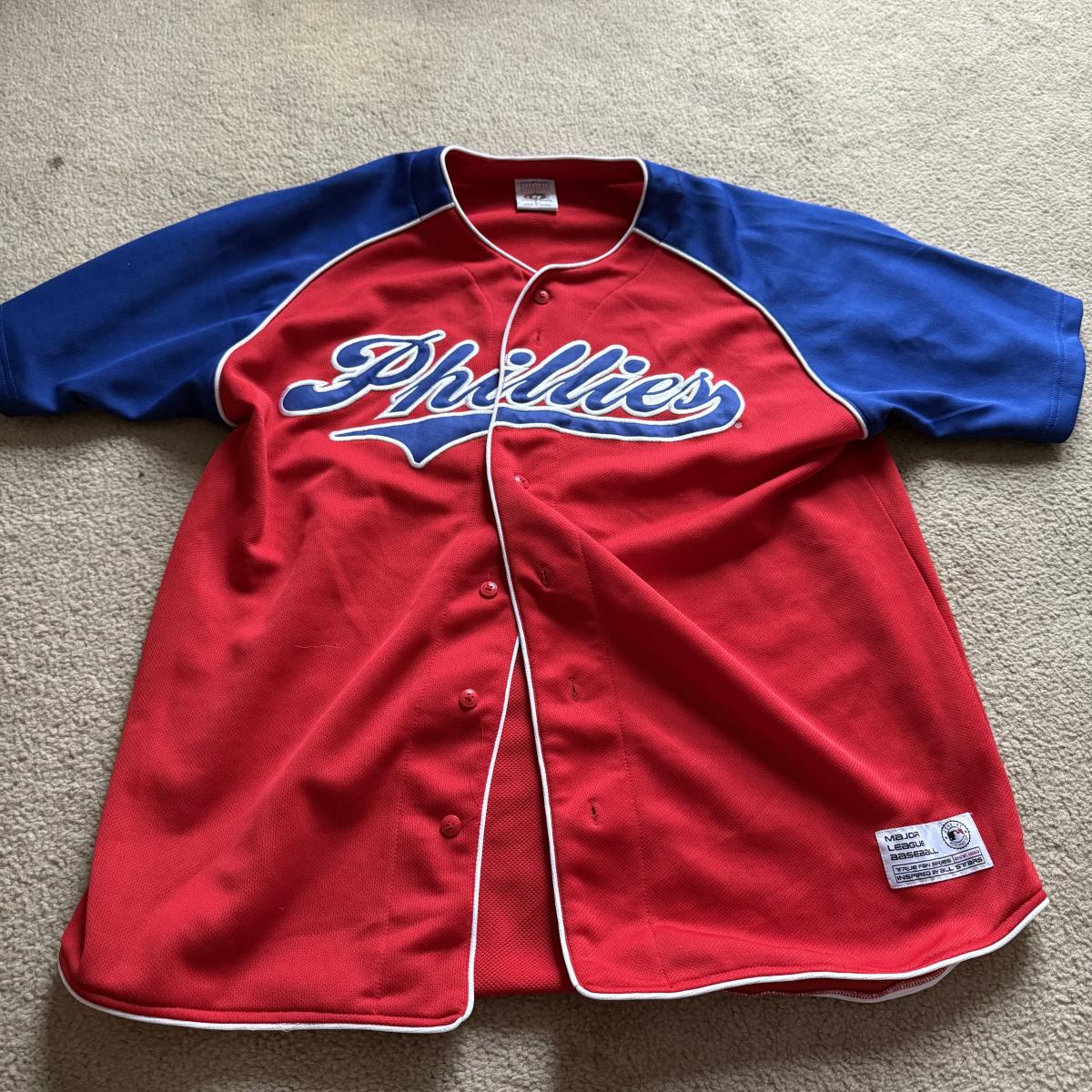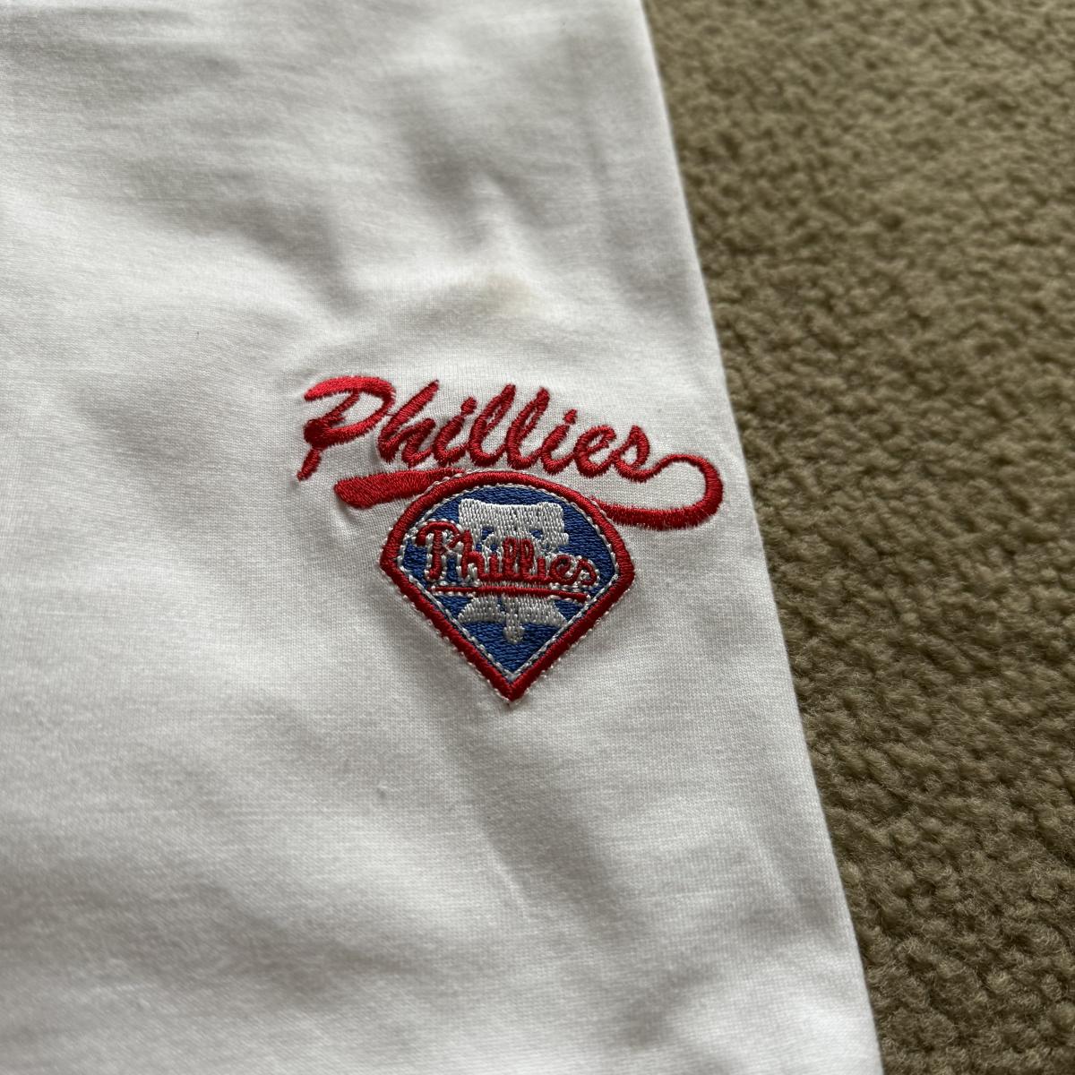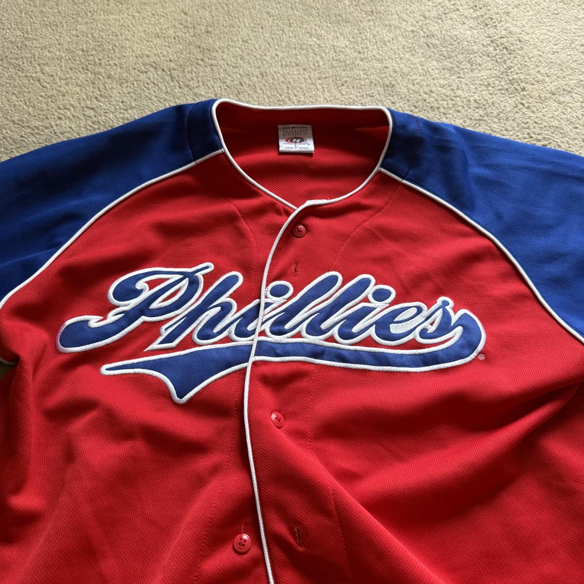 LOT 224L: MLB Philadelphia Phillies Fandom Collection: NWT Windbreaker (XL), #25 Jim Thome True Fan Jersey (L), T-Shirts, Hat & Car Flags