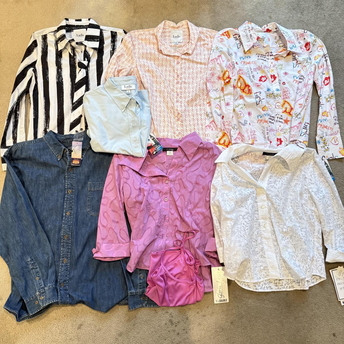 LOT 235L: NWT Ladies' Luella Collared Shirts, G. Lance Petite Sheer Shirts & Men's Route 66 Denim Button Up (Large)