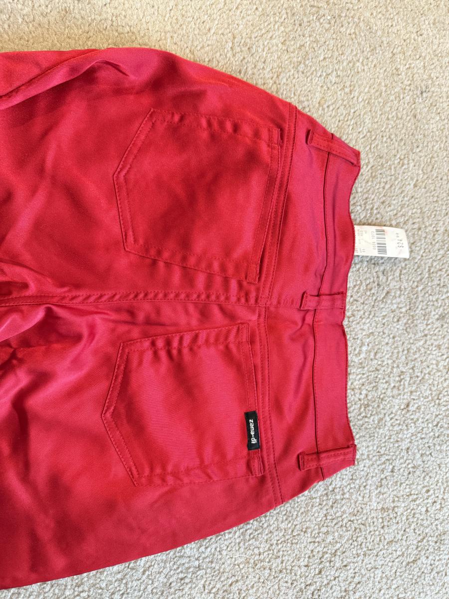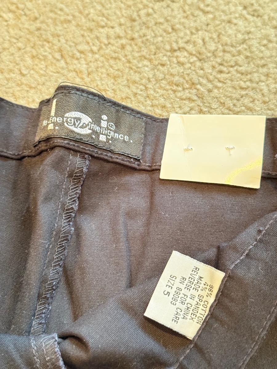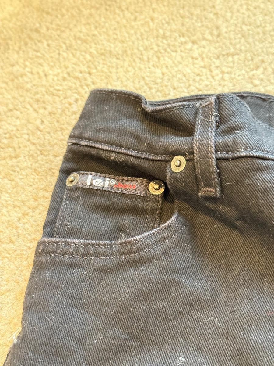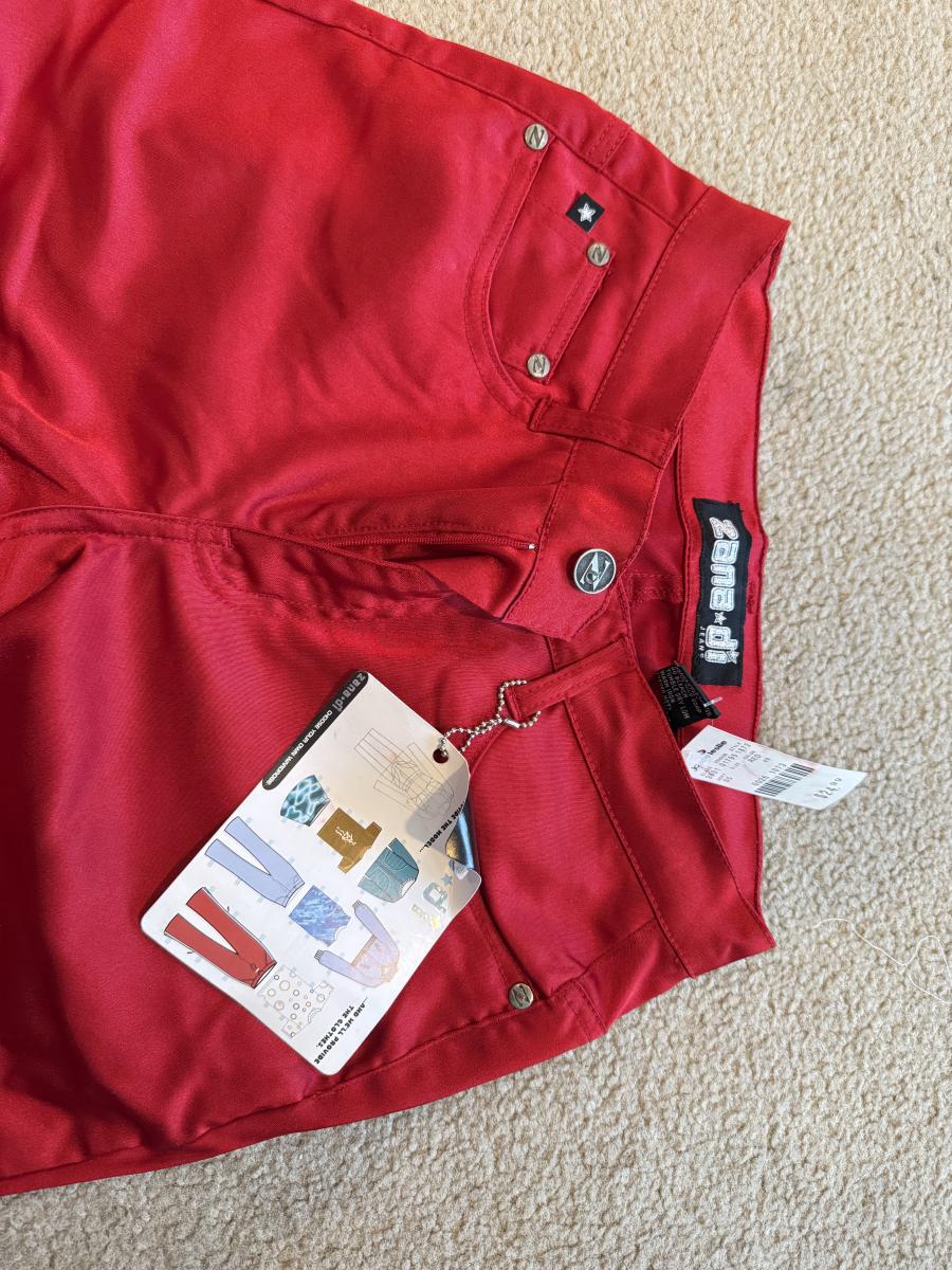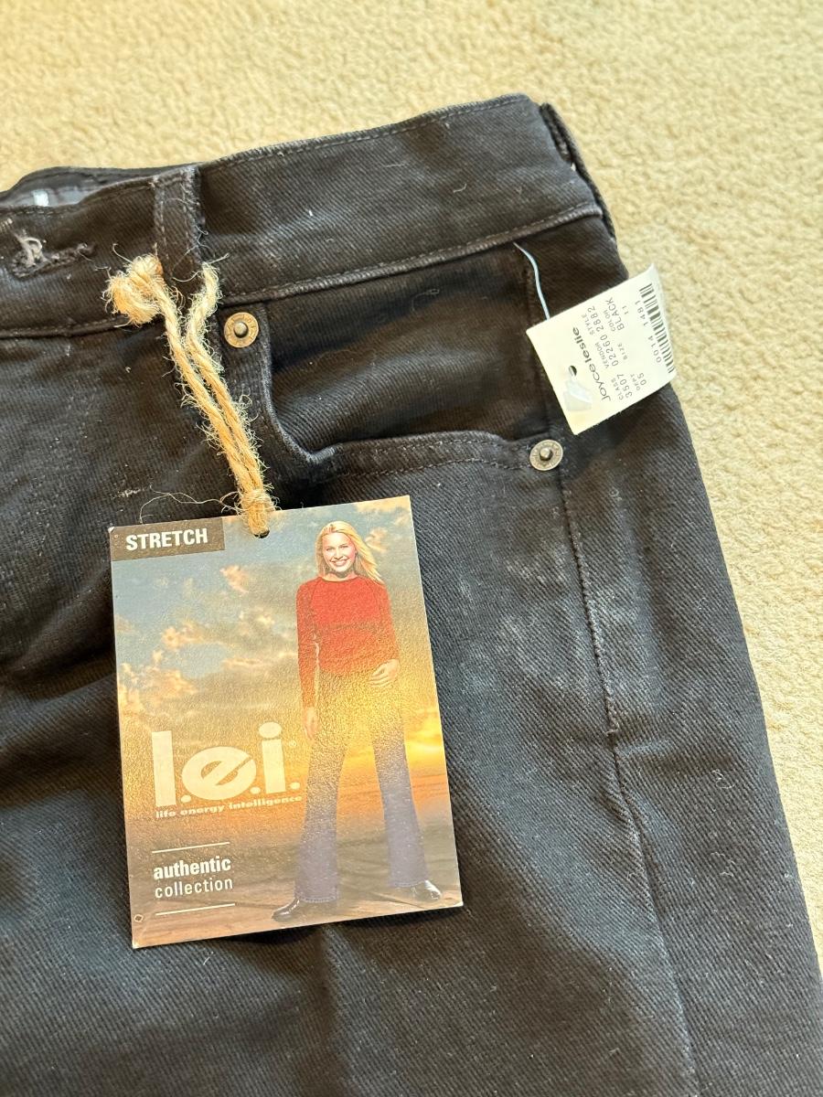 LOT 247B: NWT: Juniors Size L Denim Halter Jumpsuit, Authentic Collection Stretch Lei Jeans, Rave Flare Pants, Brown XOXO Pants, Red Zana-di Jeans