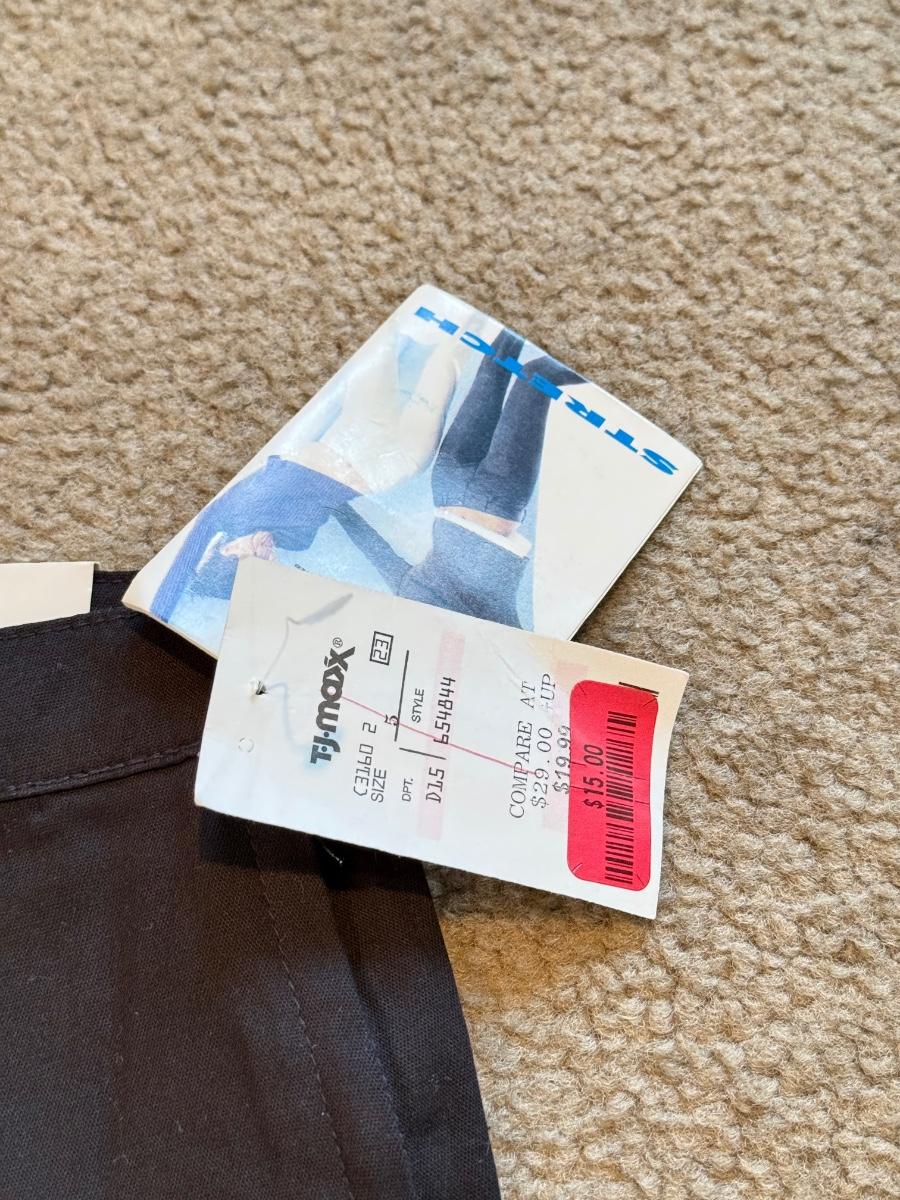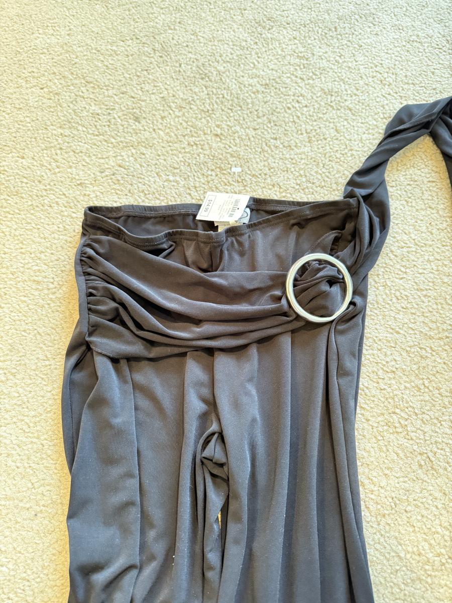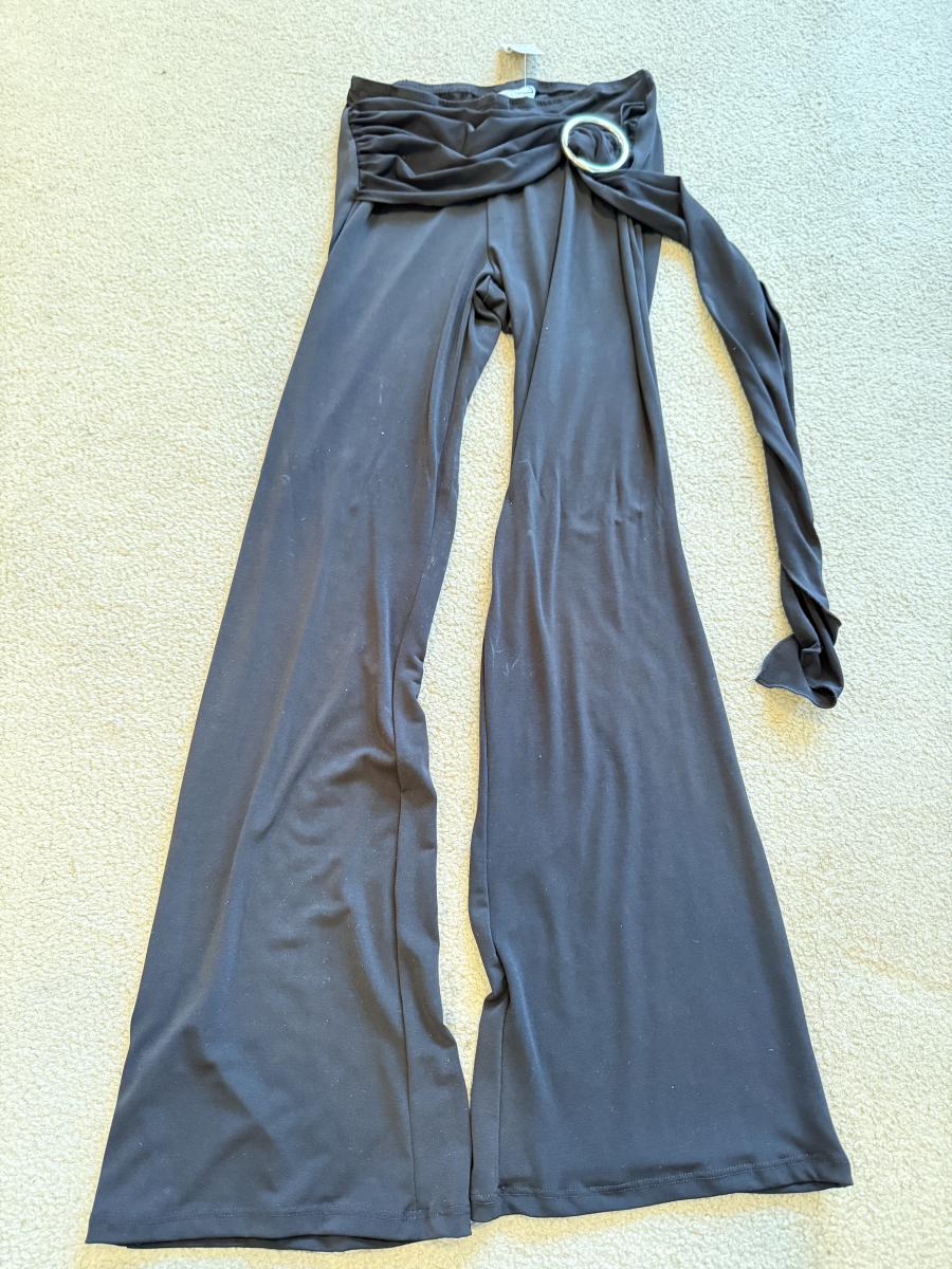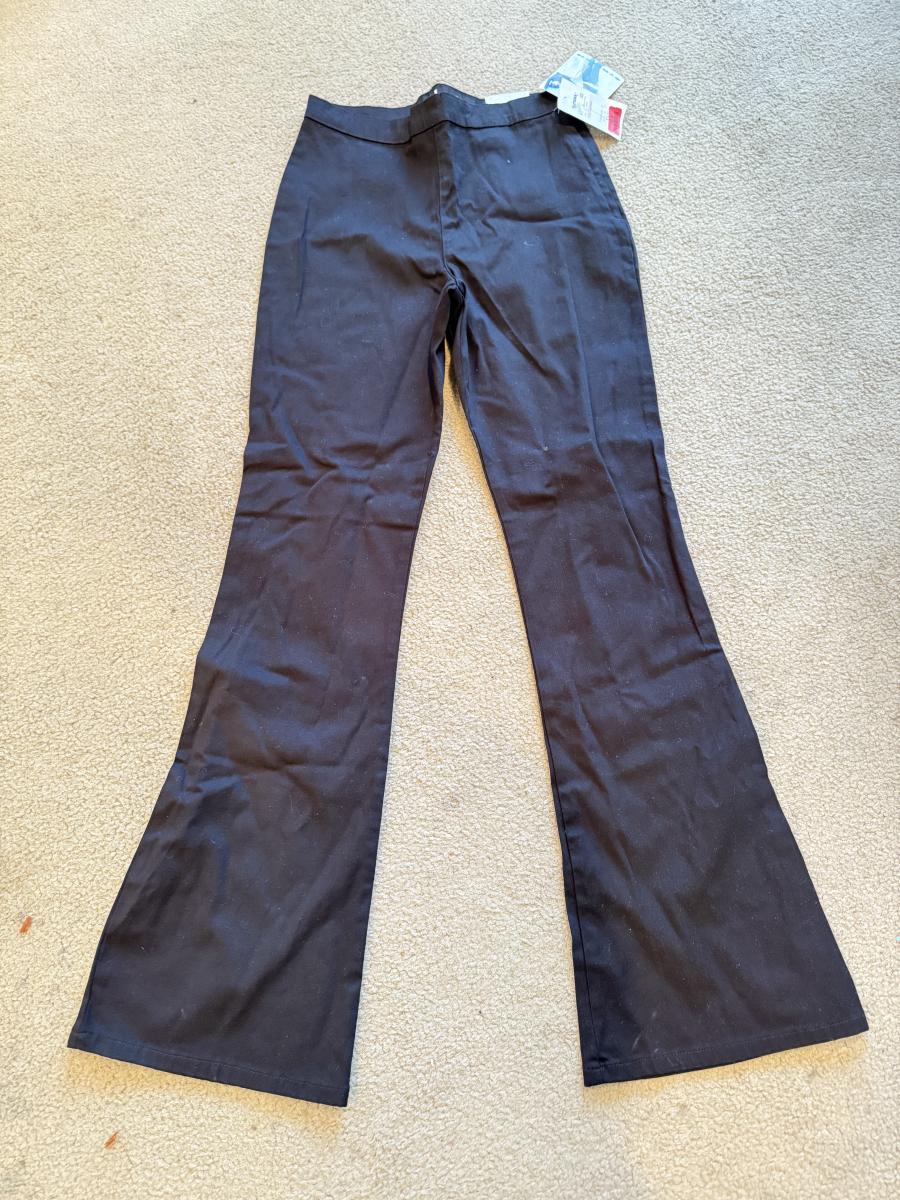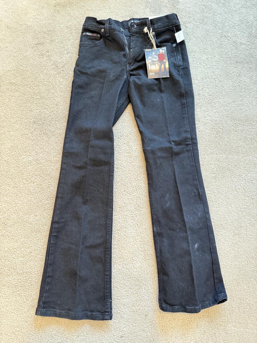 LOT 247B: NWT: Juniors Size L Denim Halter Jumpsuit, Authentic Collection Stretch Lei Jeans, Rave Flare Pants, Brown XOXO Pants, Red Zana-di Jeans