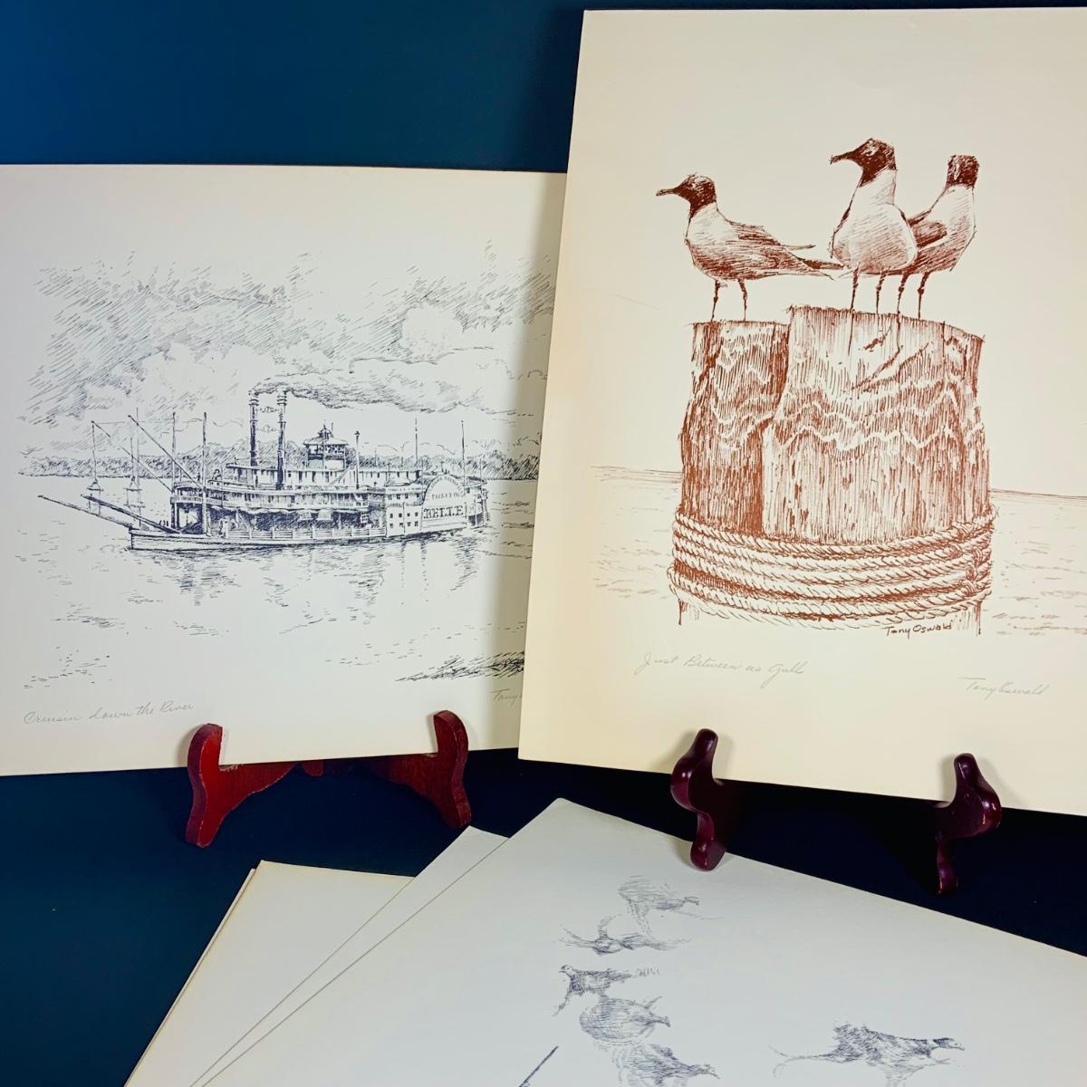 LOT 230: Collection of 12 Tony Oswald Scenic Riverboat and Sportsman Themed Prints