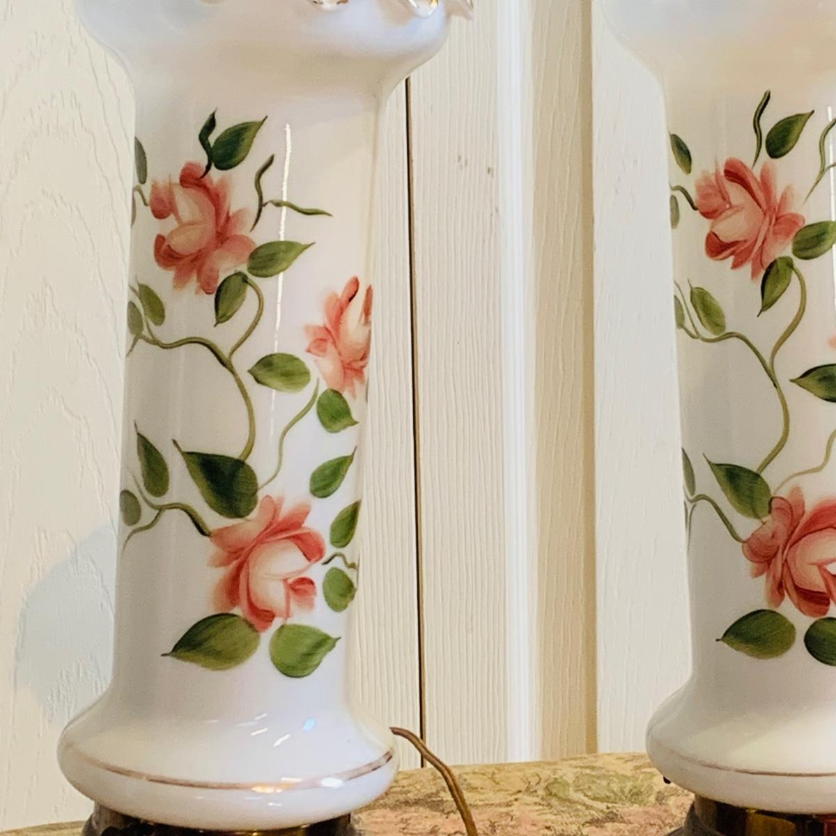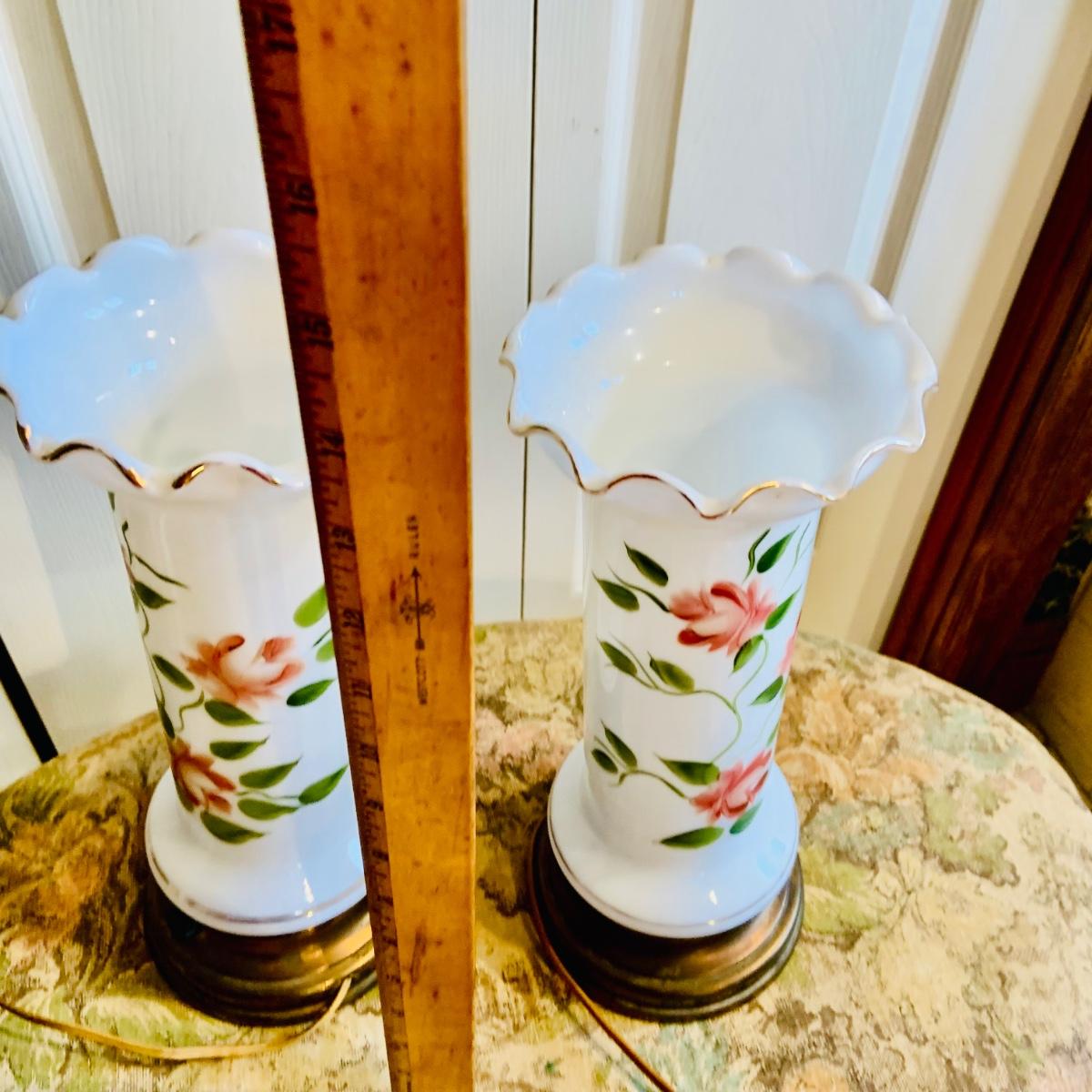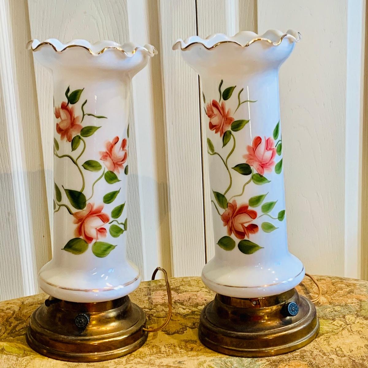 LOT 239: Set of Two (2) Vintage Victorian Bristol Style Painted Glass Lamps