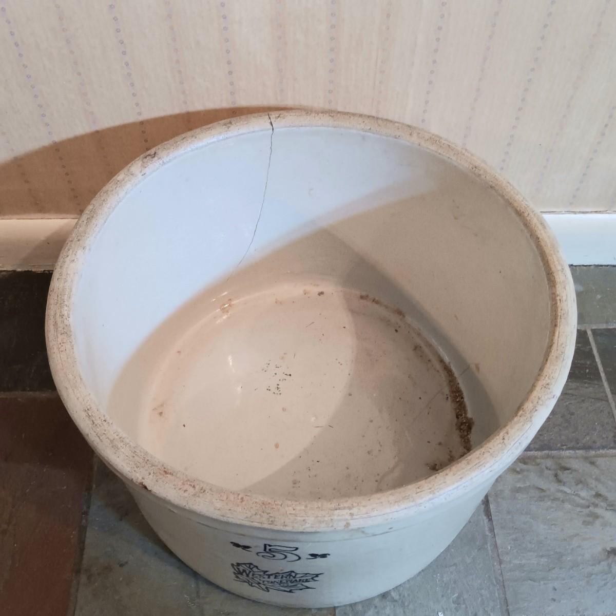 There is a large crack in the crock, please view all photos.
