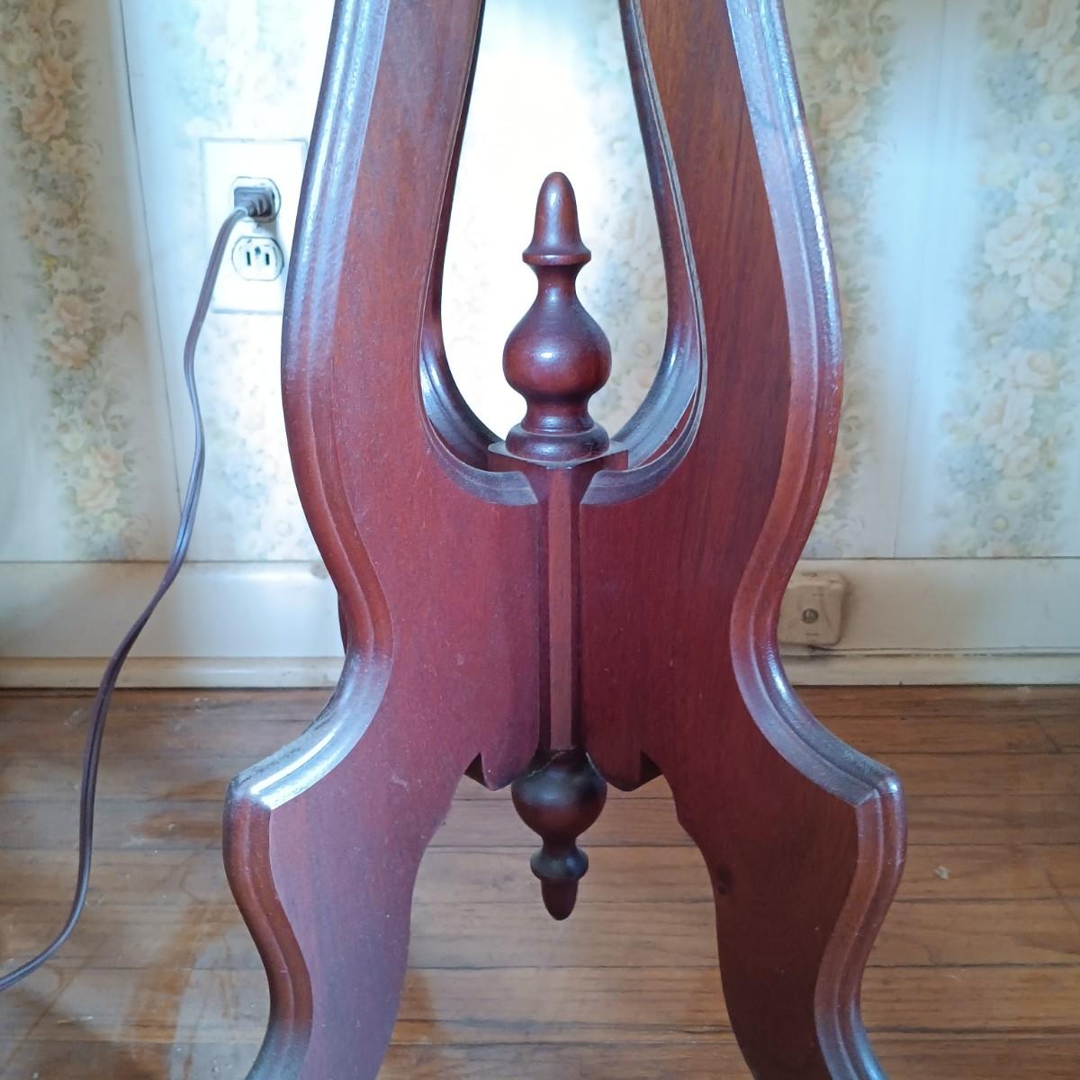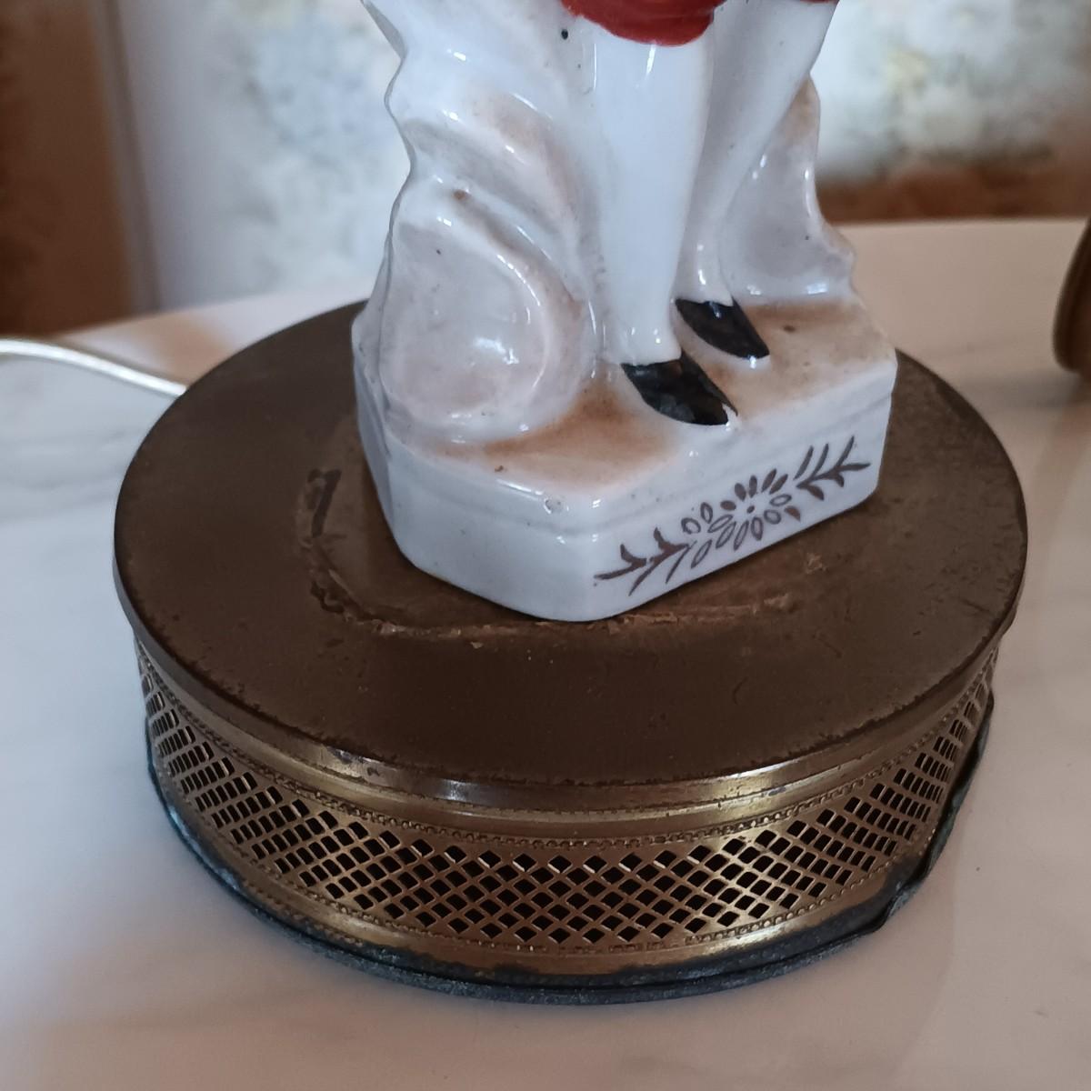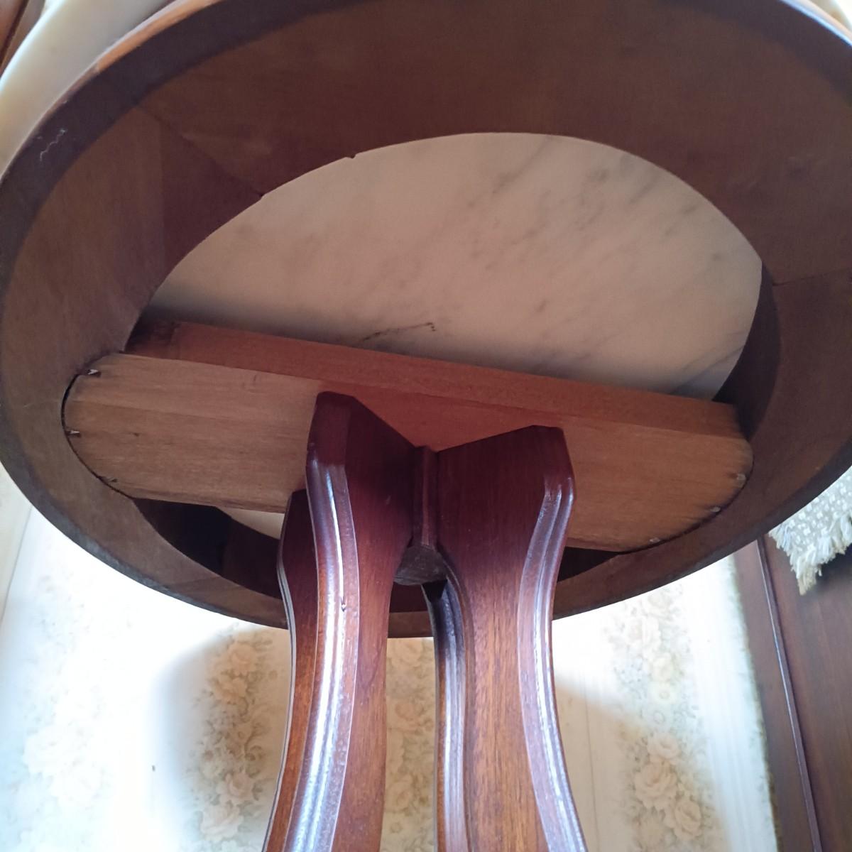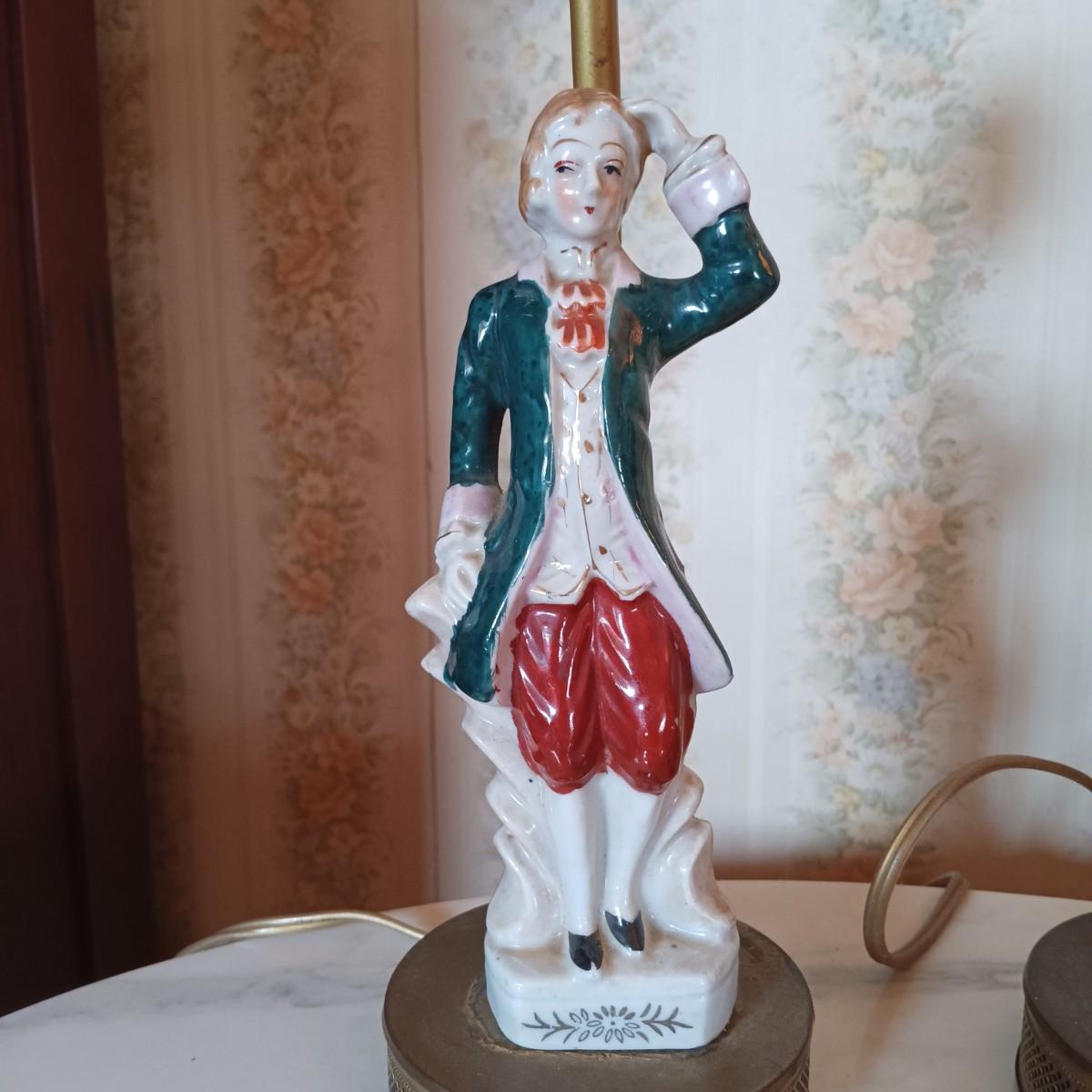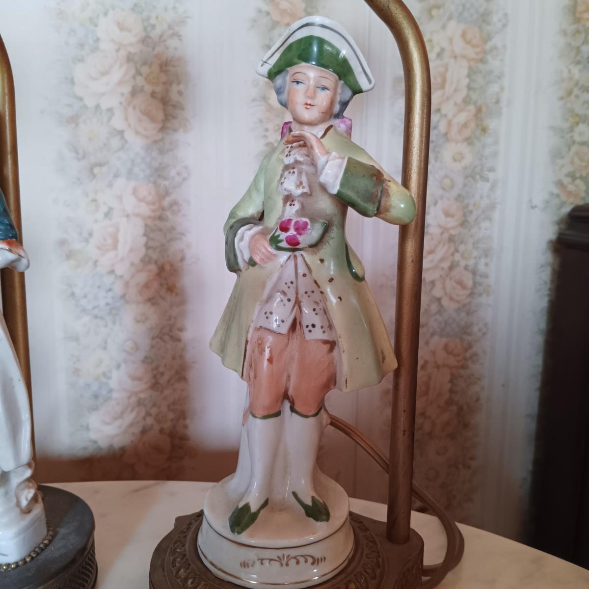 LOT 264: Victorian Marble-Top Pedestal Table w/ Set of (3) Porcelain Figurine Lamps