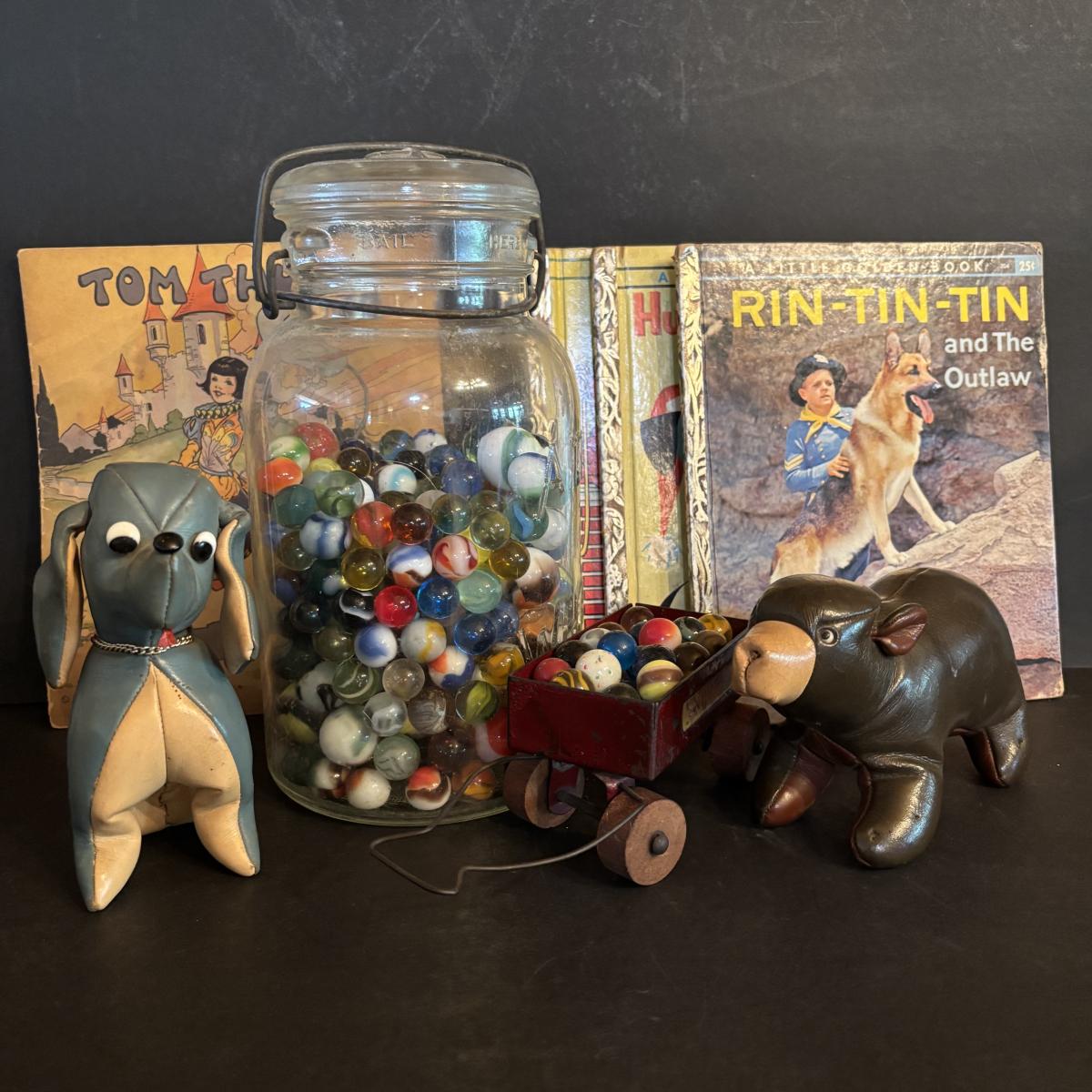 LOT 274: Marbles, Marbles & More Marbles, Vintage Little Golden Books, Vinyl/Pleather Blue Dog & Bear
