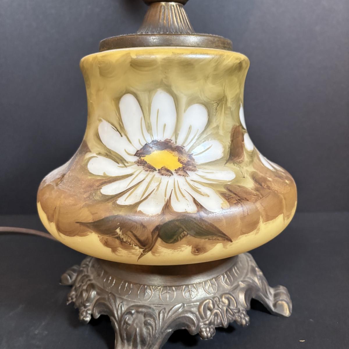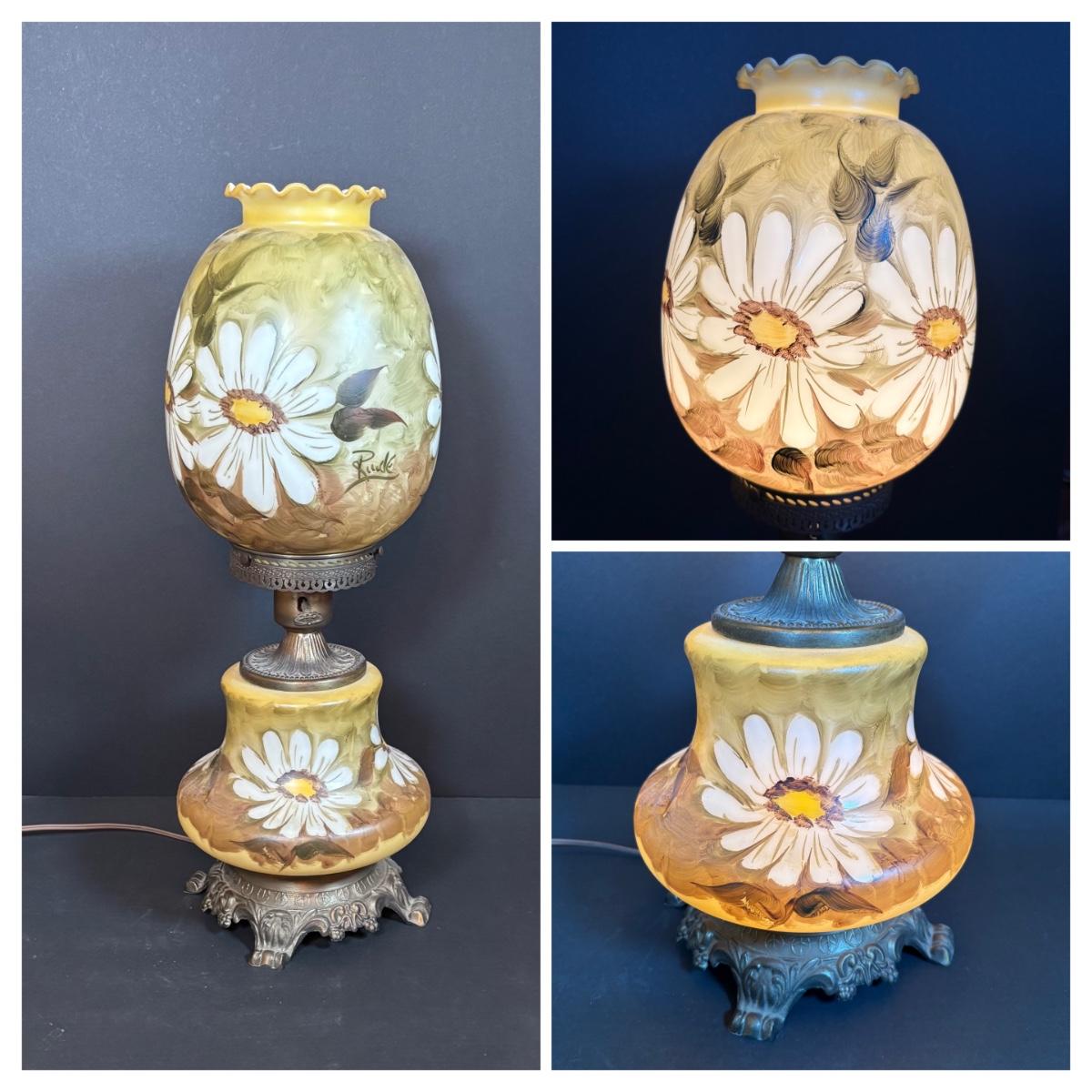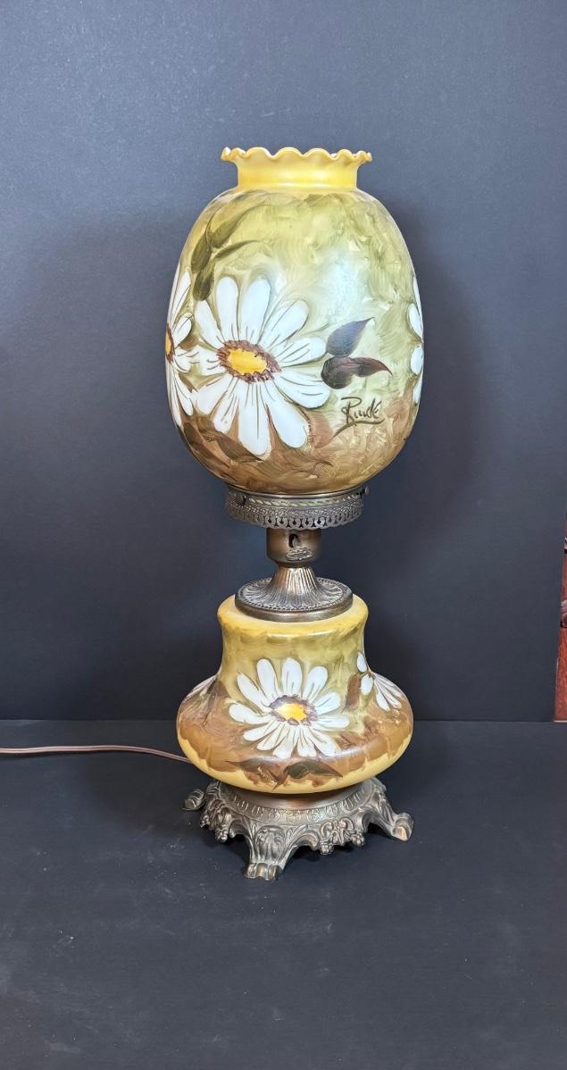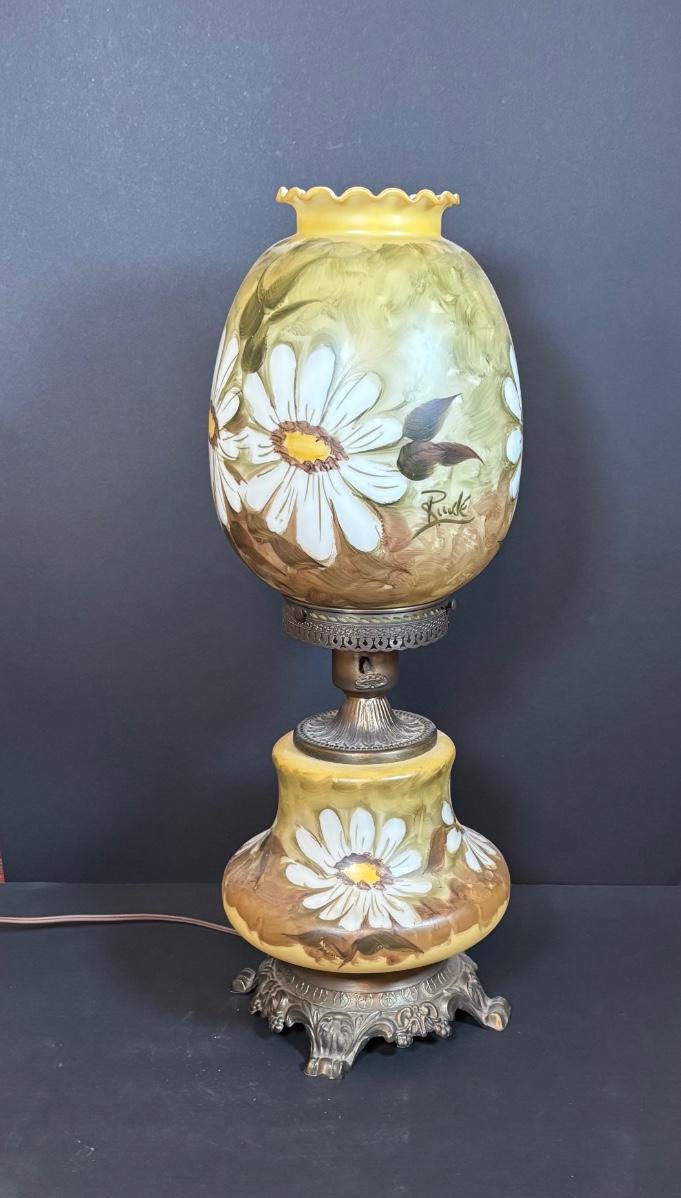 LOT 282: Vintage Hand Painted and Signed Hurricane Lamp