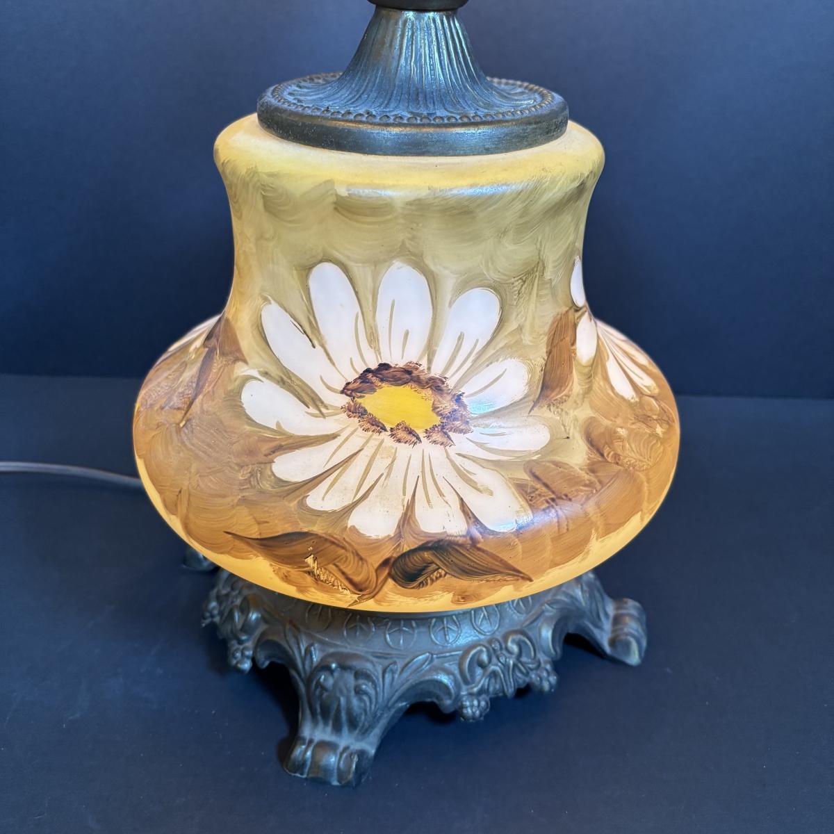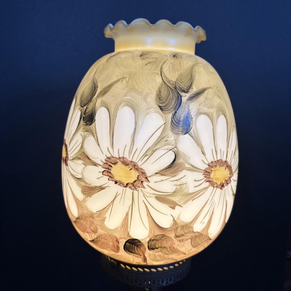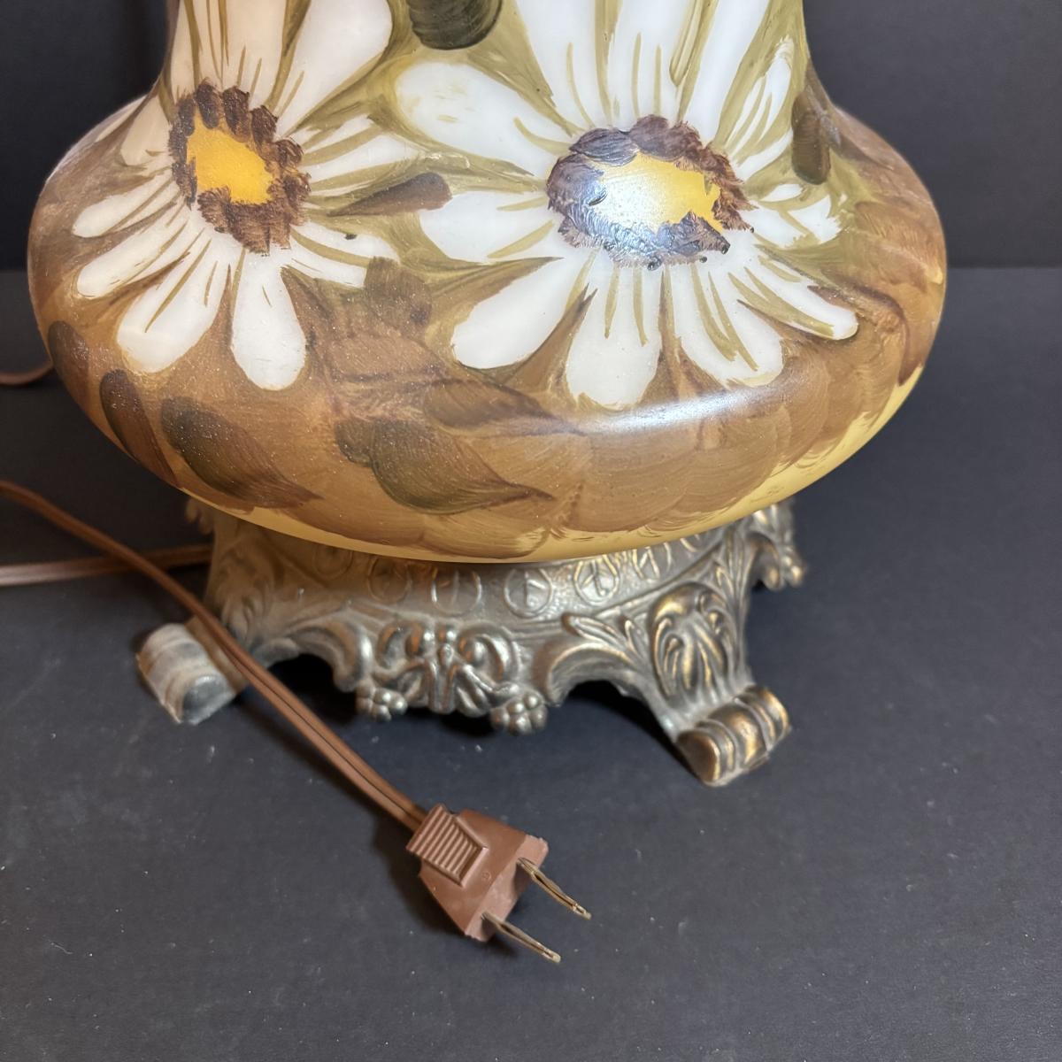 LOT 282: Vintage Hand Painted and Signed Hurricane Lamp