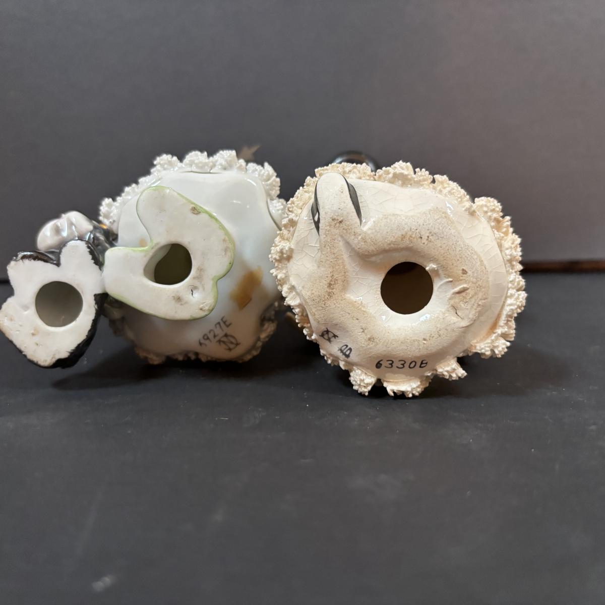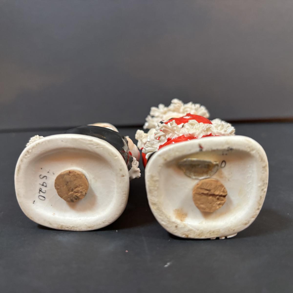 Mrs. Santa along with an angel have missing pieces of their spaghetti ruffle as shown.