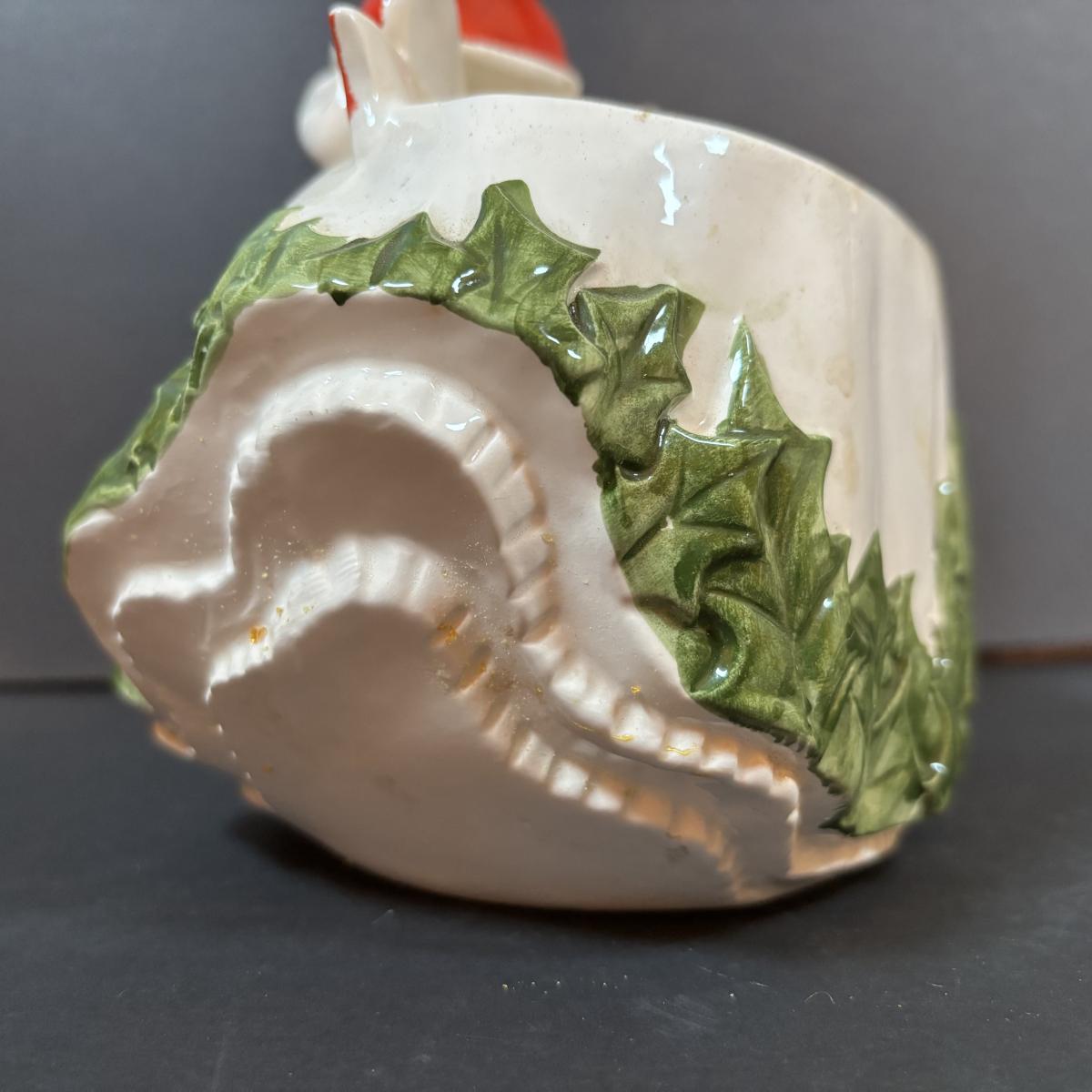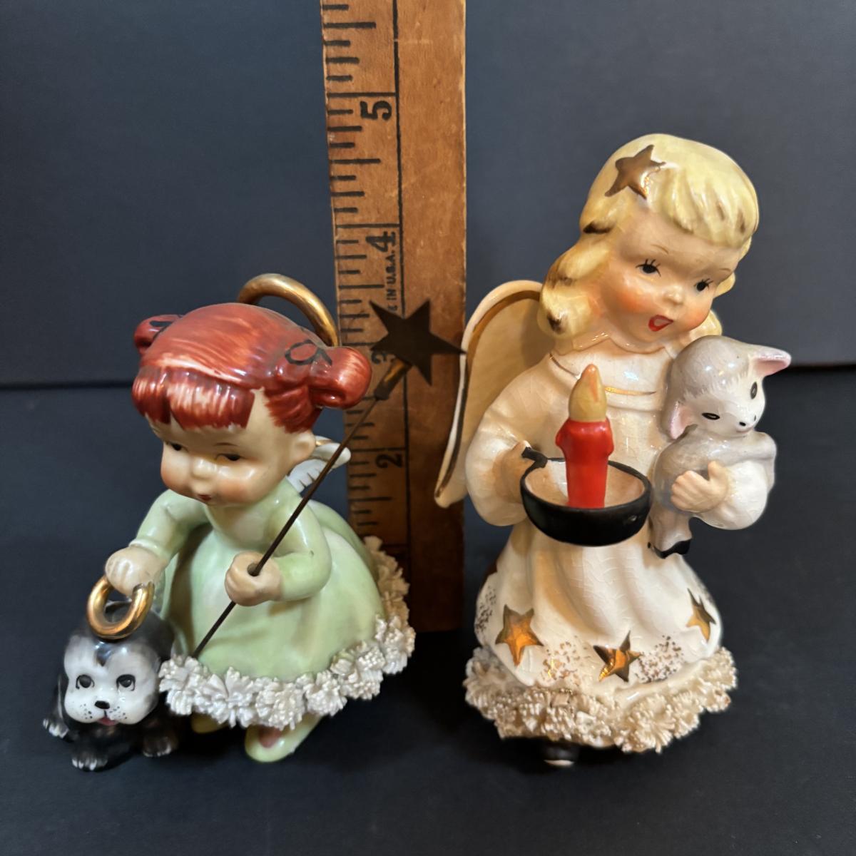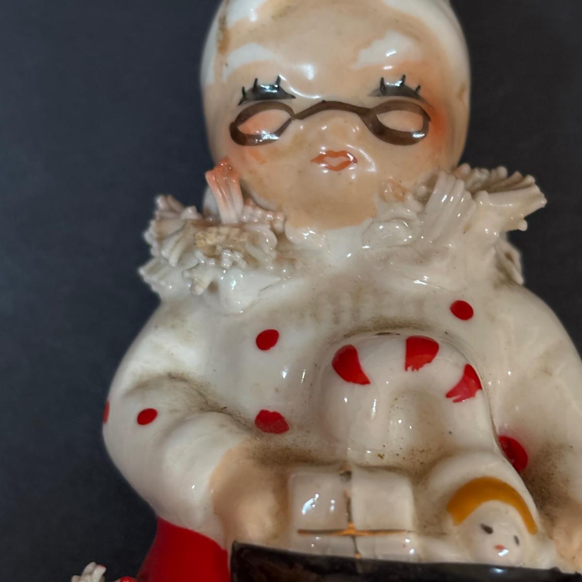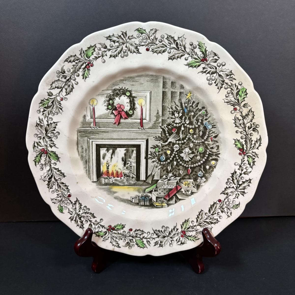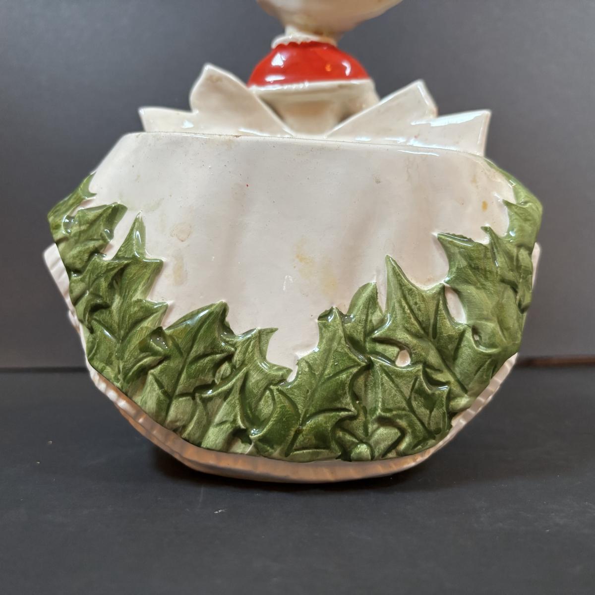 LOT 286: Vintage Relpo Christmas Holly Girl Figurine Planter, Angel Figurines, Spaghetti Santa & Mrs. Claus Salt/Pepper Shakers, Holiday Plates: Johnson Bros. Crown Staffordshire & Cuthbertson House