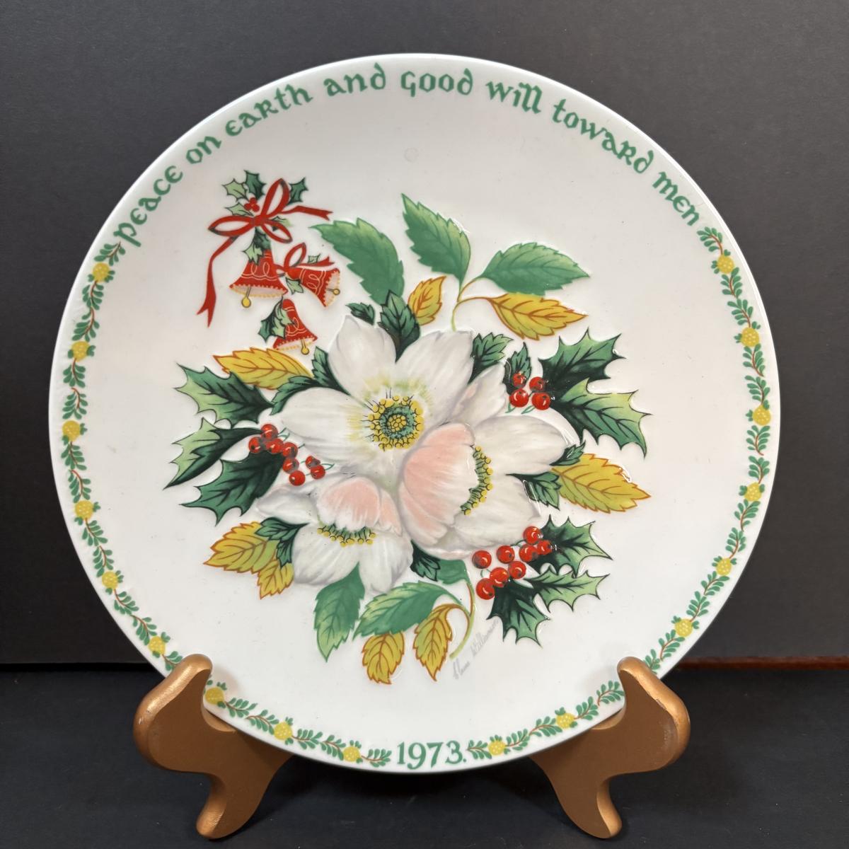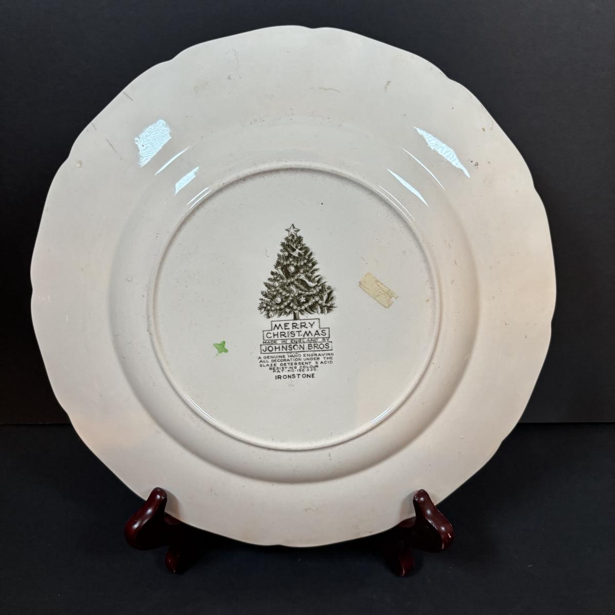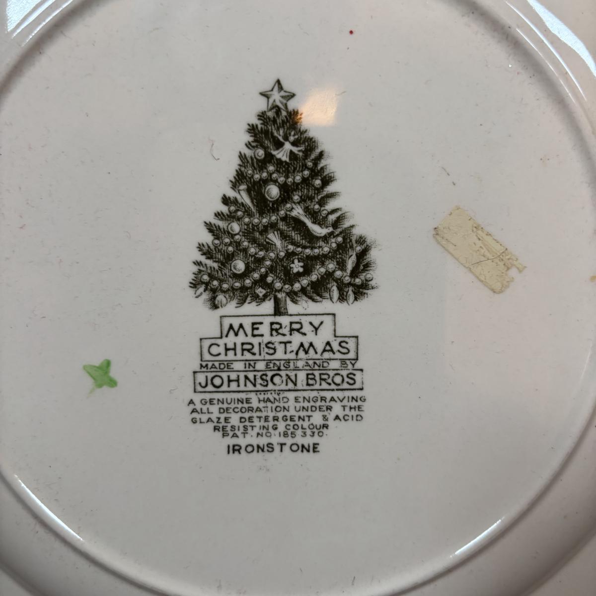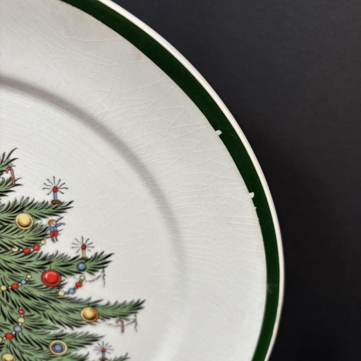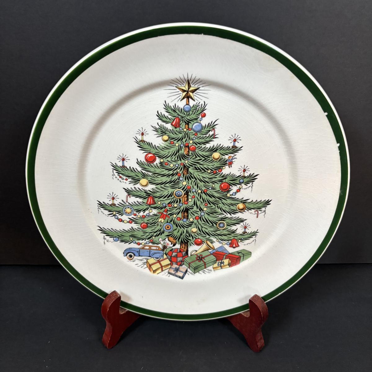 LOT 286: Vintage Relpo Christmas Holly Girl Figurine Planter, Angel Figurines, Spaghetti Santa & Mrs. Claus Salt/Pepper Shakers, Holiday Plates: Johnson Bros. Crown Staffordshire & Cuthbertson House