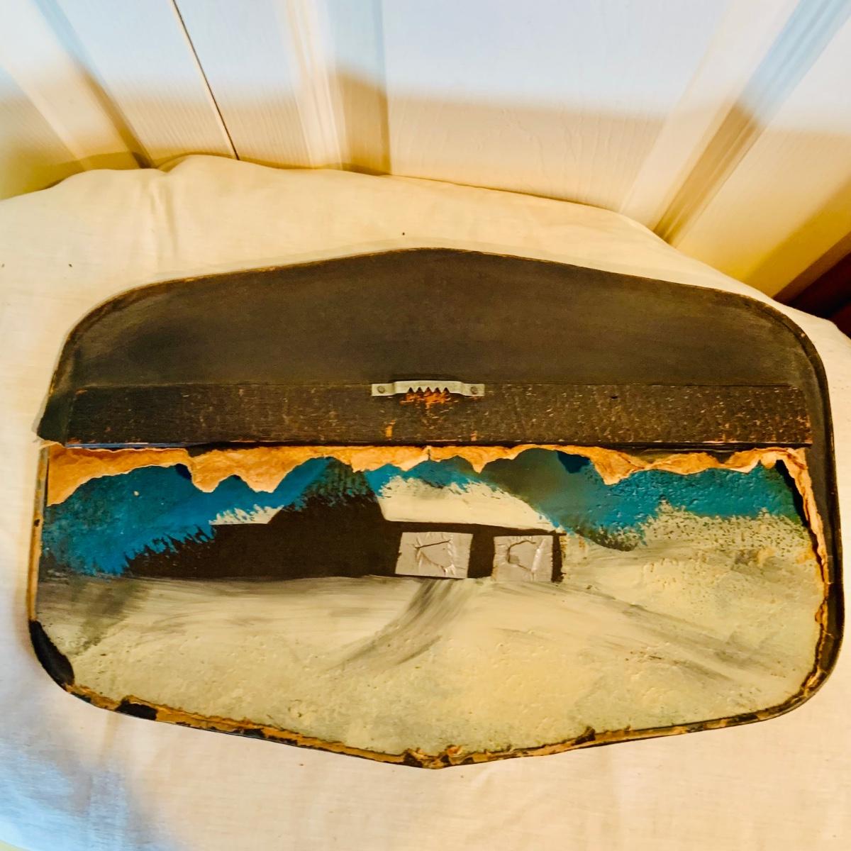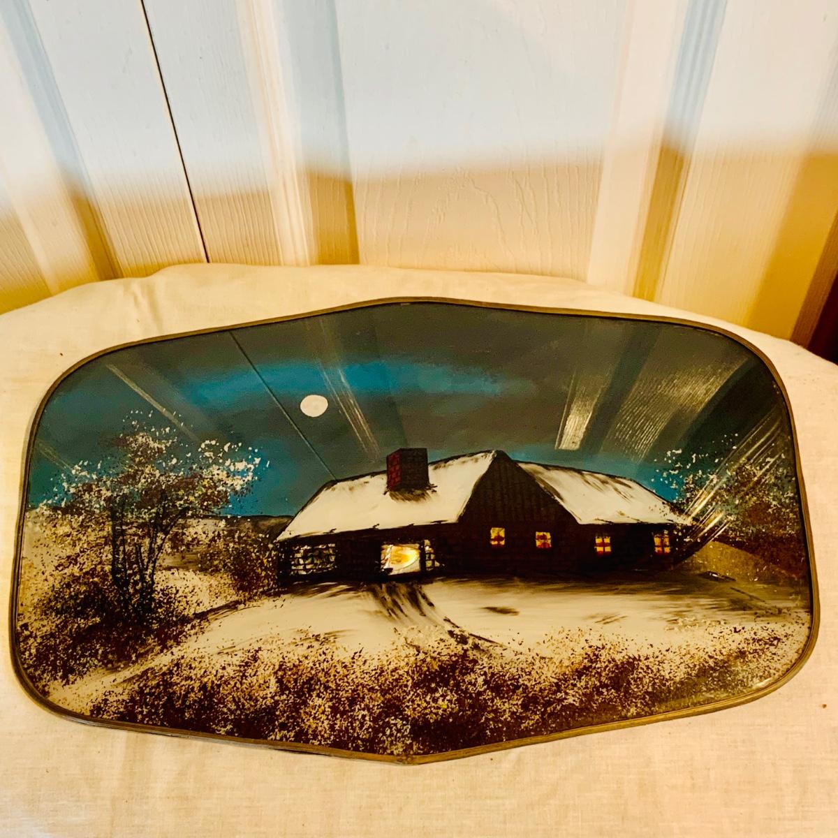 LOT 301: Antique/Vintage Reverse Painted Winter Cabin on Bubble Glass