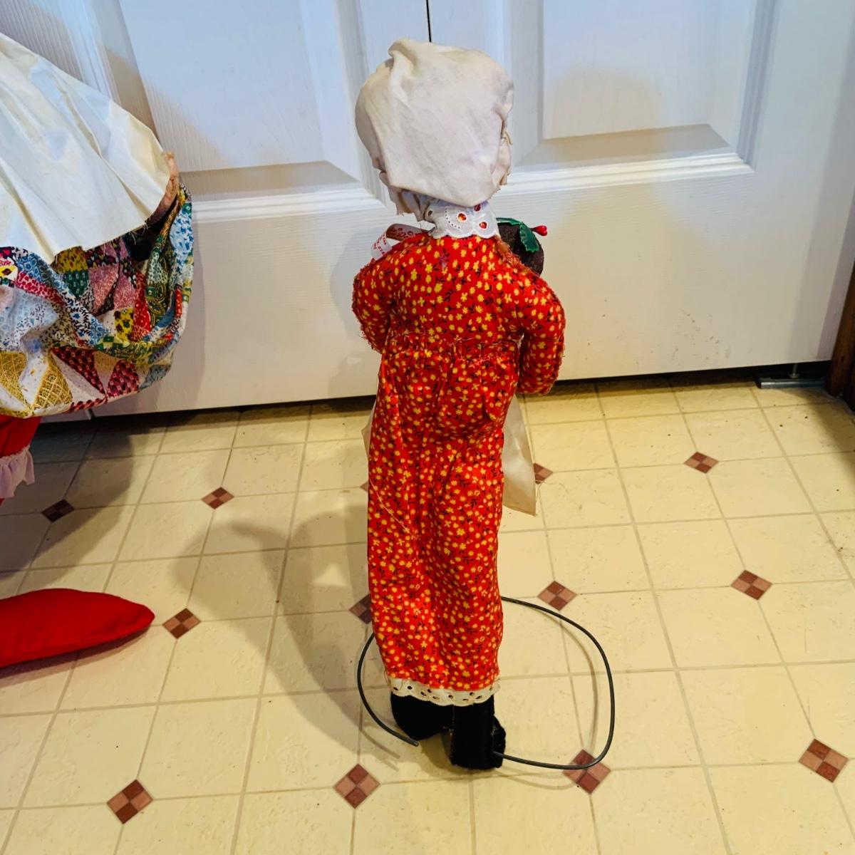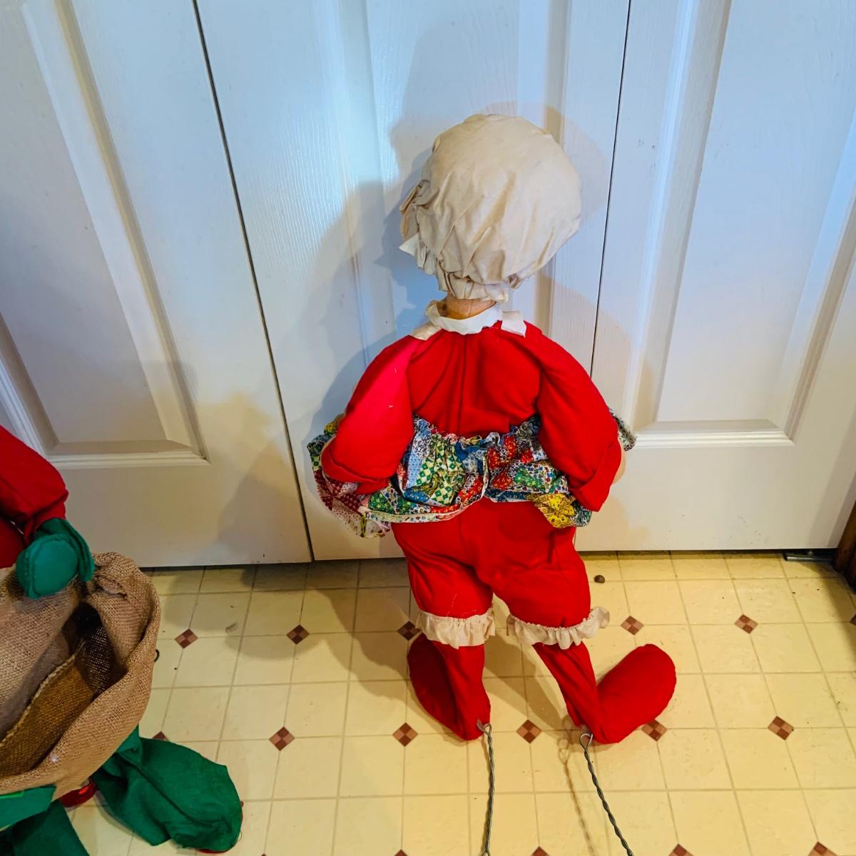 LOT 304: Vintage Annalee Holiday Dolls - Large Santa and Mrs Claus and Woman with Plum Pudding Dated 1971