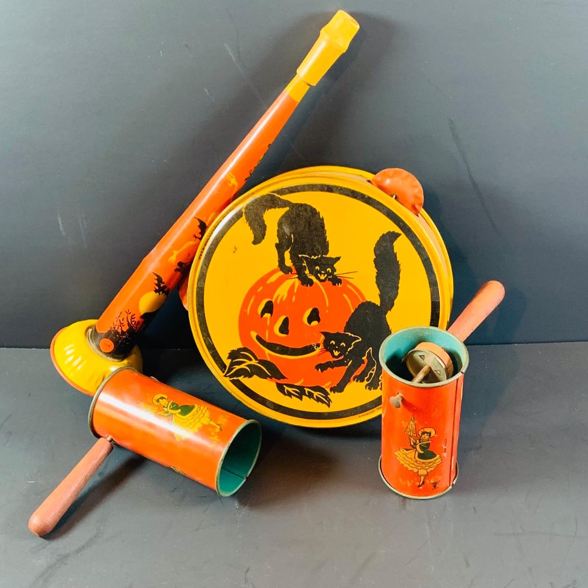 LOT 310: Vintage Tin Halloween and Other Noise Makers by Kirchof and Others