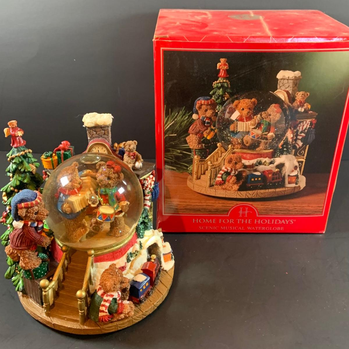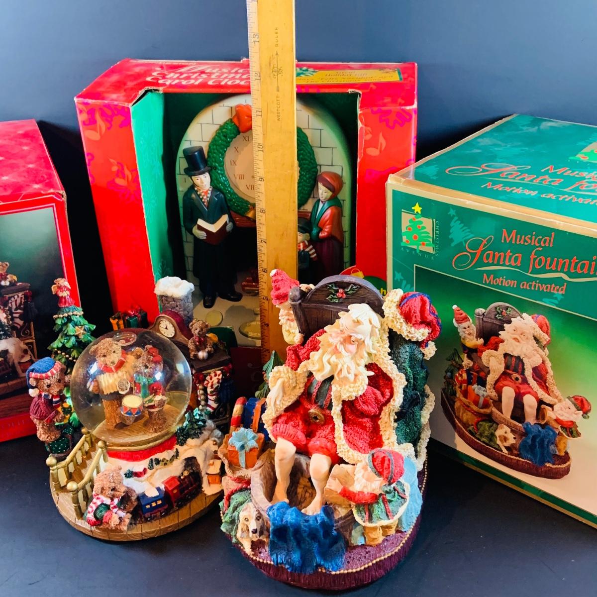 LOT 312: Collection of Holiday Home Decorations Including a Clock, Snow Globe and Fountian - All with Original Boxes
