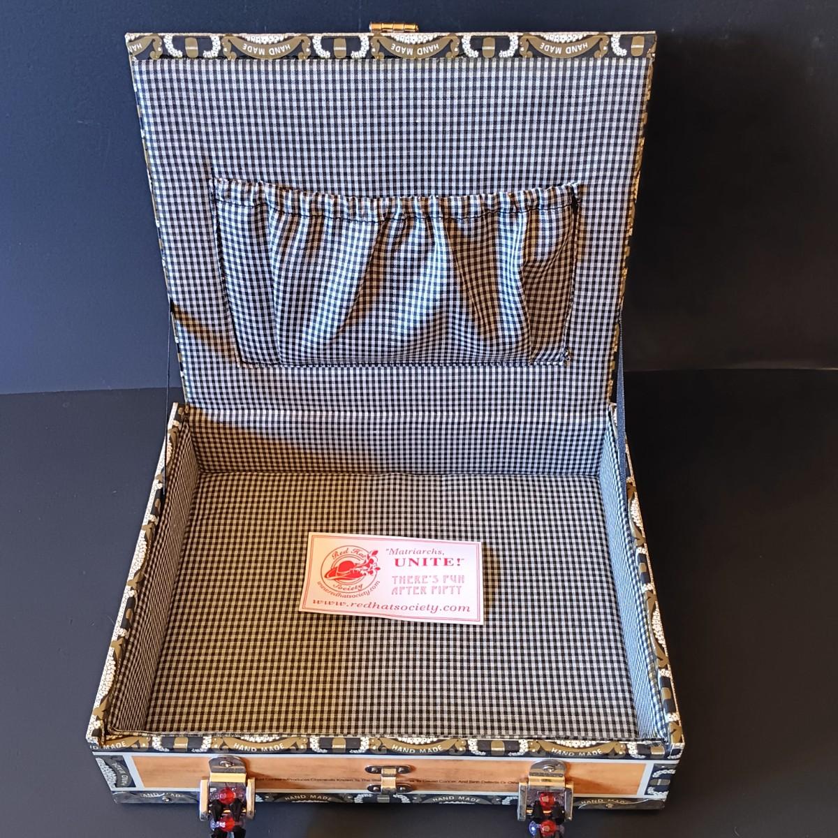 LOT 327: Red Hat Society Cigar Box Purse w/ Vintage Hats