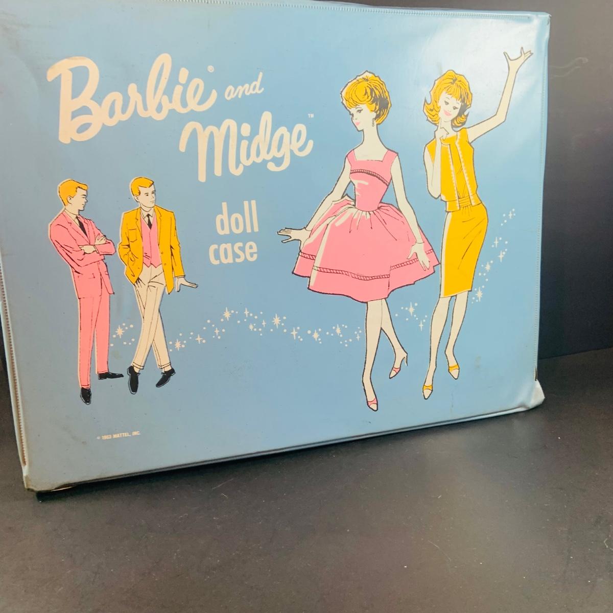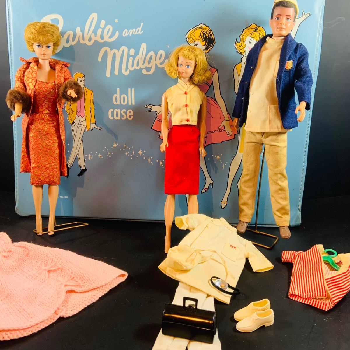 LOT 352: Barbie and Midge Doll Case with 1960's Barbie, Midge and Ken Doll and Ken Doll Uniform and Other Vintage Barbie Doll Cothes and Assesories