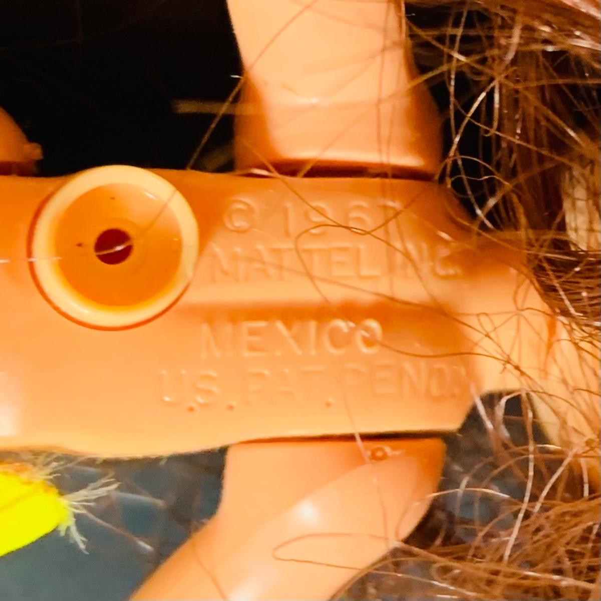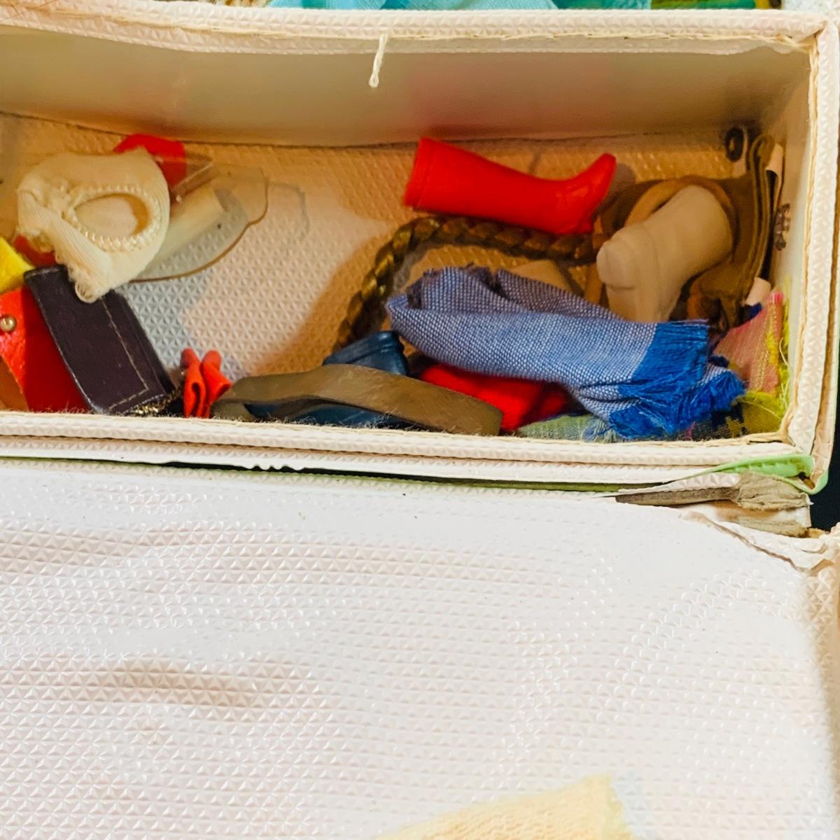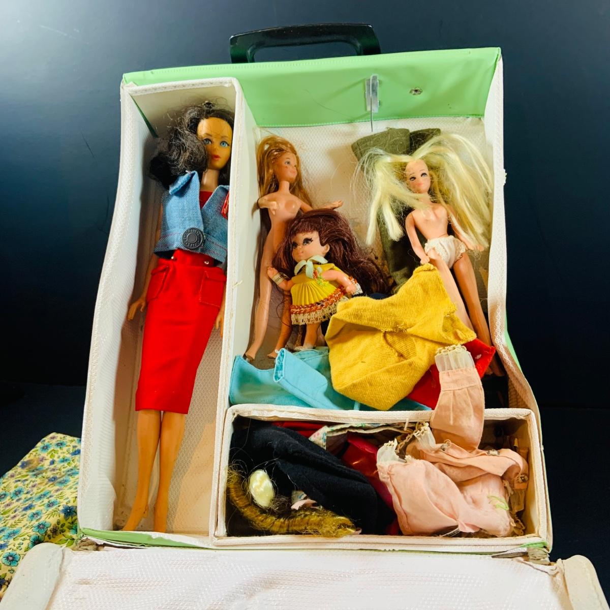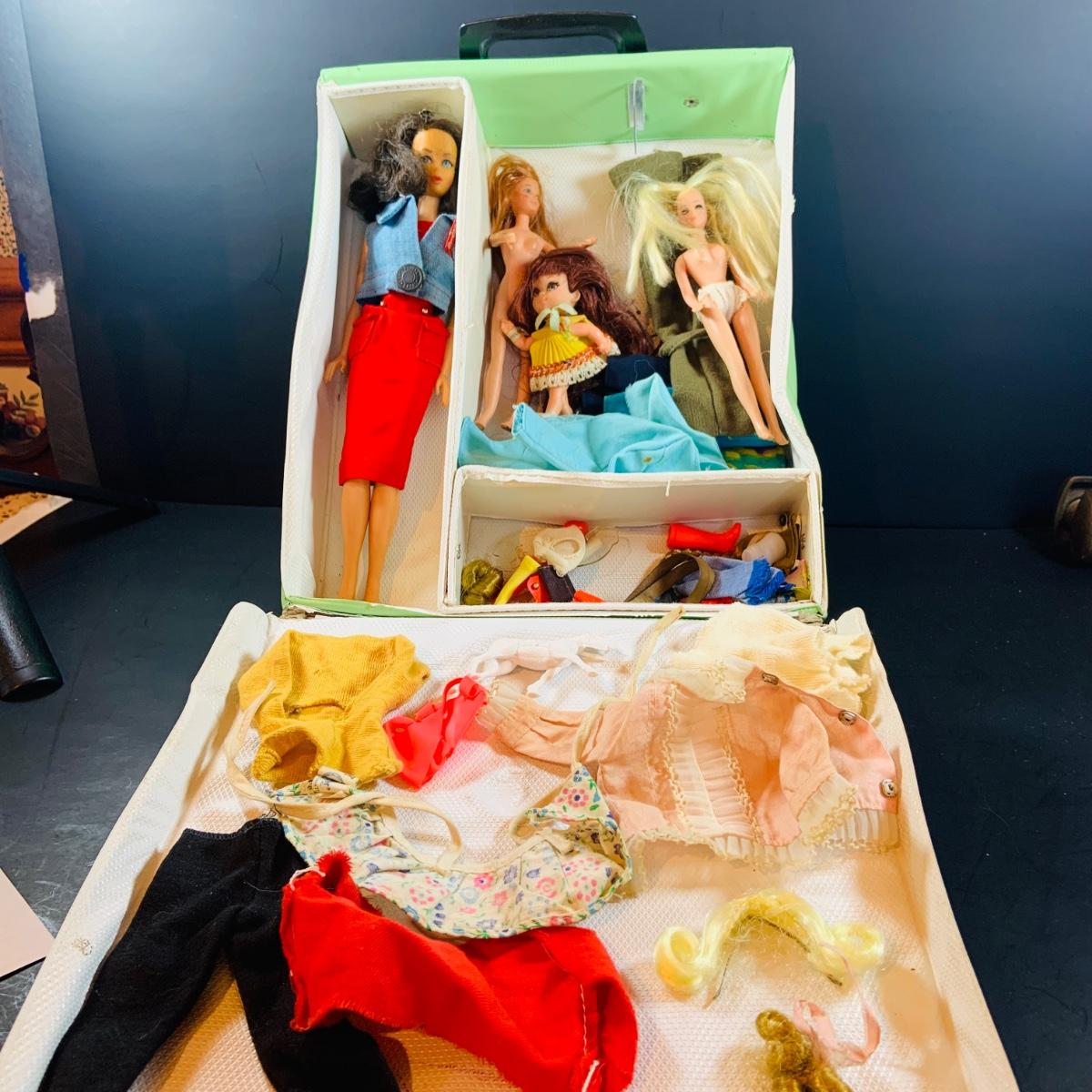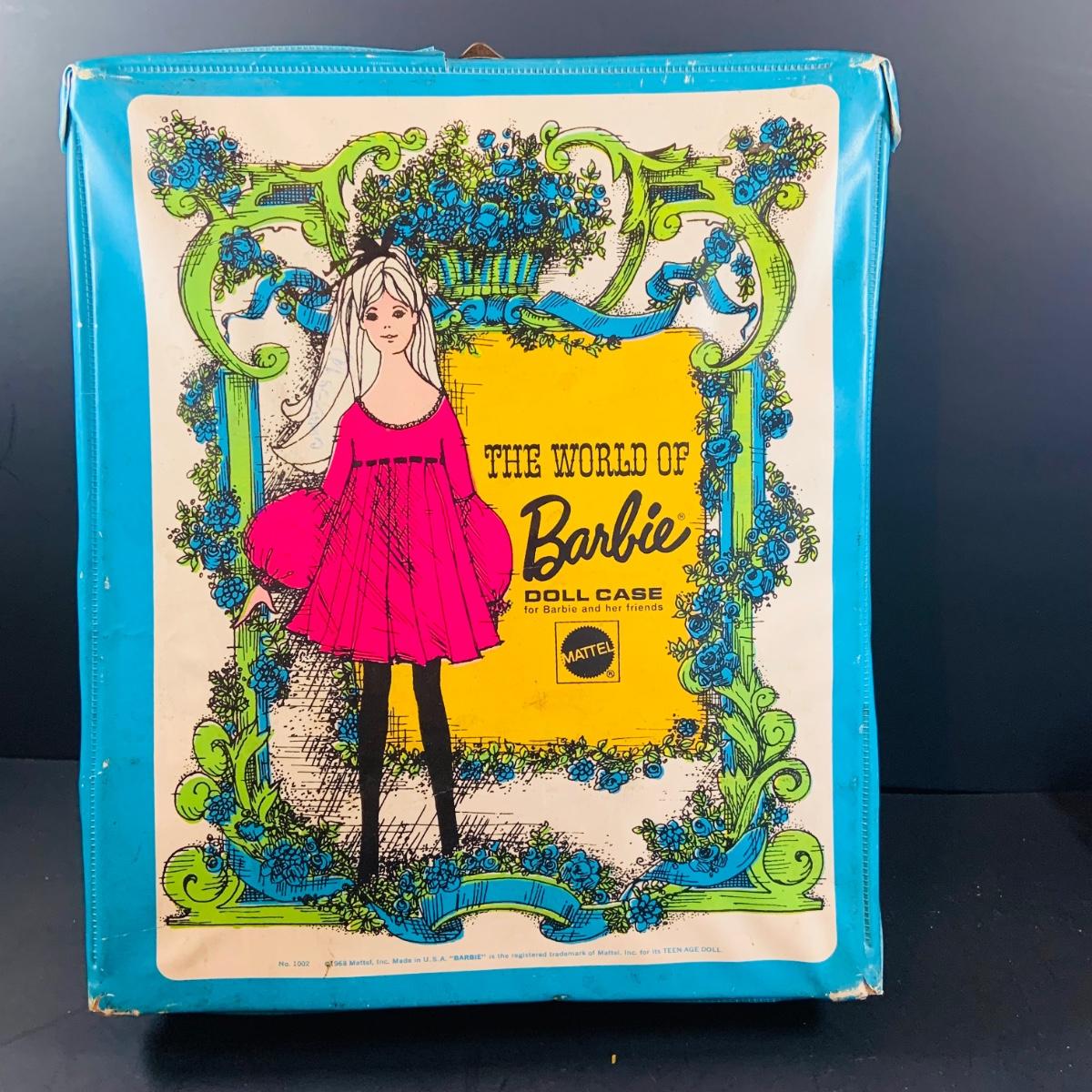 LOT 354: Vintage 1968 Vintage World of Barbie Doll Case with Cloth Dark Haired Barbie, Skediddle Doll, and Smaller Mattel Dolls