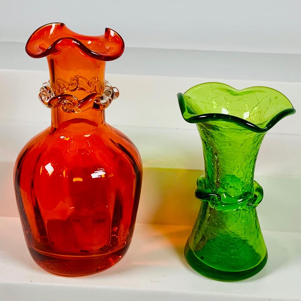 LOT 359: Colorful Art Glass Collection Including Glass Boots, Top Hat Small PItchers, Vases, Wheaton Ink Well