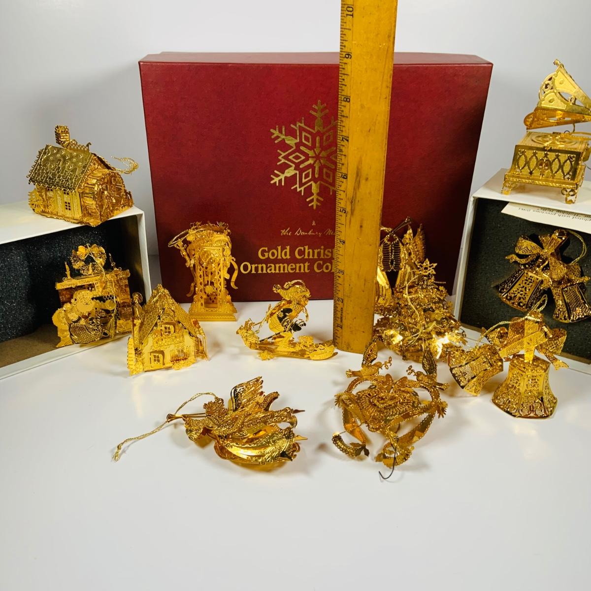 LOT 361: Danbury Mint Gold Christmas Ornaments - Some from the Collection, Others Dated