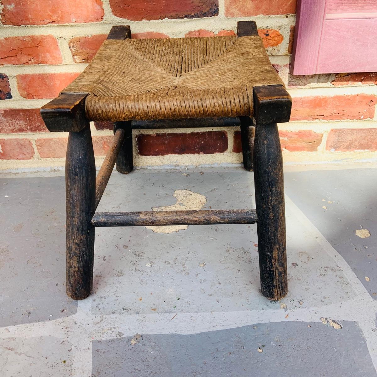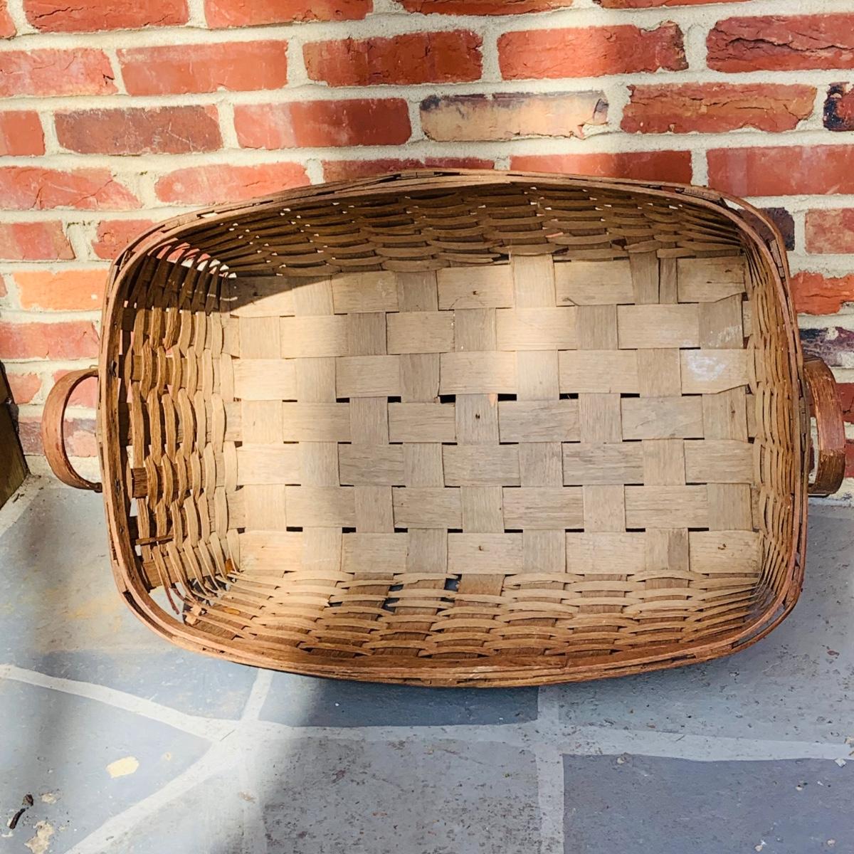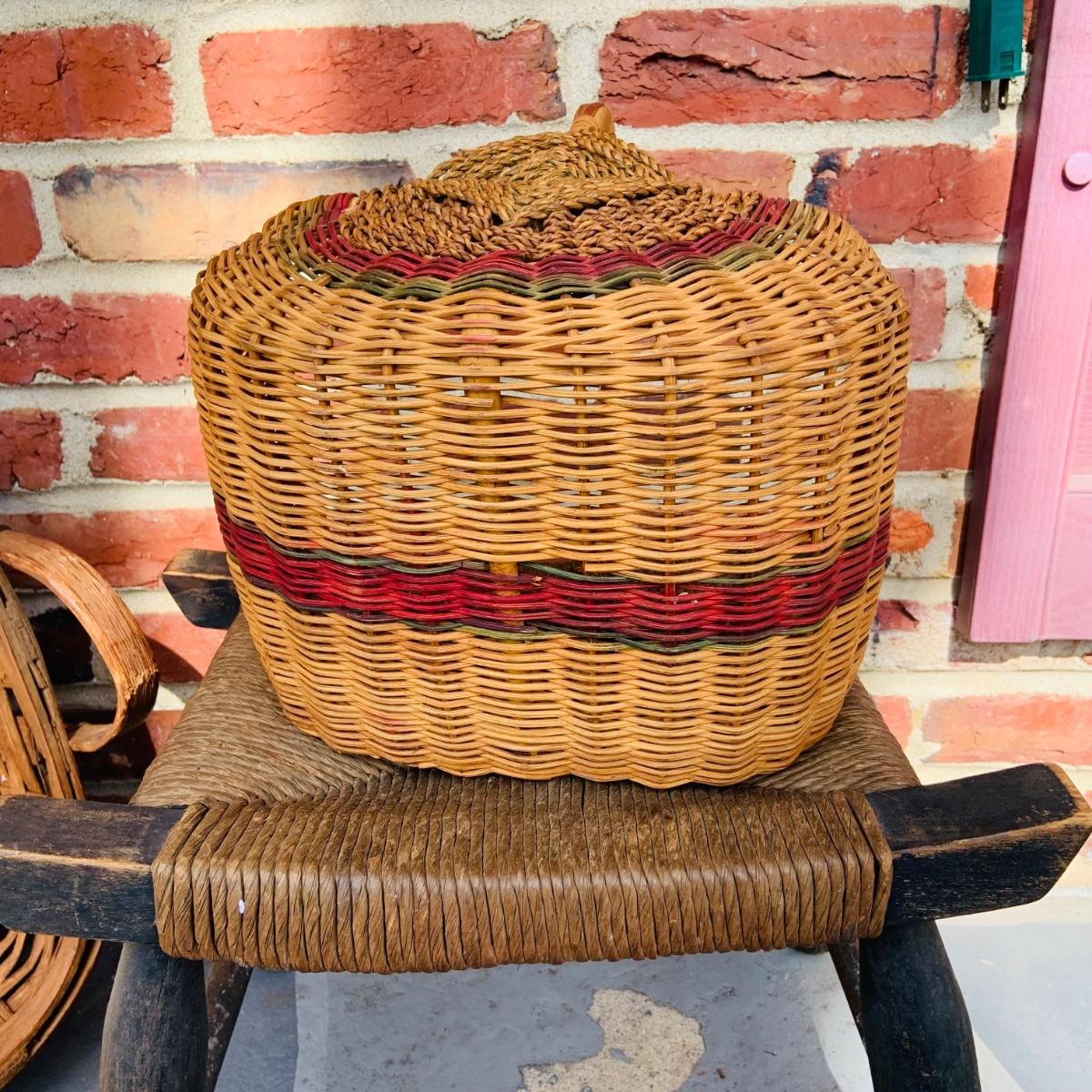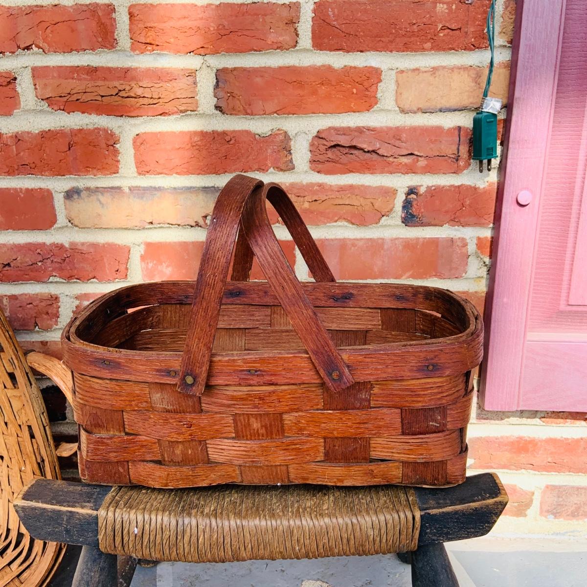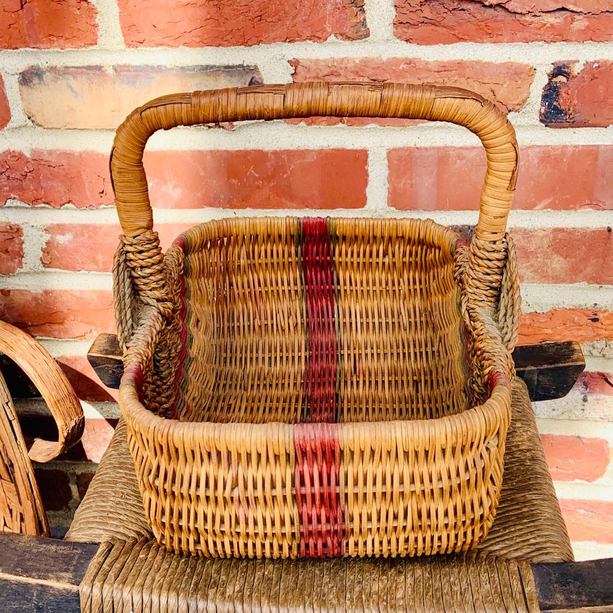LOT 364: Collection of Primitive Baskets, Arts & Crafts Country Rush Footstool, Primitive Broom and Rug Beaters