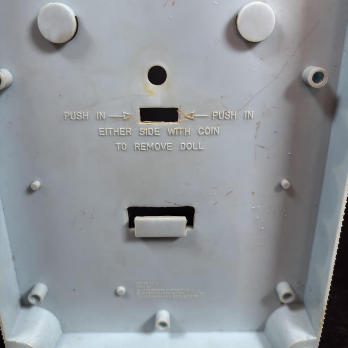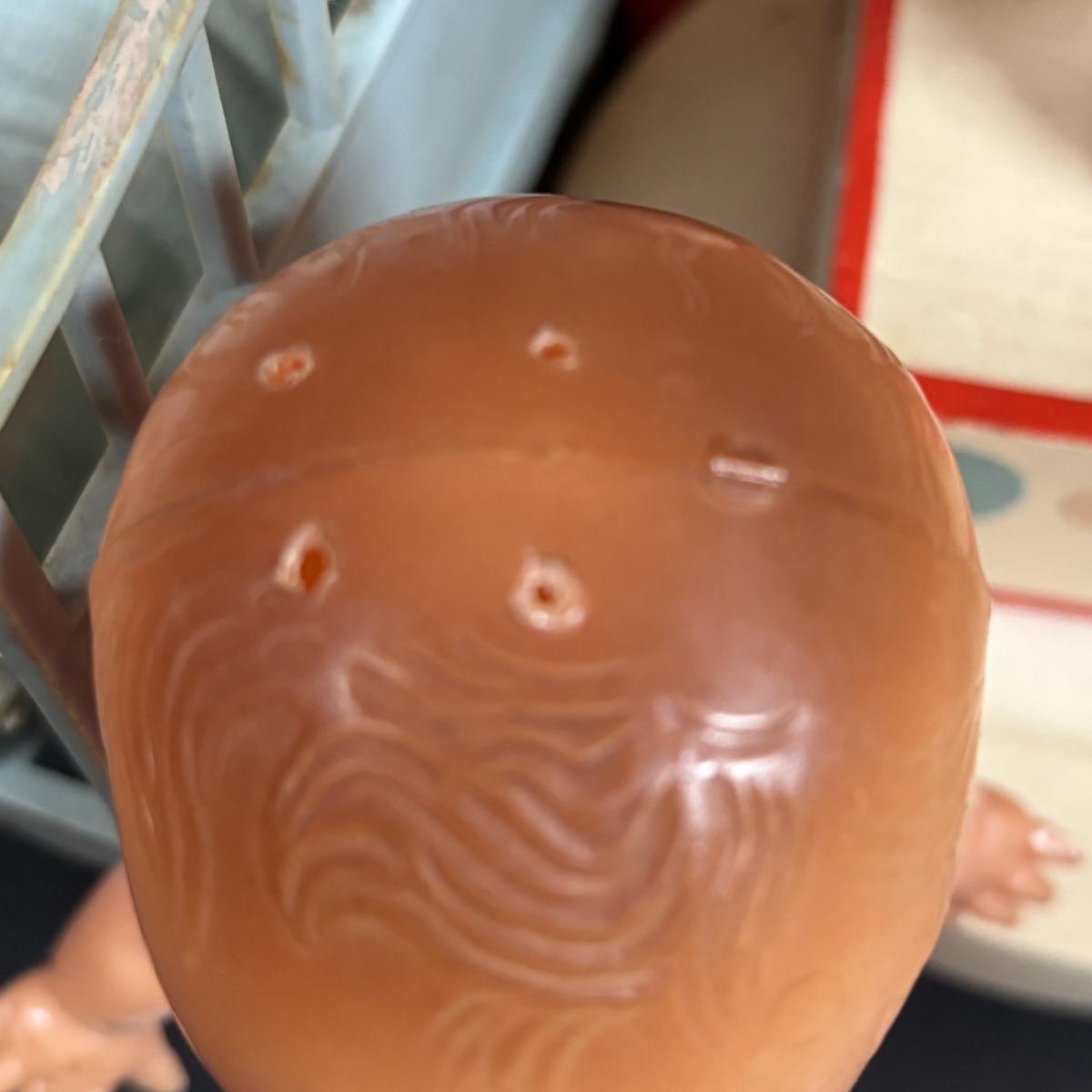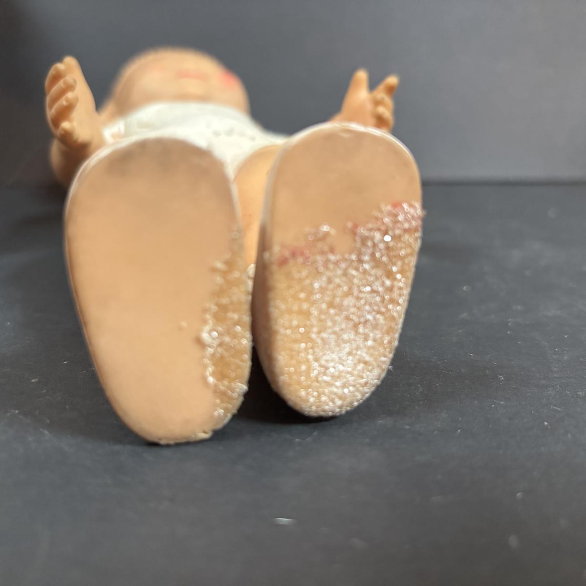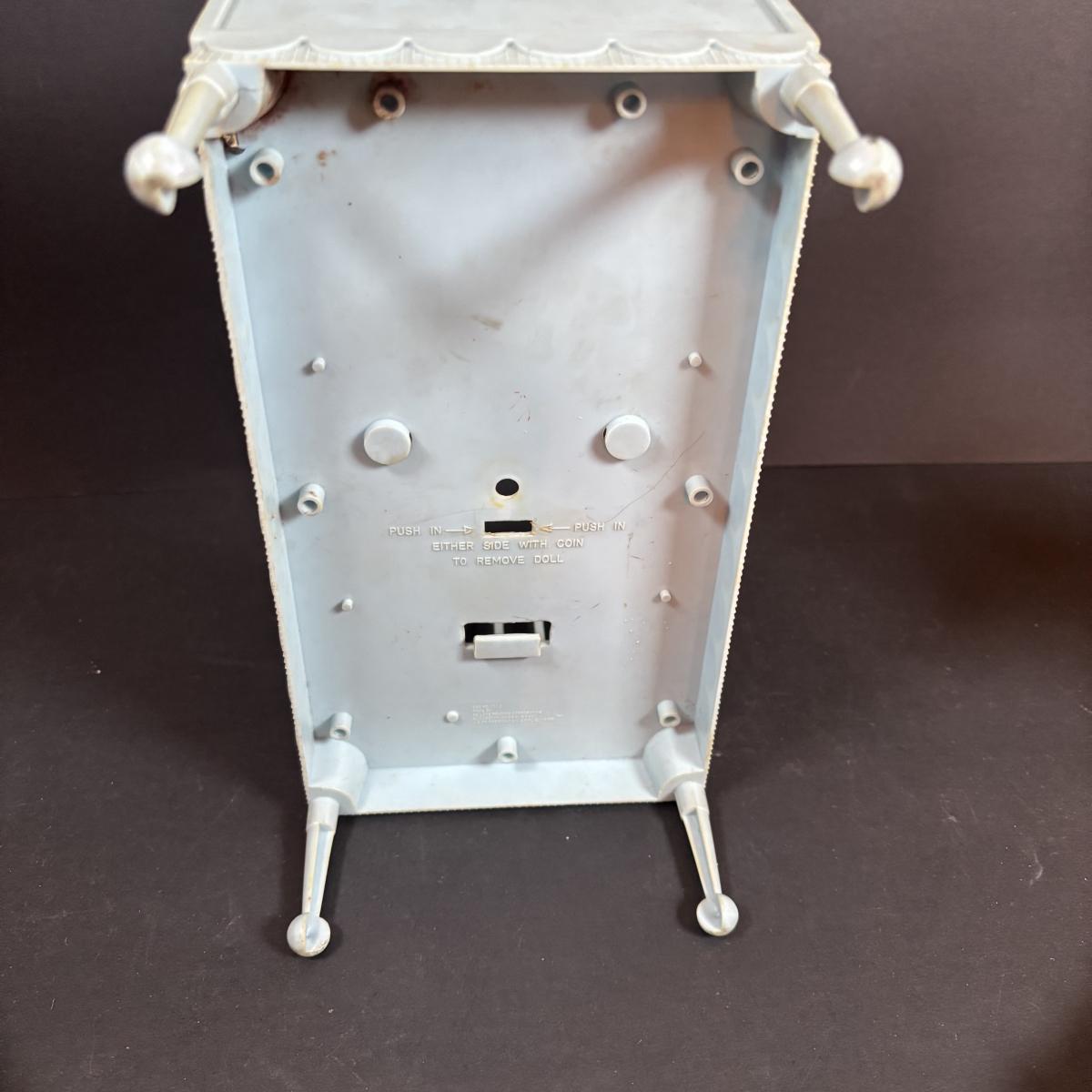 LOT 406: Vintage Doll Collection: Irwin Kewpie Doll, Plastic Doll w/Sleepy Eyes, Blue Doll Crib, Rubber Salvation Army Doll, Squeaky Clown & Wooden Jack in the Box Nursery Lamp