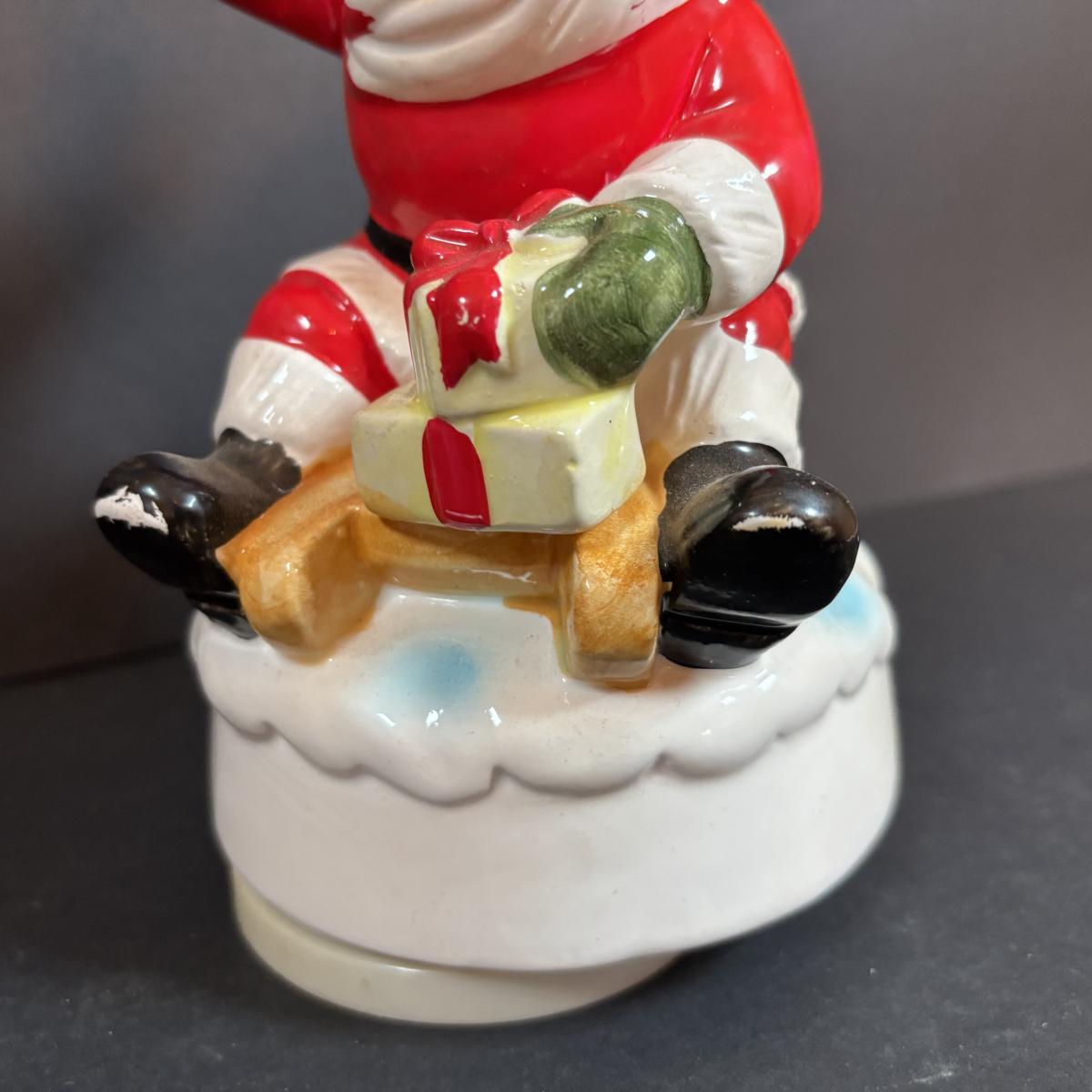 LOT 407: Hand Painted Le Gourmet Chef Gingerbread Man Plates (4), 2006 Hummel Ornament, Pfaltzgraff Winter Berry Platter, Ceramic Santa Wind-Up Music Box, The Spirit of Christmas Books (2,3,4)
