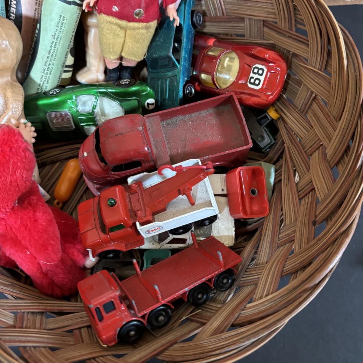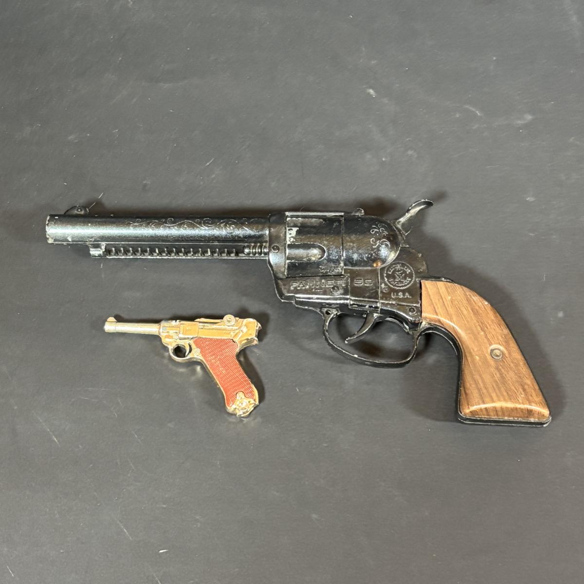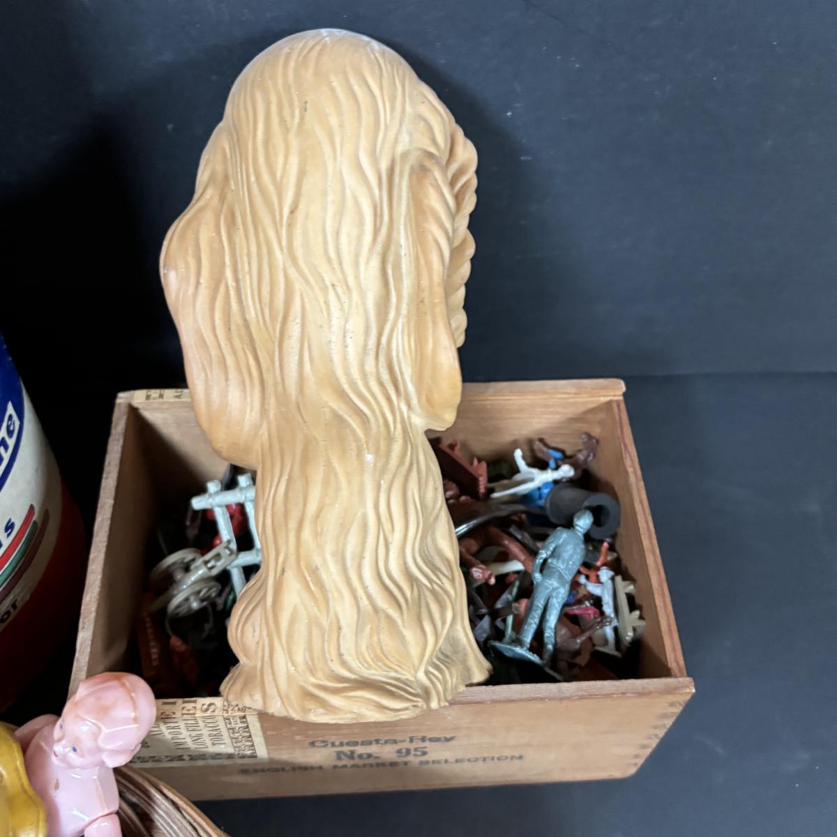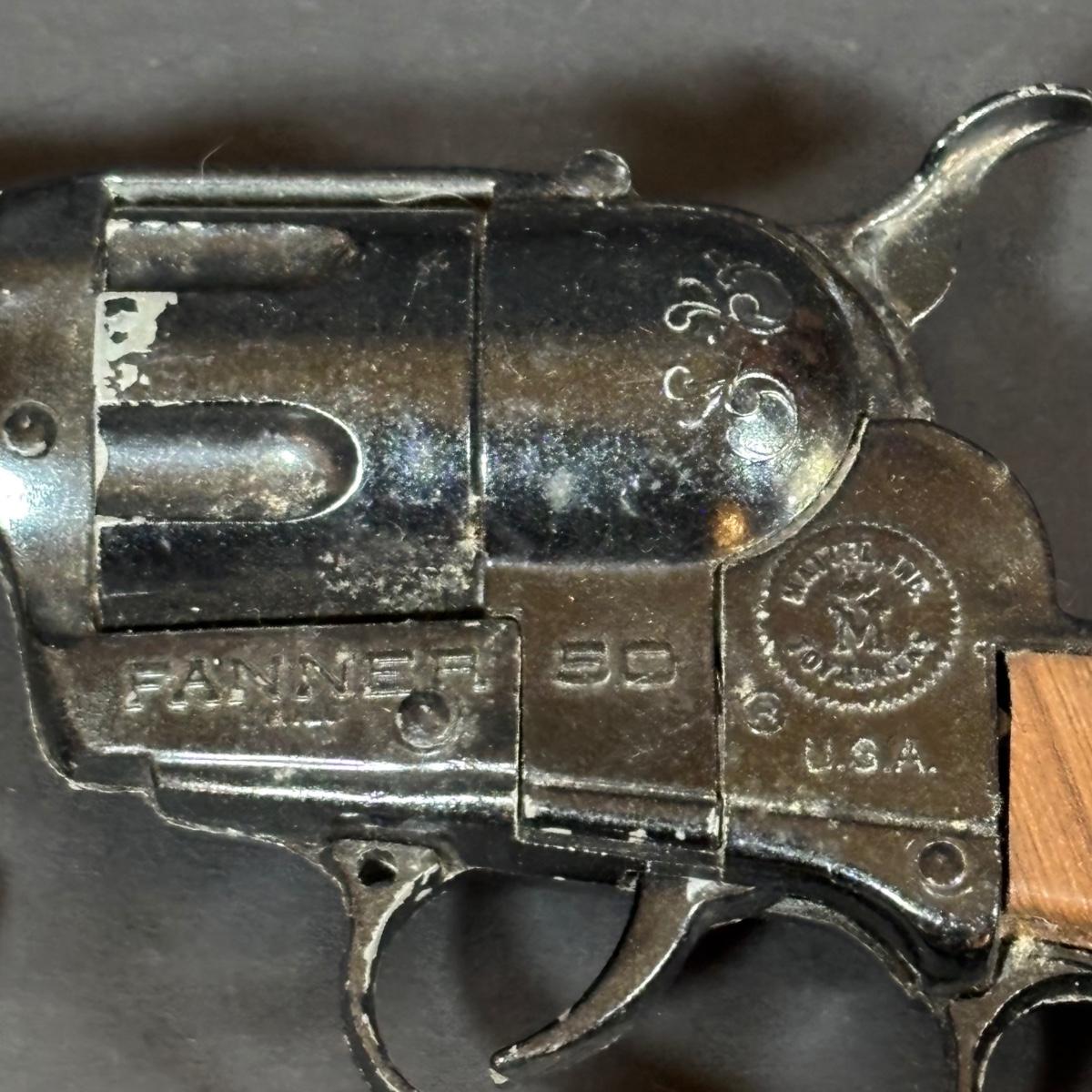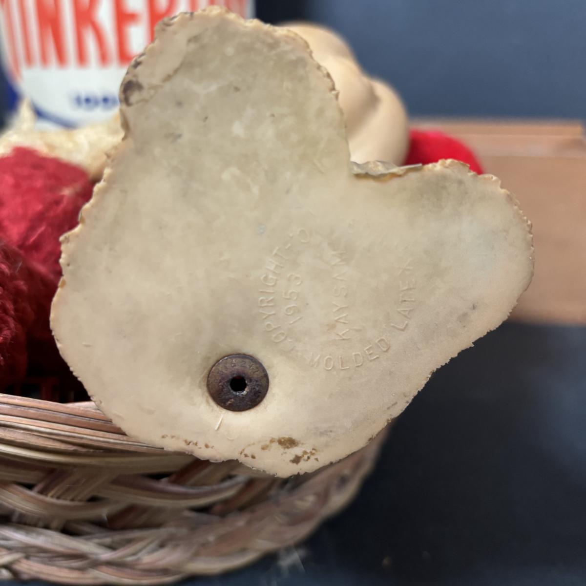 LOT 414: Vintage Toy Collection: Mattel Fanner Gun, Marx Toy Gun, 1953 Kaysam Latex Dog, Sweet Pea Doll, Tinker Toys & More