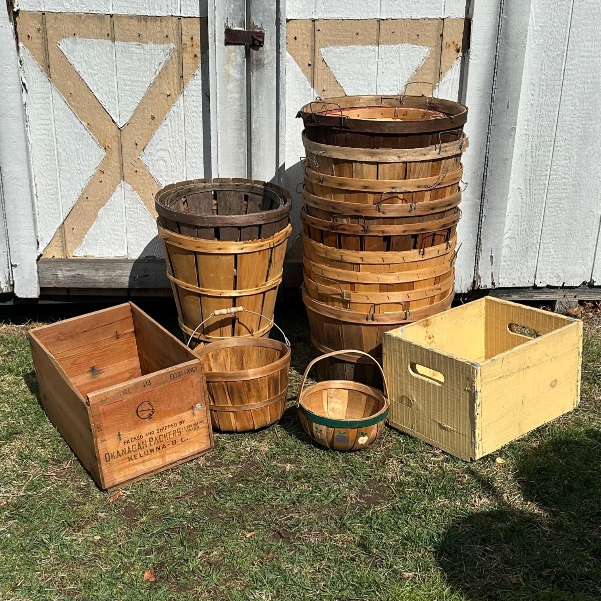 LOT 5S: Vintage Bushel Baskets & Wooden Crates