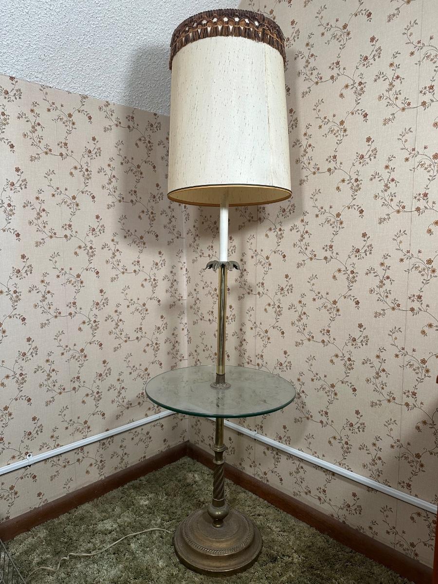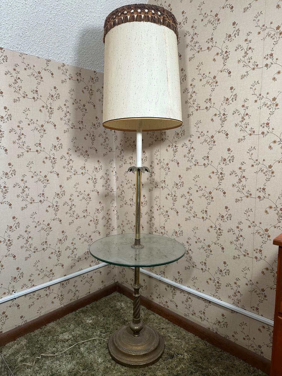 LOT 22Y: Vintage Glass & Brass Table Lamp Side Table