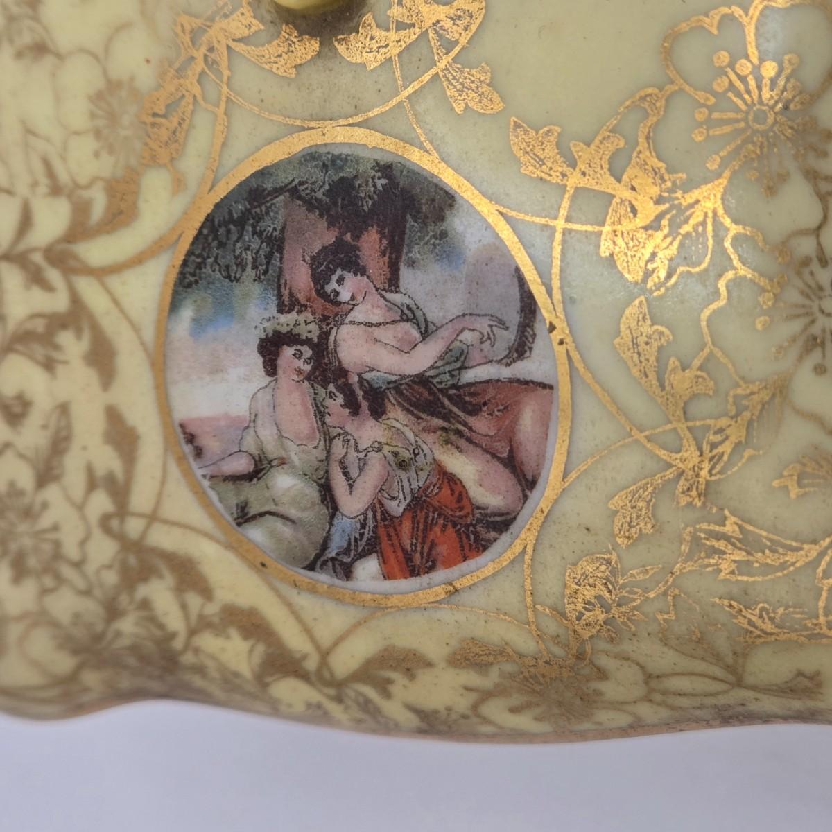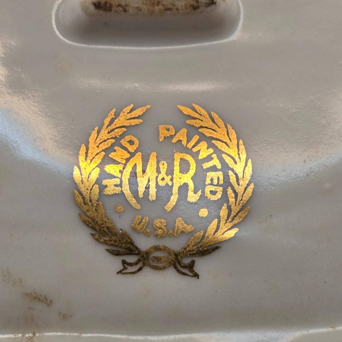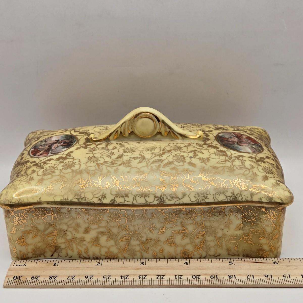 LOT 47K: Victorian Double Handled Bud Vase, Vintage Enesco Bud Vase, Small Asian Style Bud Vase, Royal Albert Christmas Rose, & Vintage M&R Trinket Box