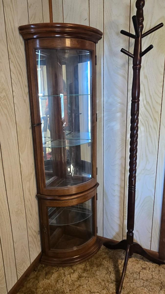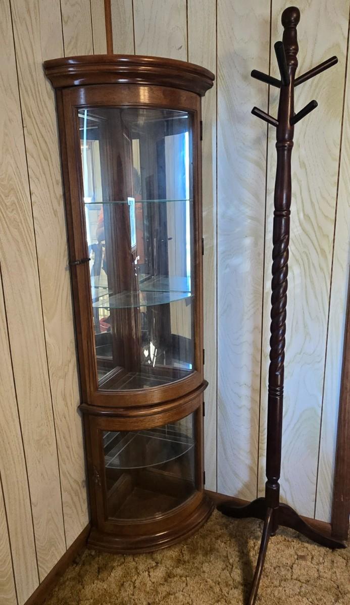 LOT 80D: Corner Curio Cabinet and Coat Tree