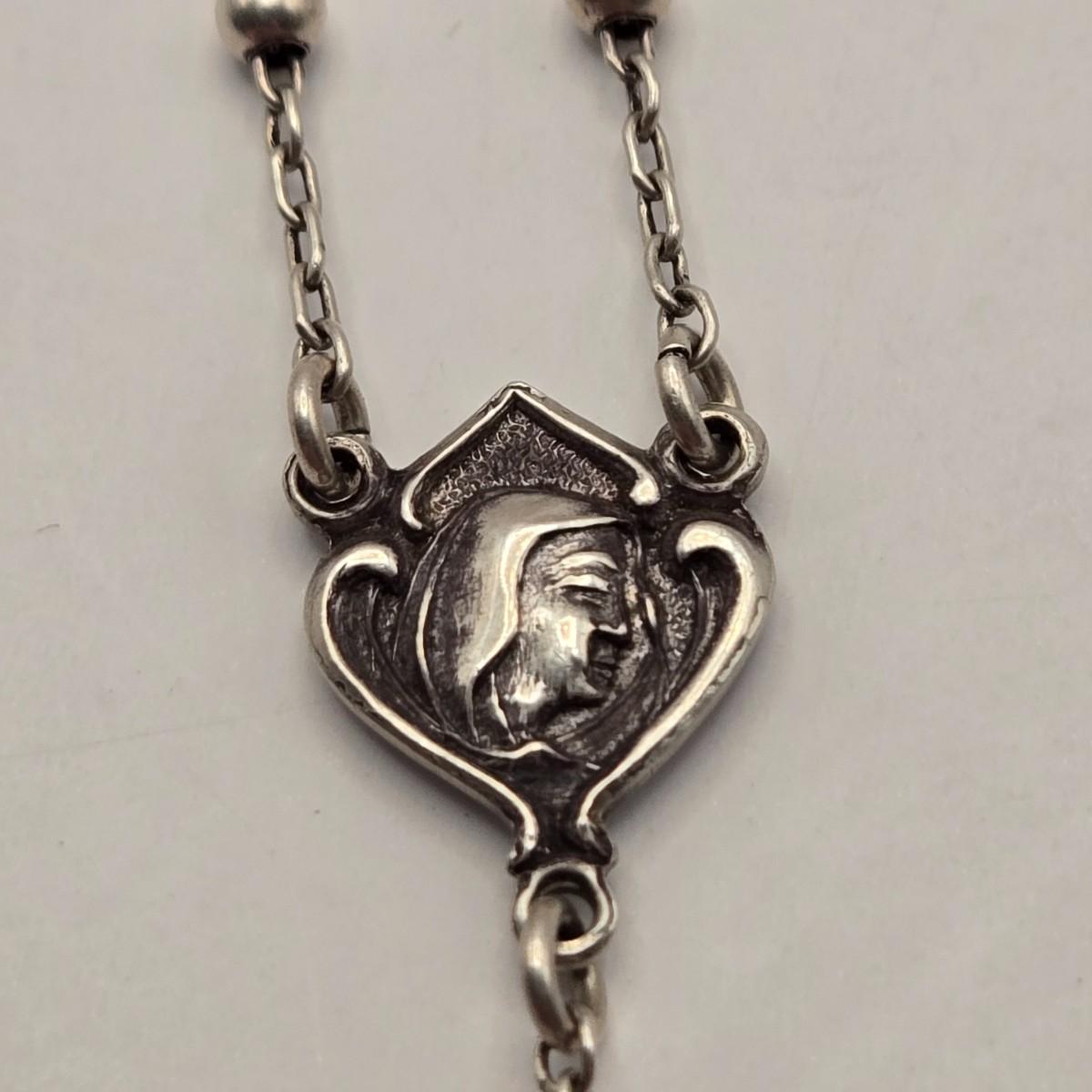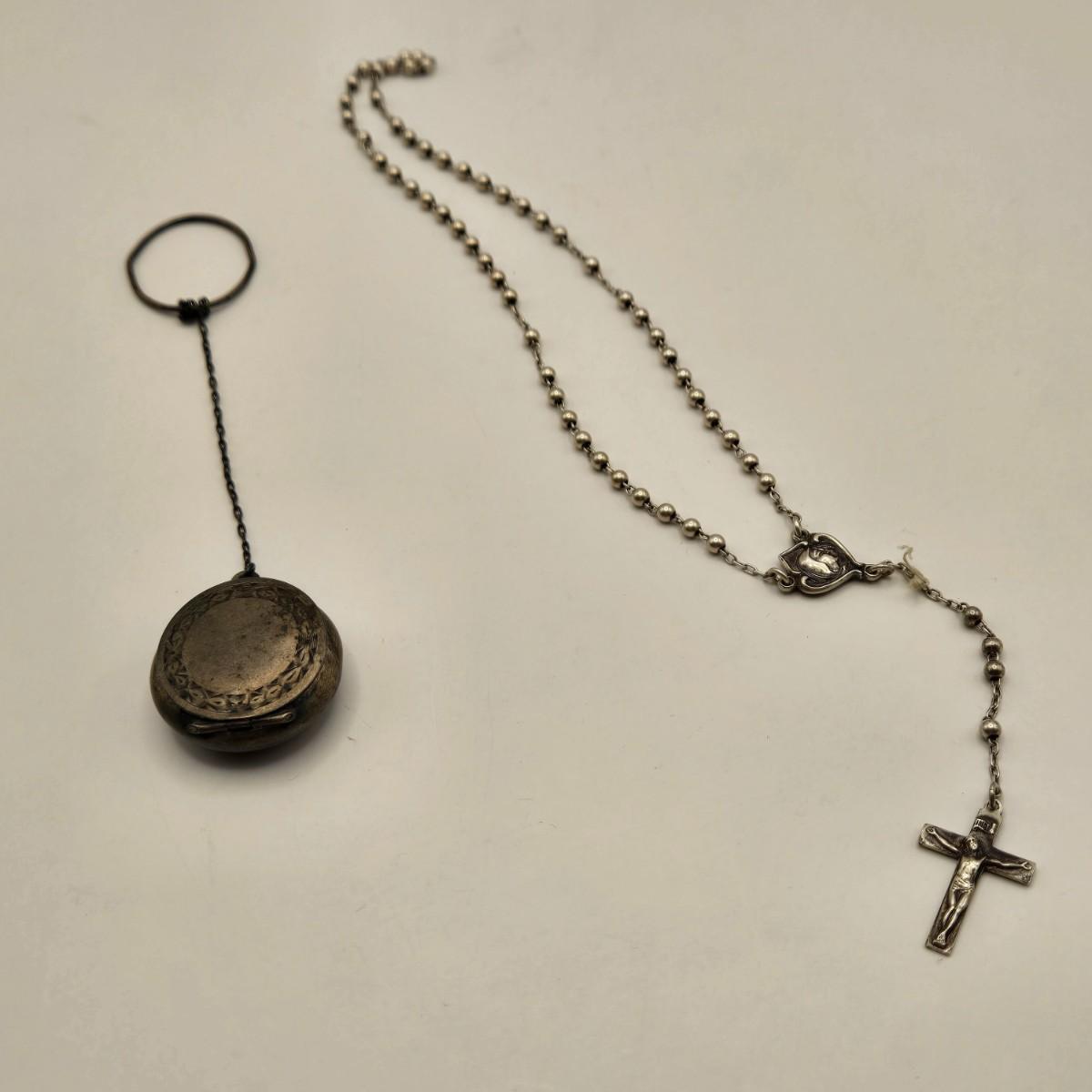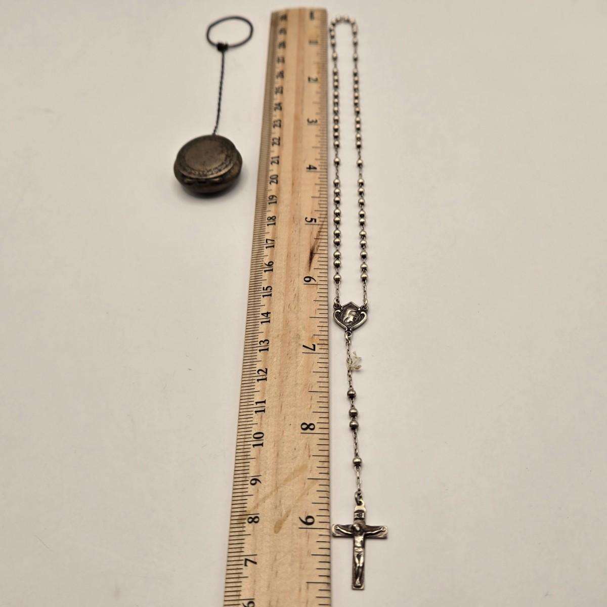 LOT 88J: Sterling Silver Victorian Pillbox on Chain & Sterling Silver Miniature Rosary