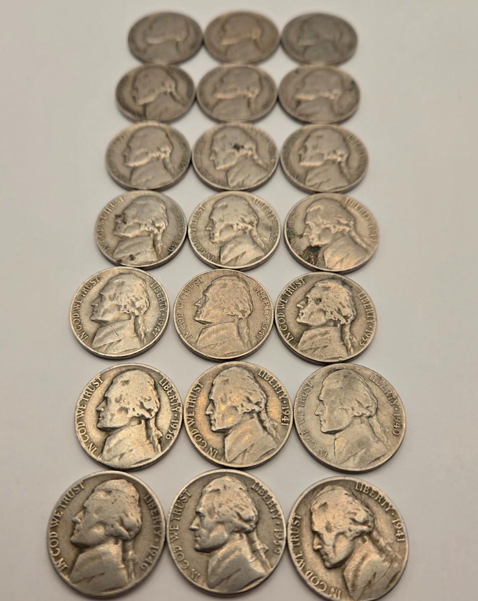 LOT 90J: Jefferson Nickel Collection 1938-1961 / Including Wartime Silver Nickels & Buffalo Nickel