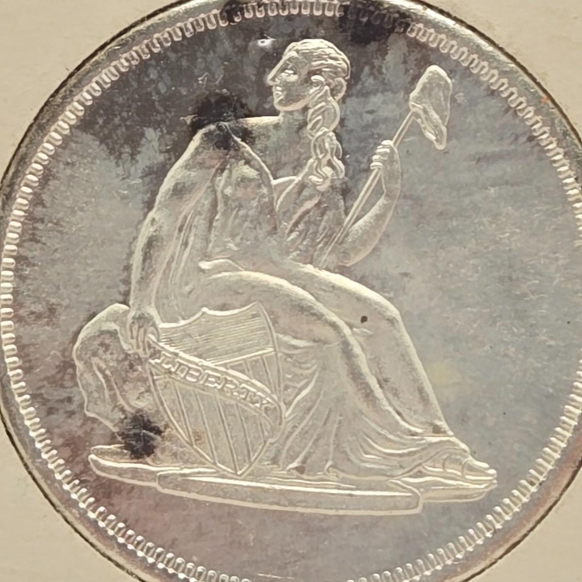 LOT 91J: 1 Ounce Troy .999 Silver Seated Liberty Dollar Coin