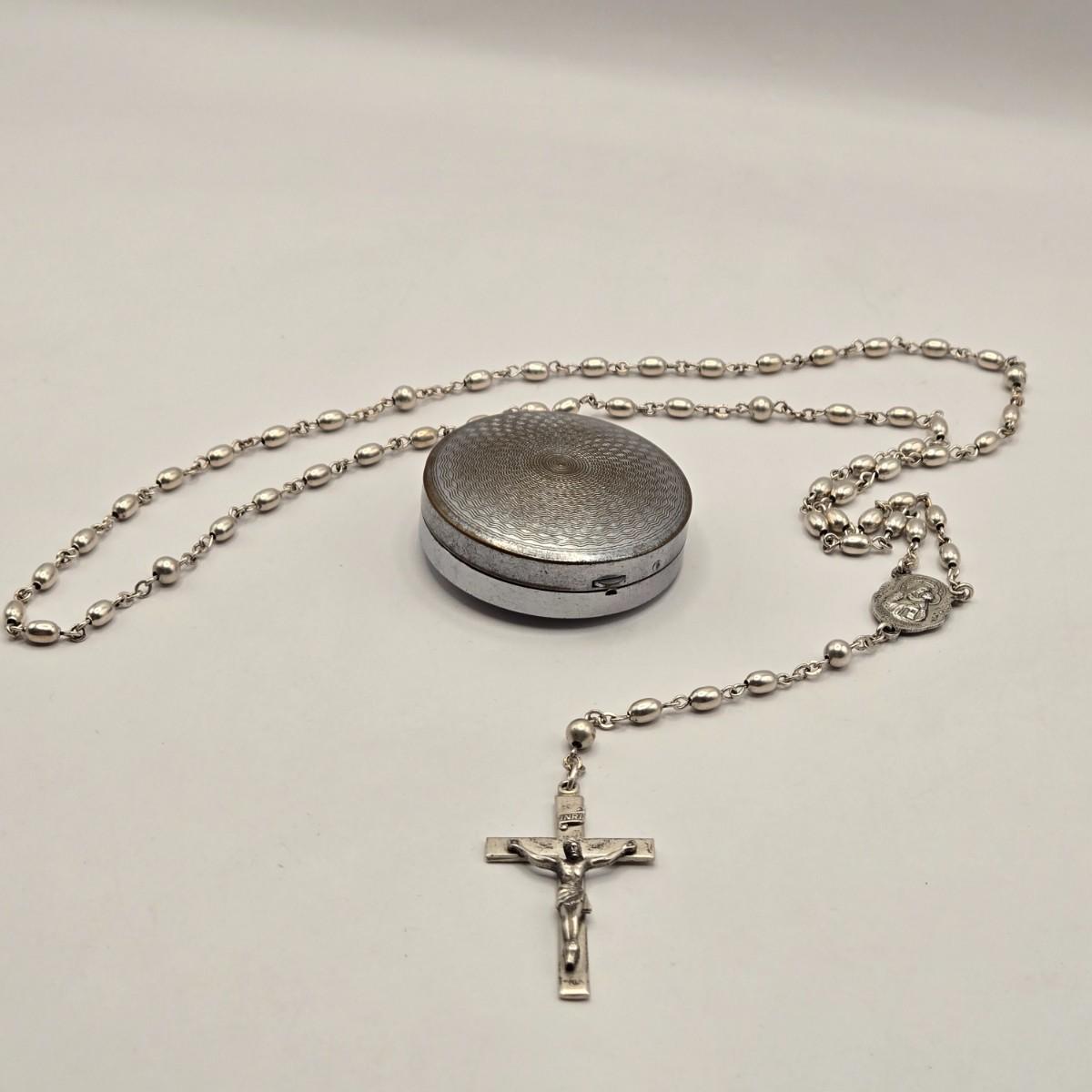 LOT 93J: Creed Sterling Silver Rosary in Case - 23.8 Grams