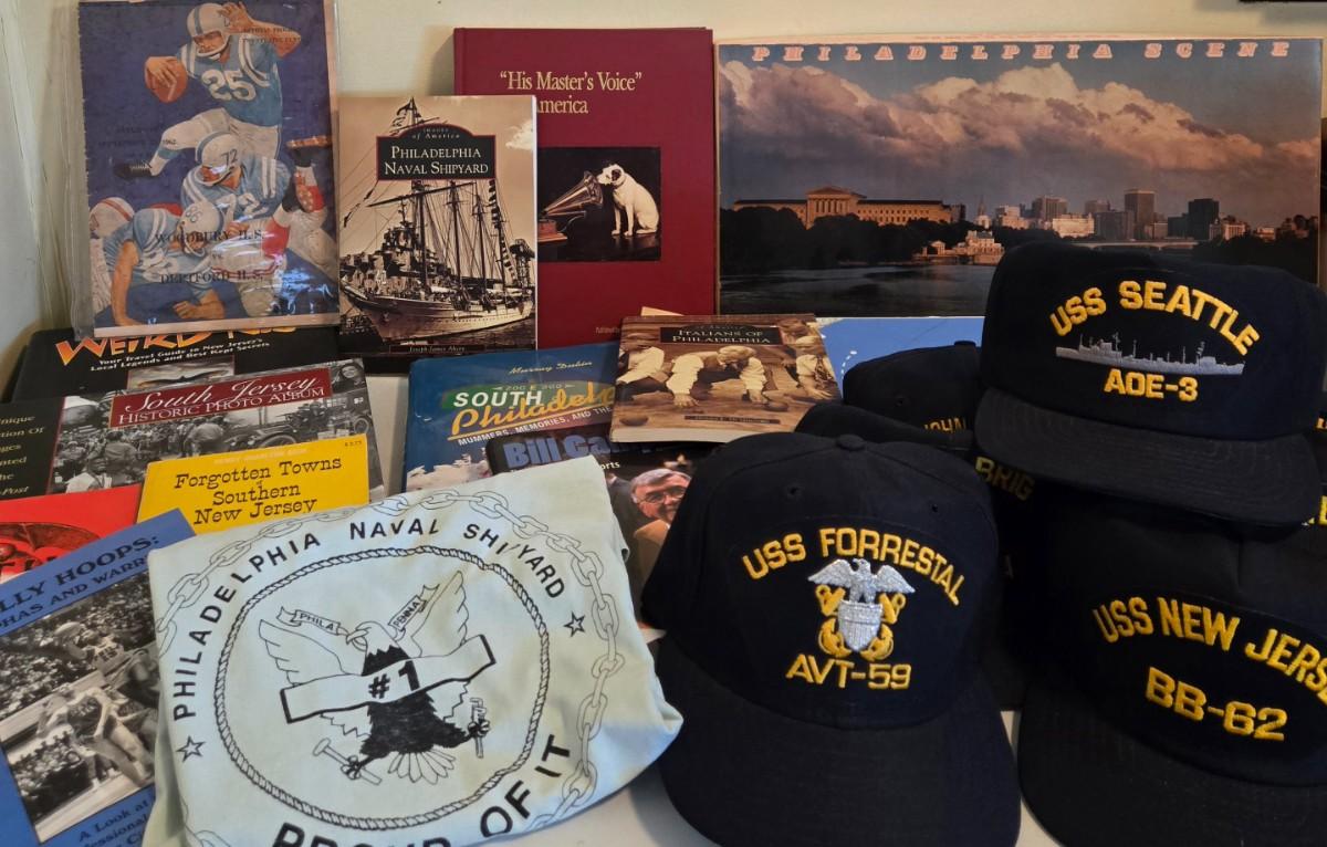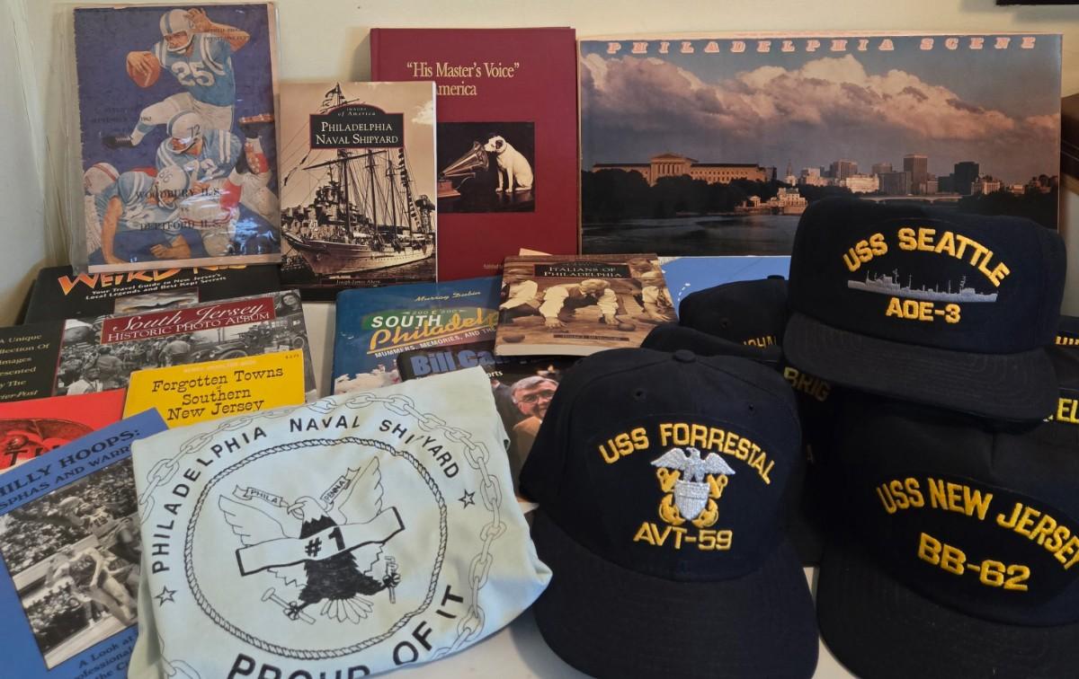 LOT 98K: Philadelphia Naval Ship Yard Books, Hats, T-Shirt, Philadelphia Puzzle, Game, Books, South Jersey Books, & More