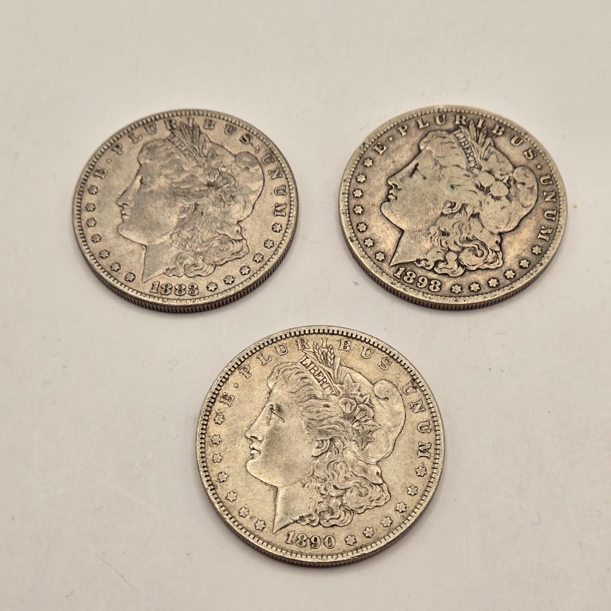 LOT 100J: Morgan Silver Dollars 1883-S, 1848-S, 1890 No Mark/ Philadelphia