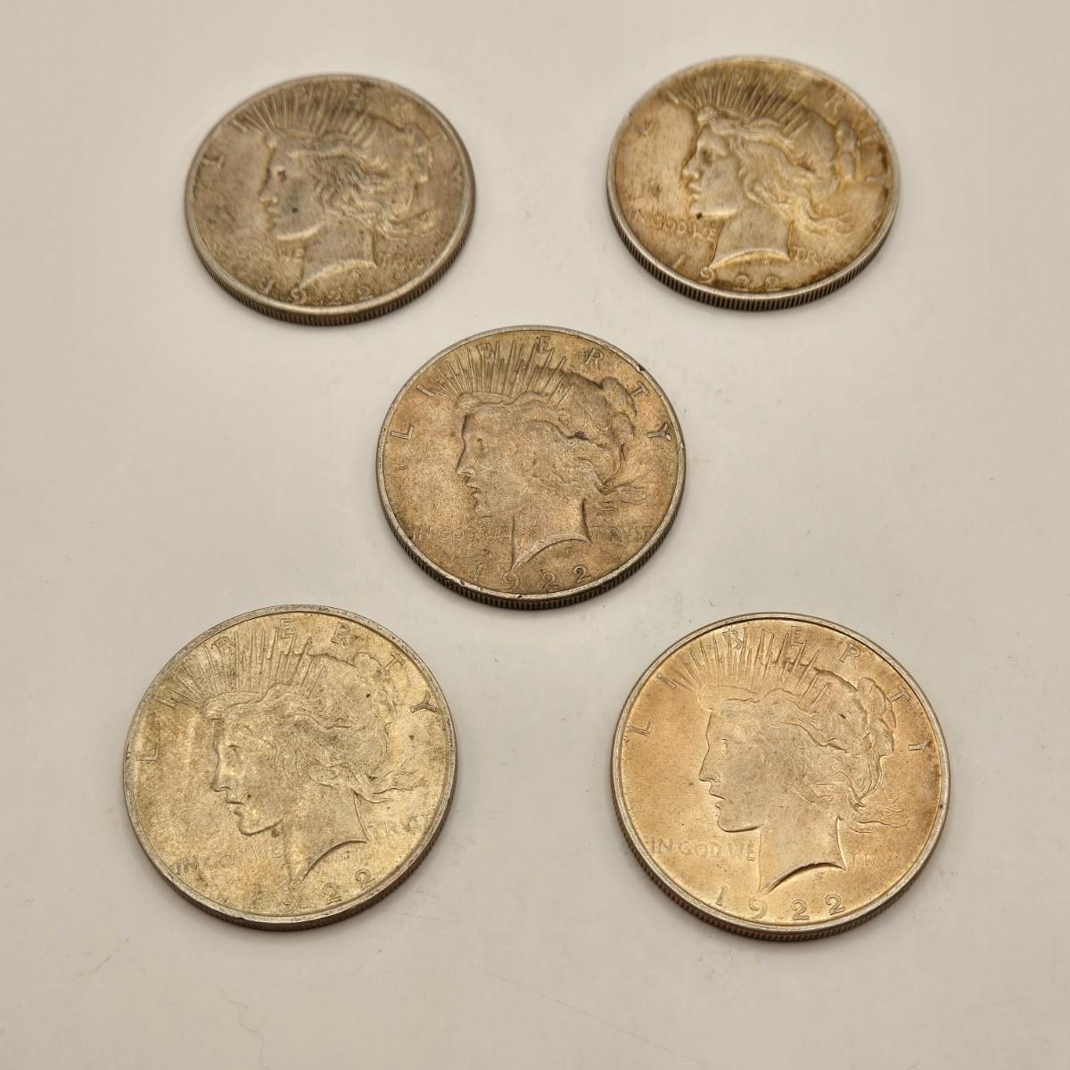 LOT 104J: Four 1922 Silver Peace Dollars/ Philadelphia & One 1922 San Francisco