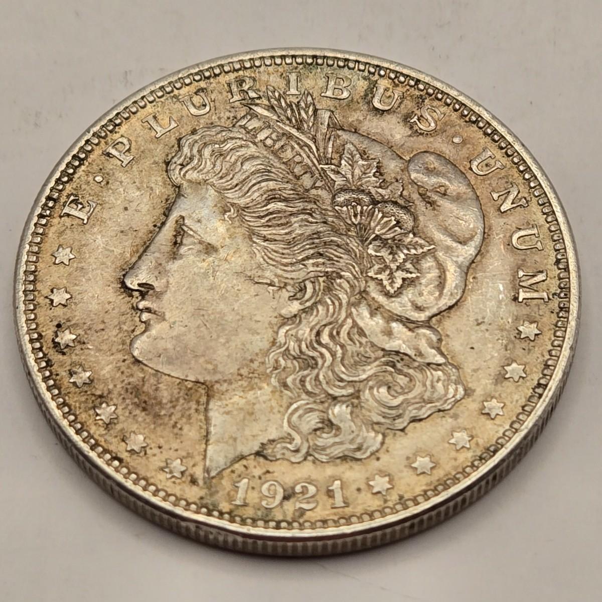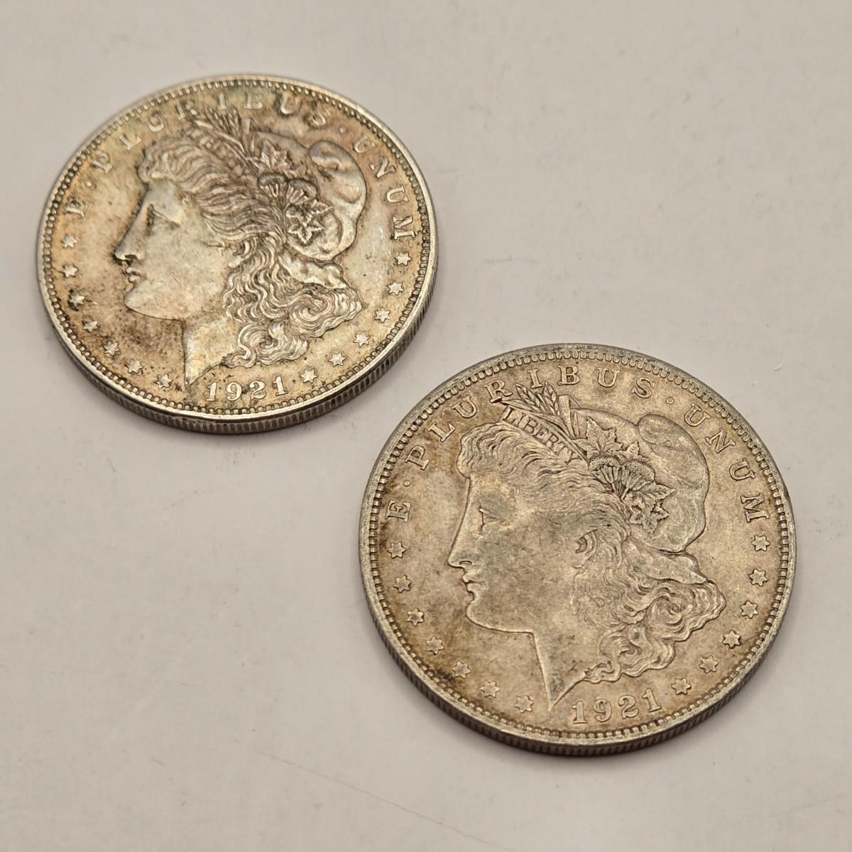 LOT 106J: Two 1921 Morgan Silver Dollars/ No Mint Mark Philadelphia