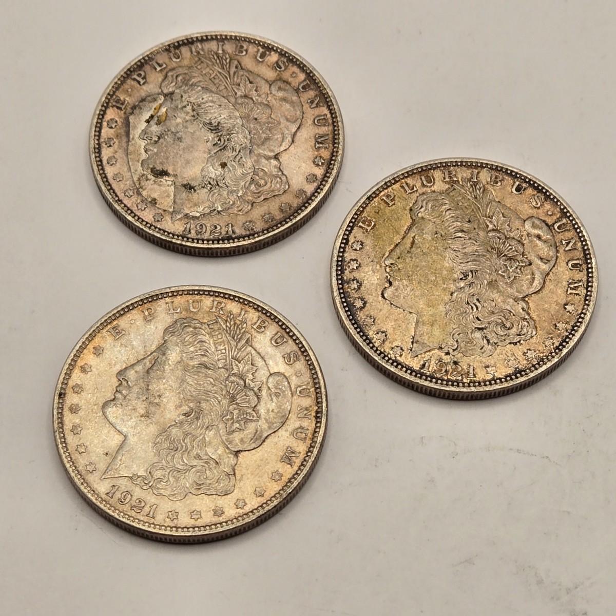 LOT 107J: Three 1921-D Morgan Silver Dollars