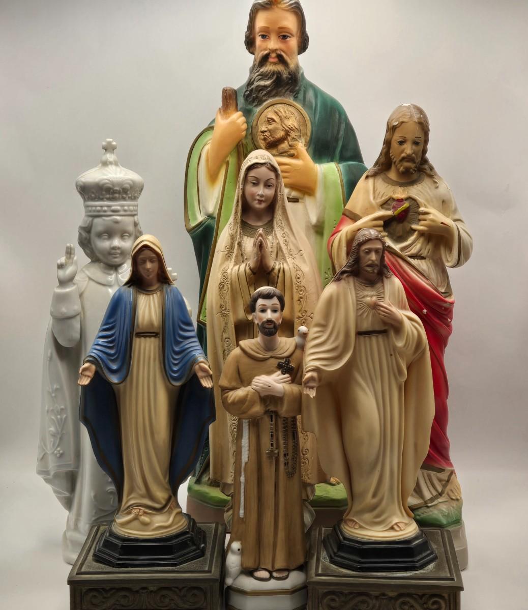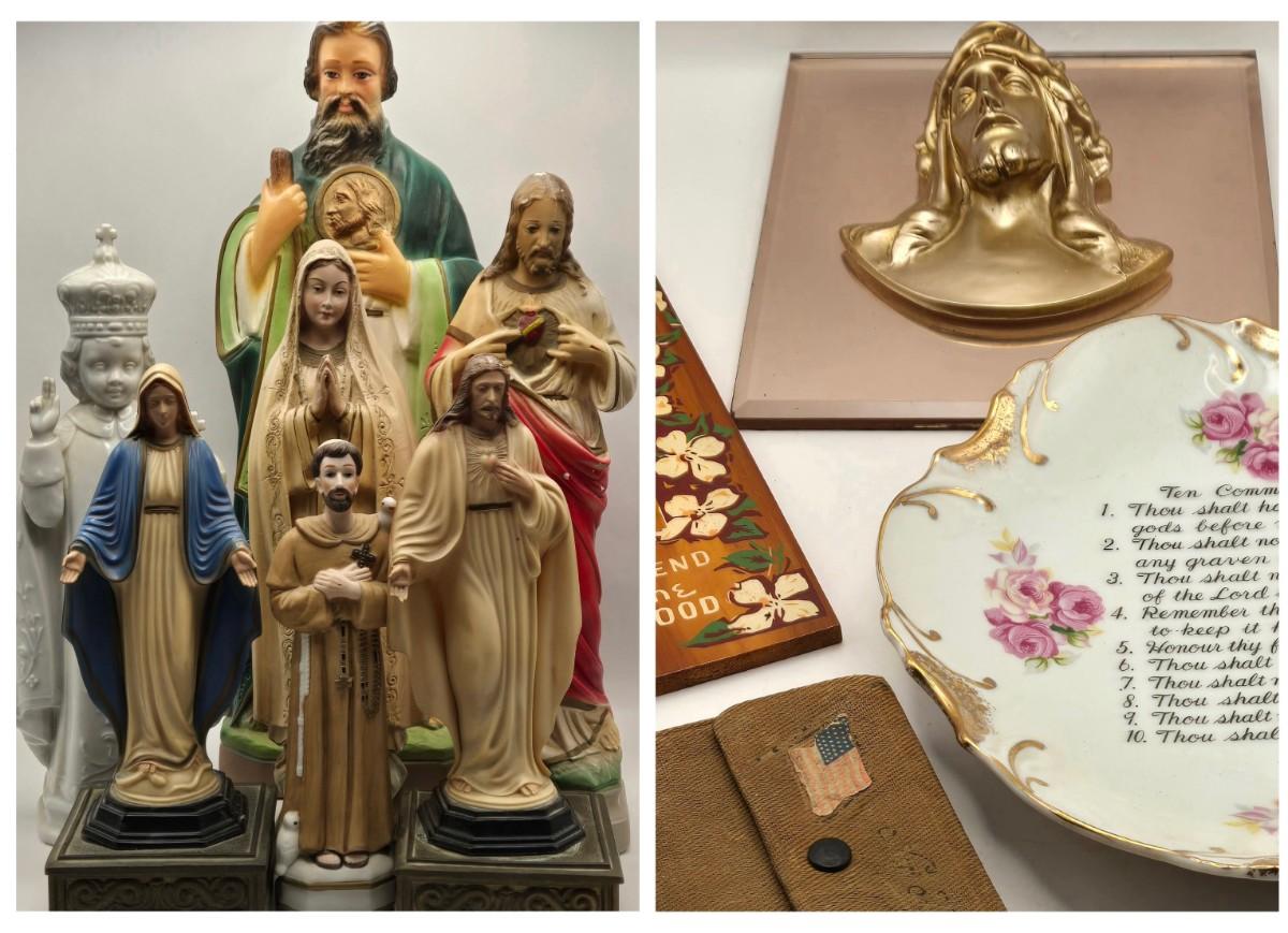 LOT 116:K St. Jude, Jesus Christ, Virgin Mary, and Other Statues, Lighted Figures, Ten Commandment Plate, Pocket Size Bible, & More