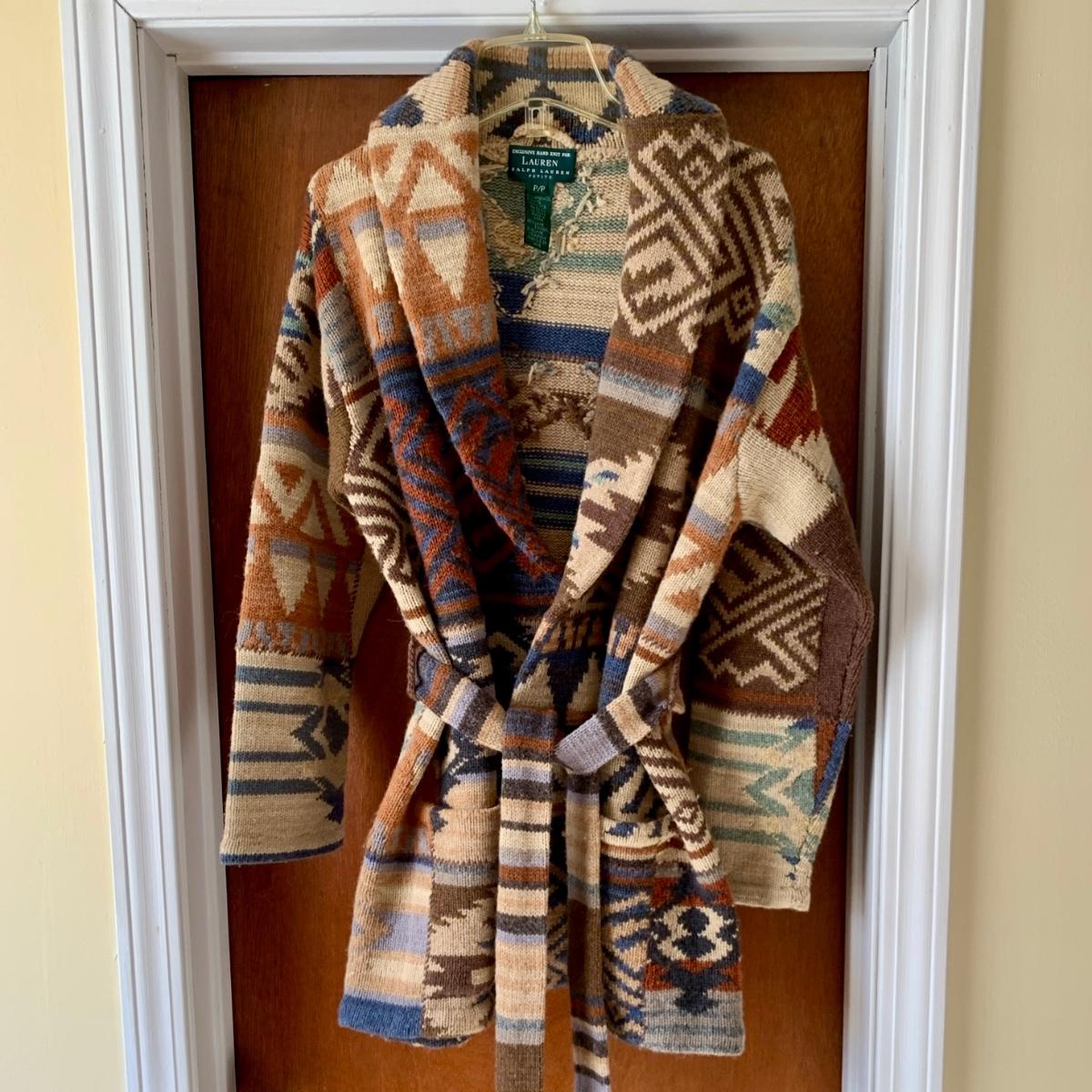 LOT 14 Z: Exclusive Hand Knit Lauren by Ralph Lauren Petite Wool Cardigan Sweater