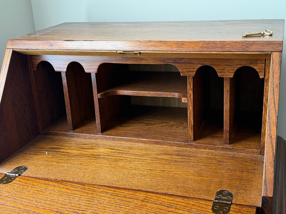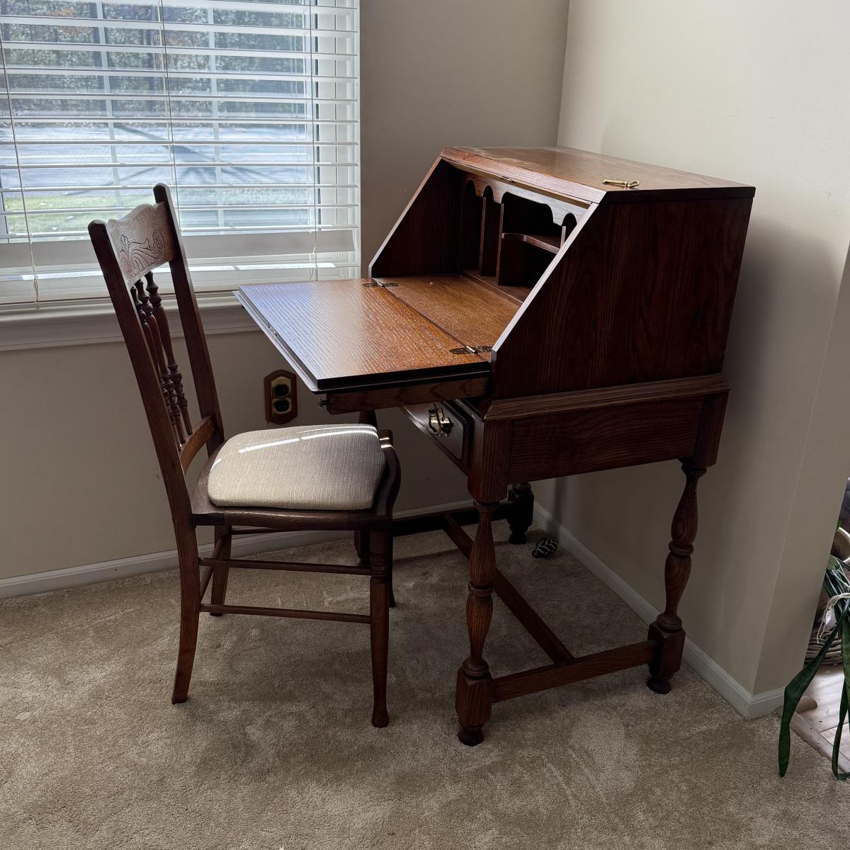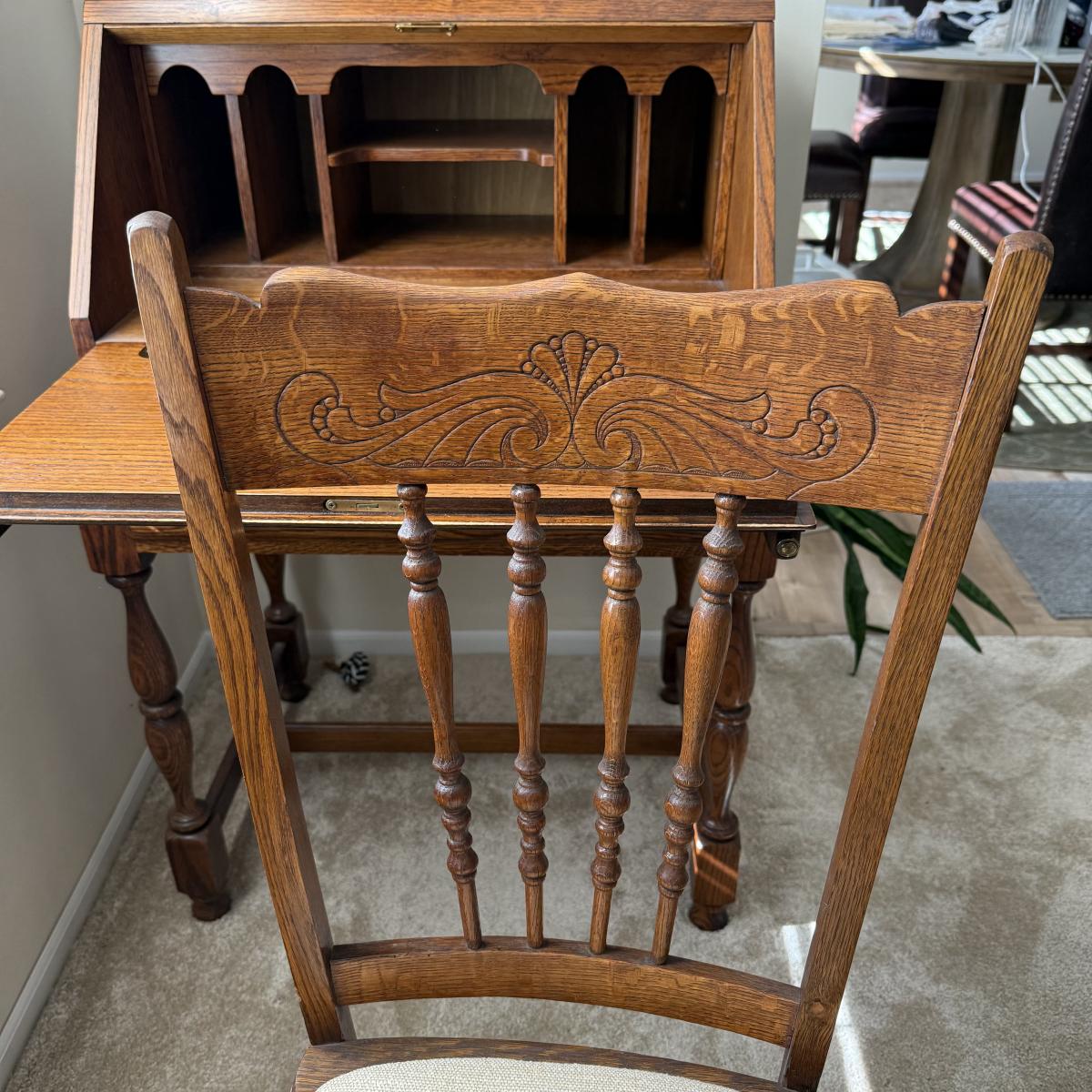 LOT 18L: Vintage 1980s Traditional Secretary Desk w/ Carved Wood Chair