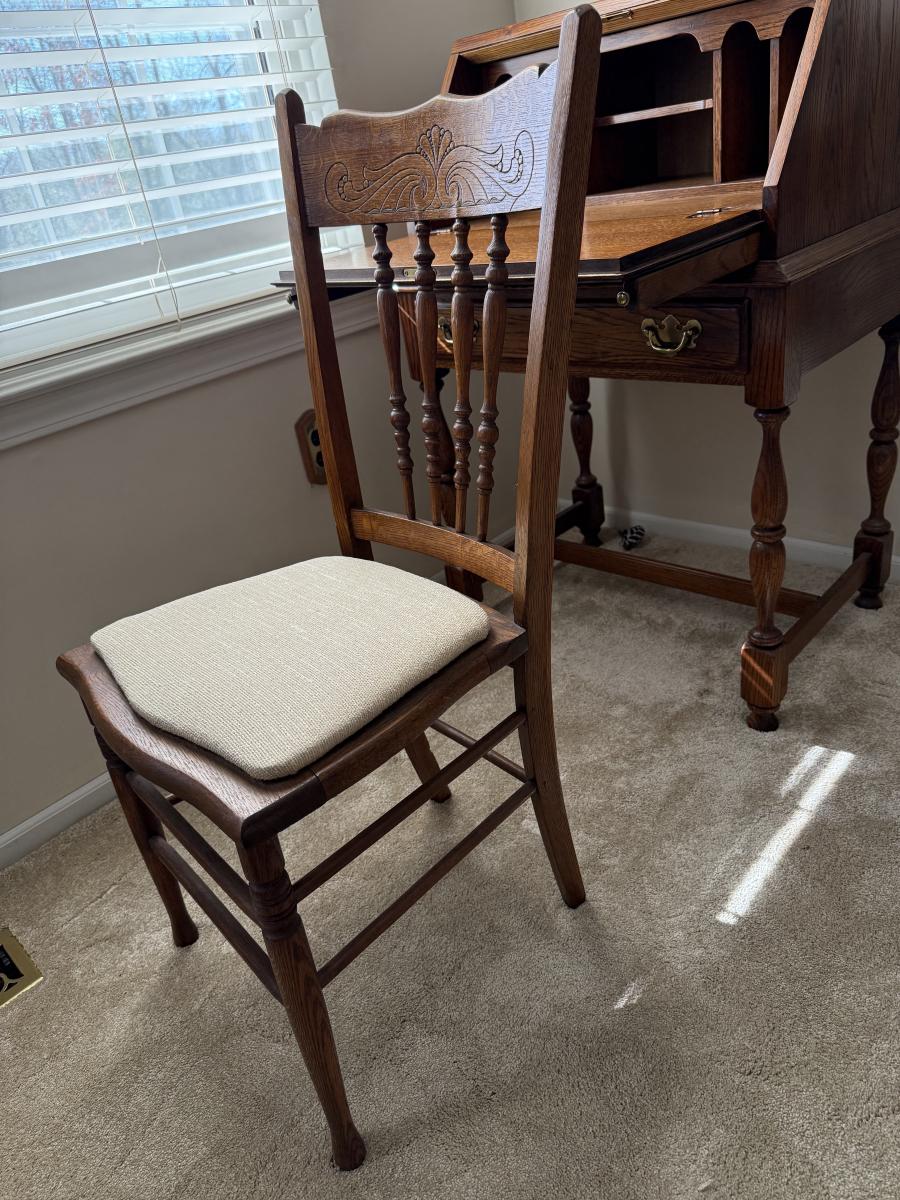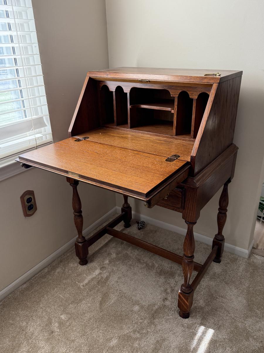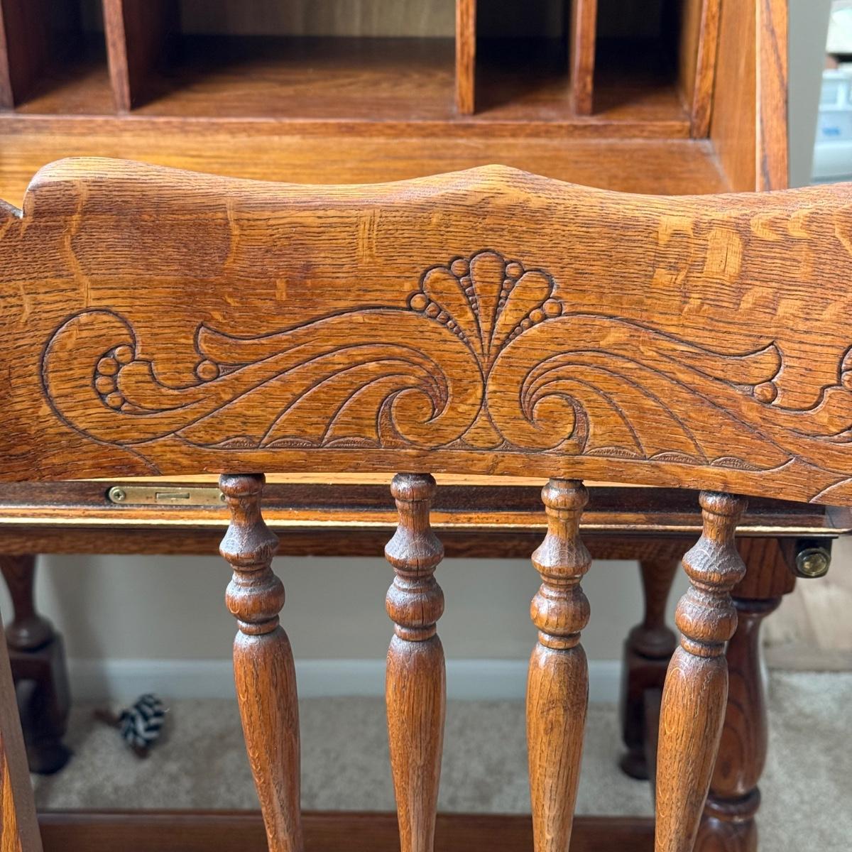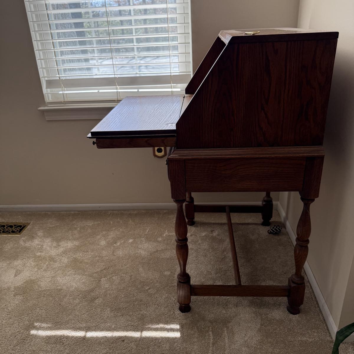 LOT 18L: Vintage 1980s Traditional Secretary Desk w/ Carved Wood Chair